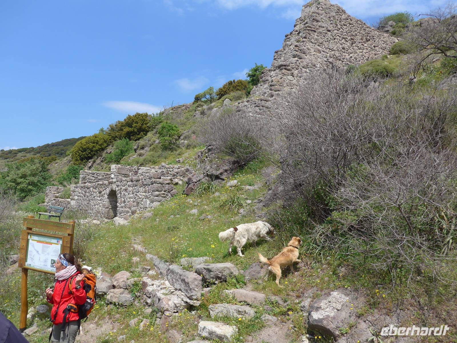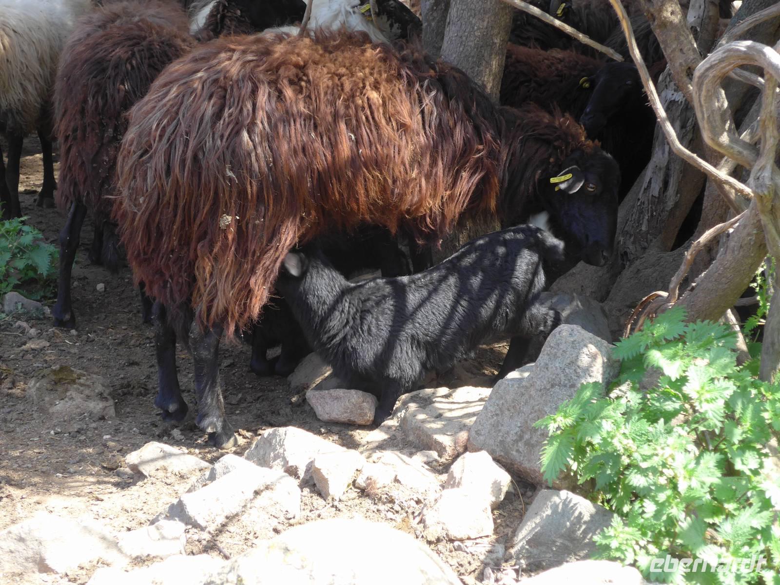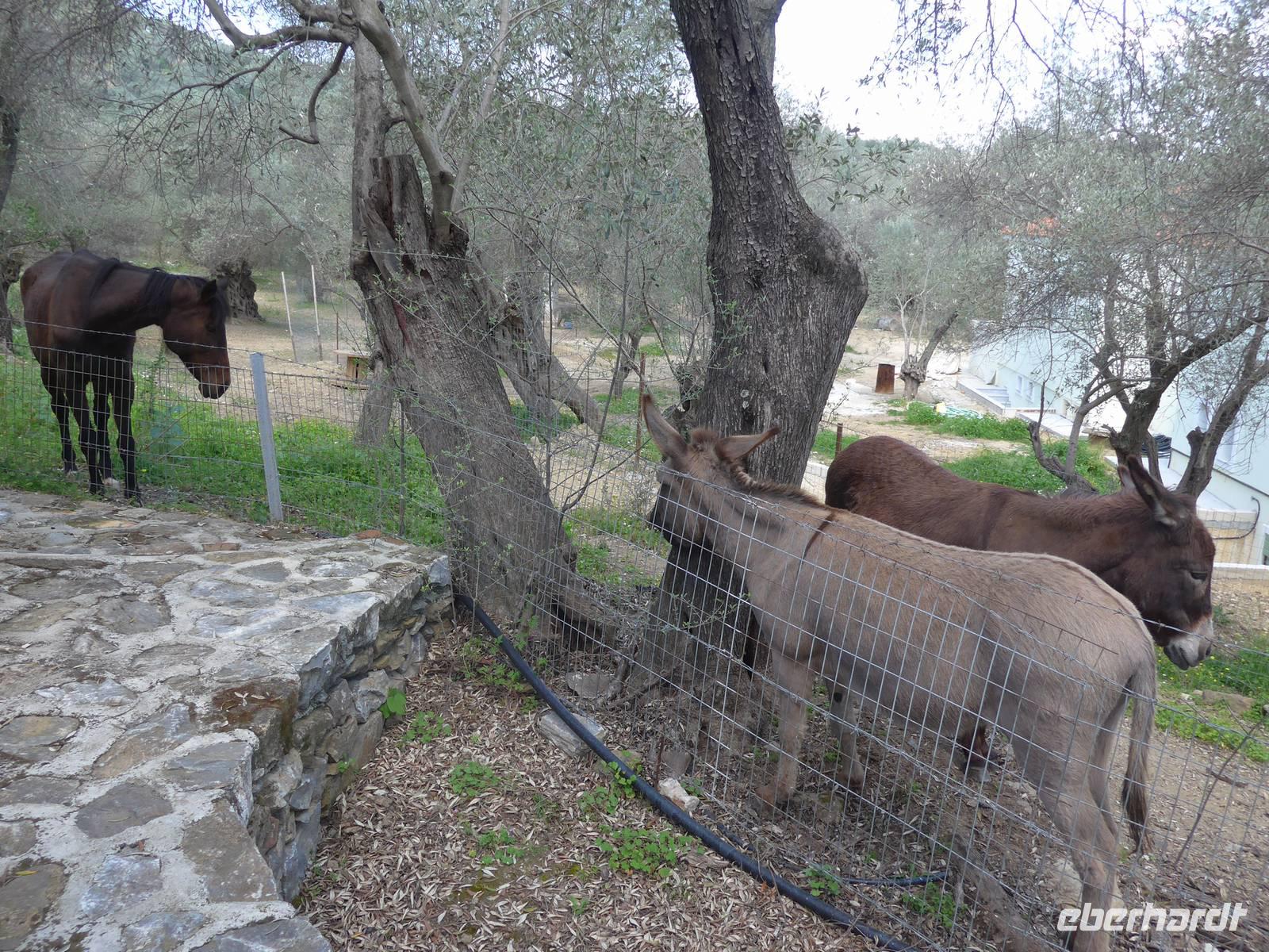 Unser Mittagessen gab es bei Karionas in einem völlig abgelegenen Lokal. Wir aßen draußen in der Sonne und die Gastgeber freuten sich über die vielen Gäste. Eva suchte für unsere Essen immer Lokale aus, die sehr abgelegen waren und Gäste zum Überleben brauchen. Es gab nach den reichlichen Vorspeisen heute mal verschiedenes Fleisch und über die Knochen freuten sich unsere beiden Hunde sehr.