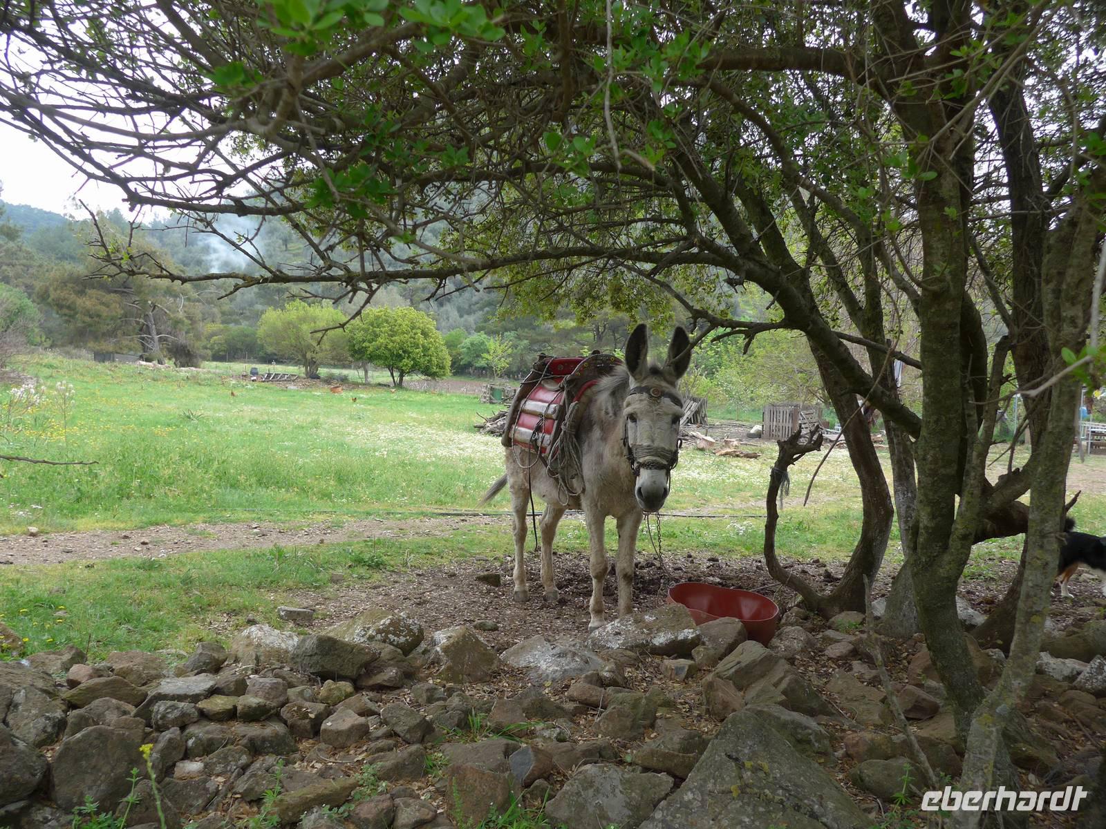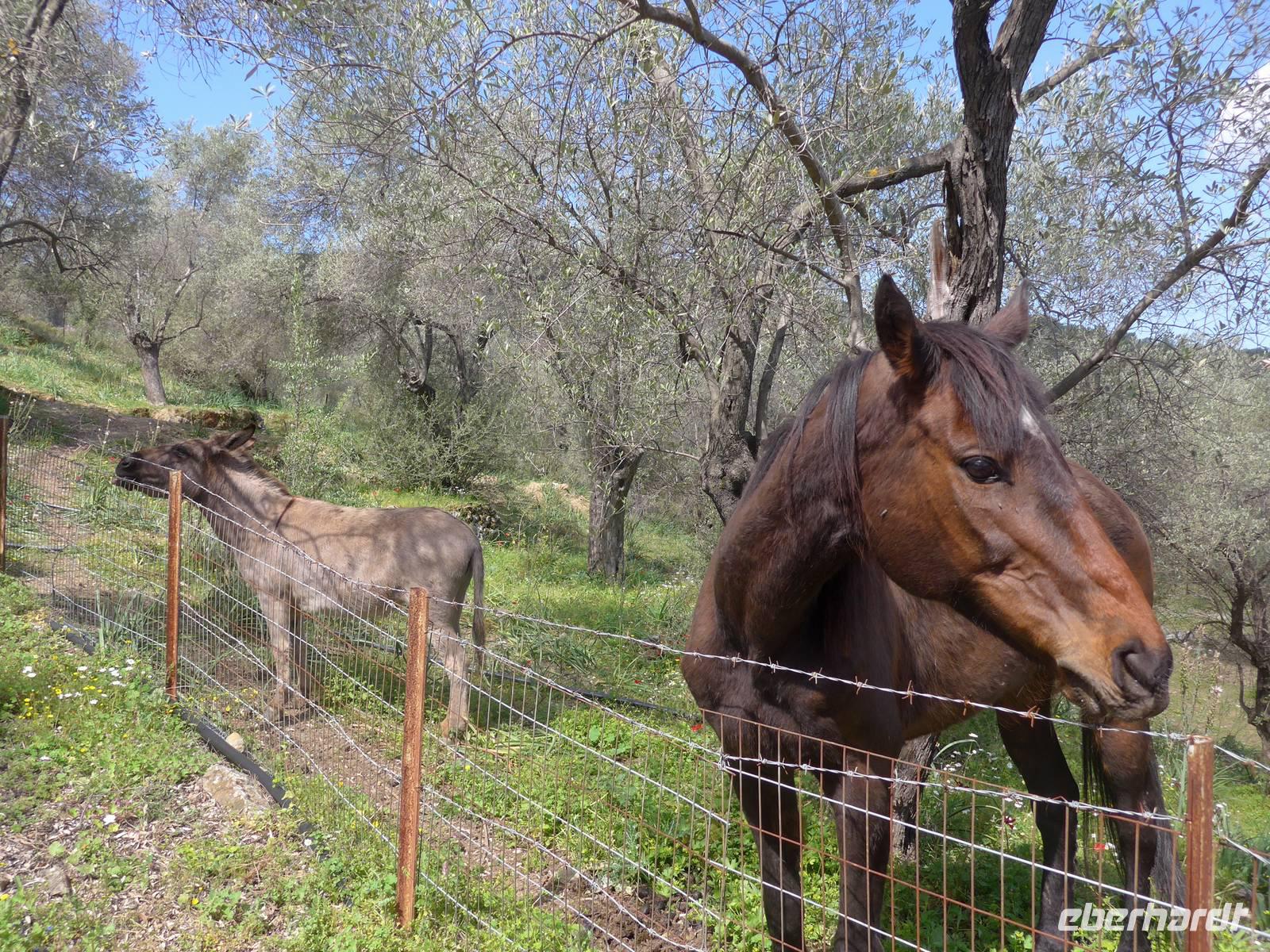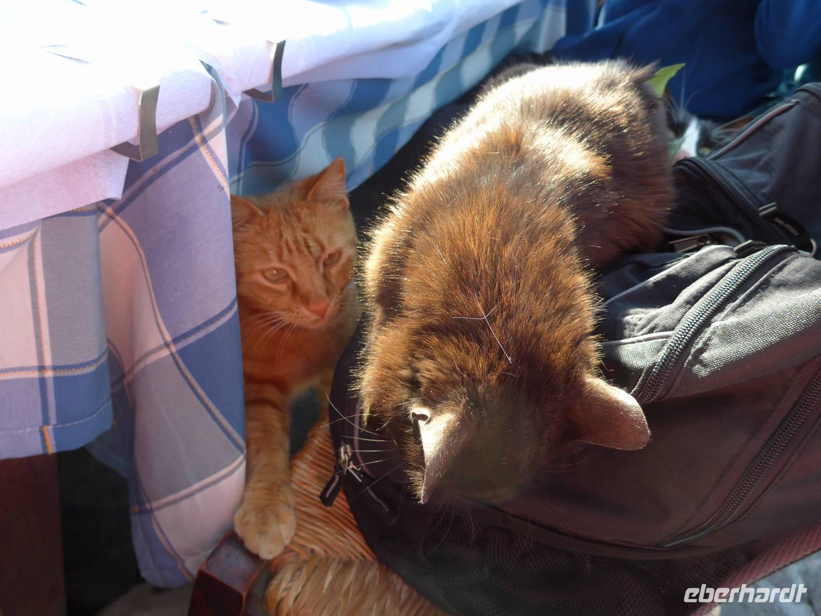 Unser Mittagessen gab es bei Karionas in einem völlig abgelegenen Lokal. Wir aßen draußen in der Sonne und die Gastgeber freuten sich über die vielen Gäste. Eva suchte für unsere Essen immer Lokale aus, die sehr abgelegen waren und Gäste zum Überleben brauchen. Es gab nach den reichlichen Vorspeisen heute mal verschiedenes Fleisch und über die Knochen freuten sich unsere beiden Hunde sehr.