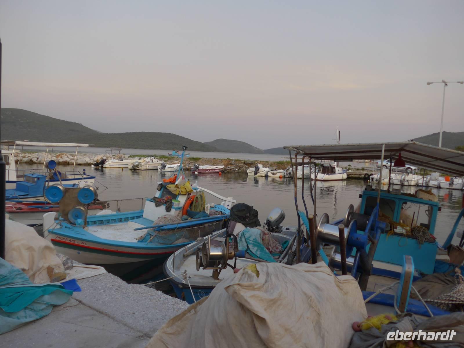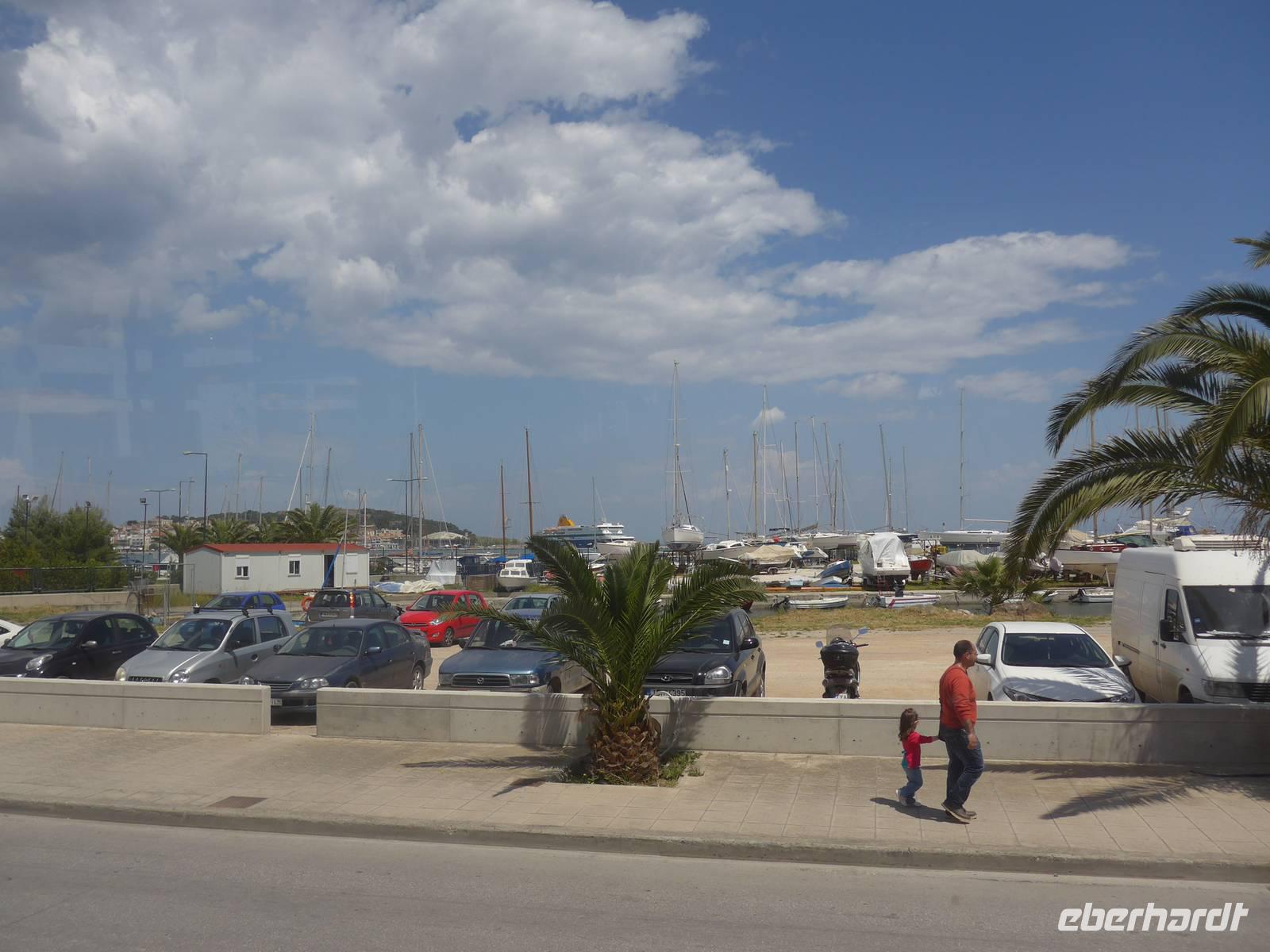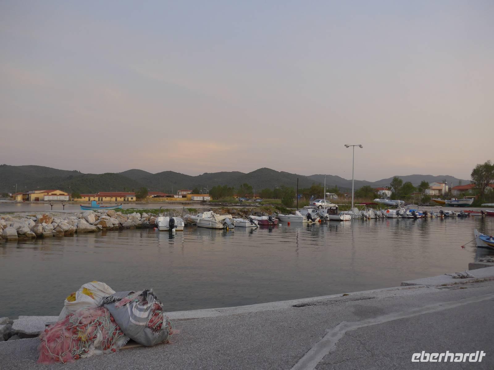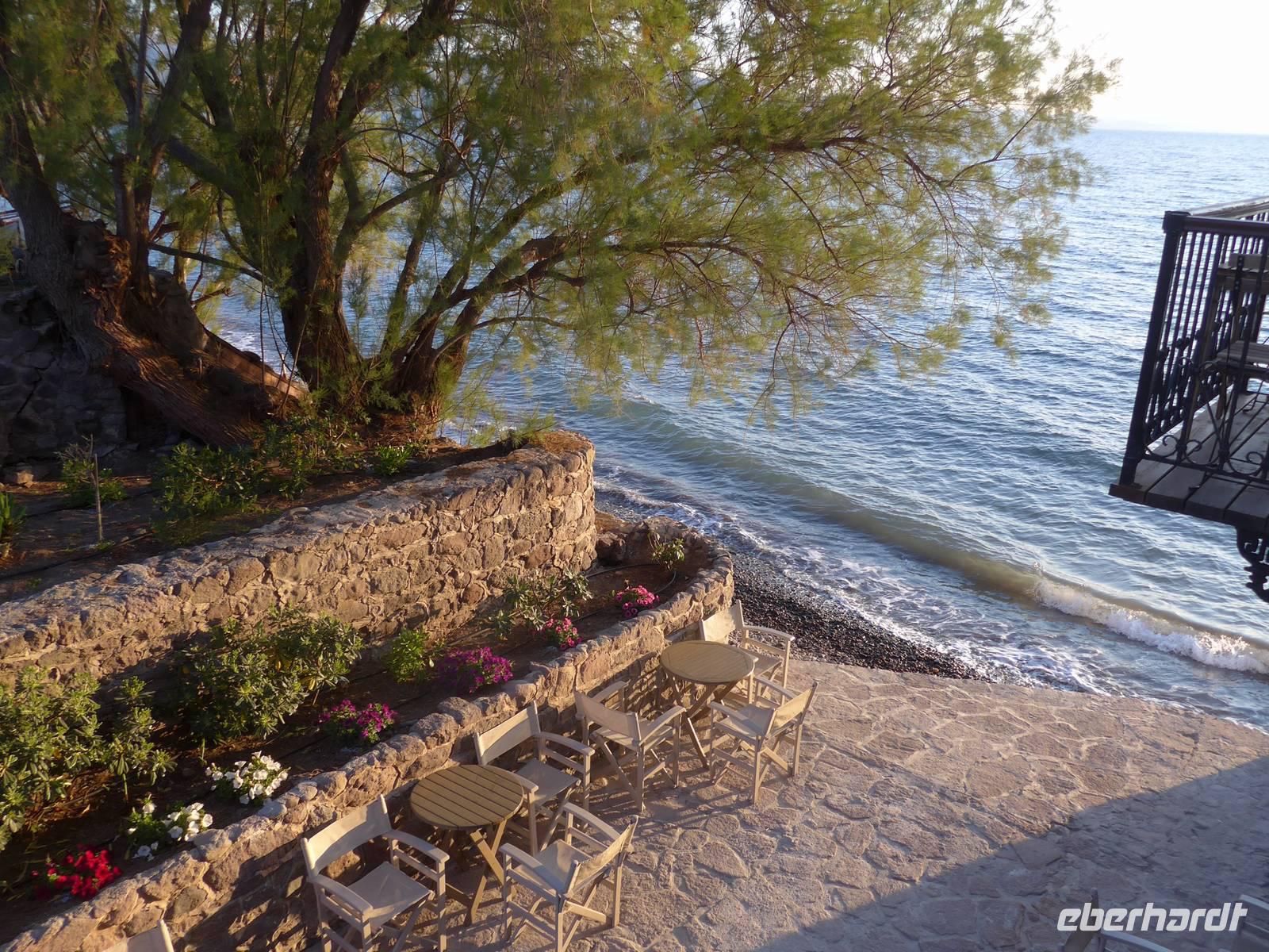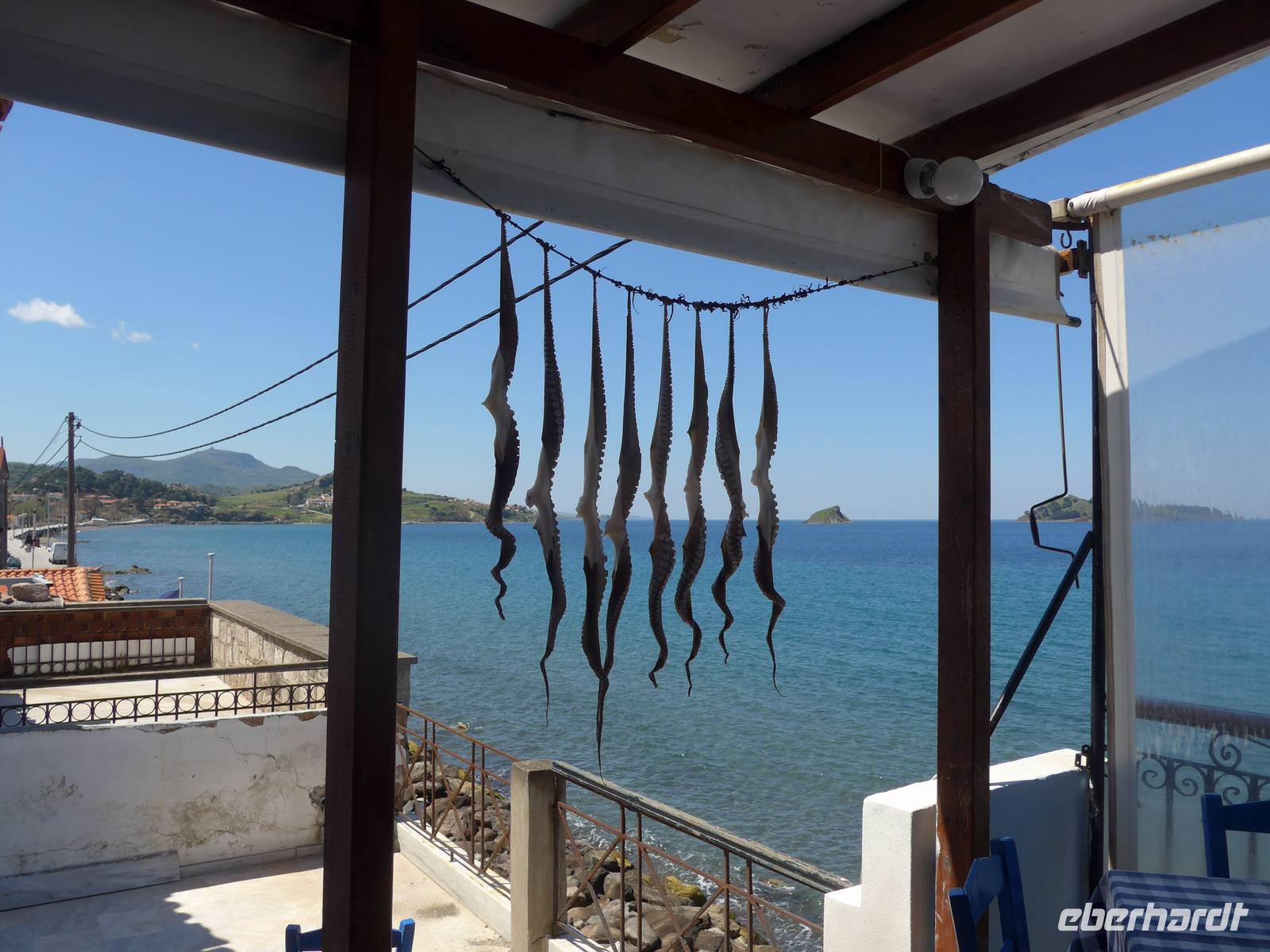 Mittagessen am Hafen von Skala Sikamineas