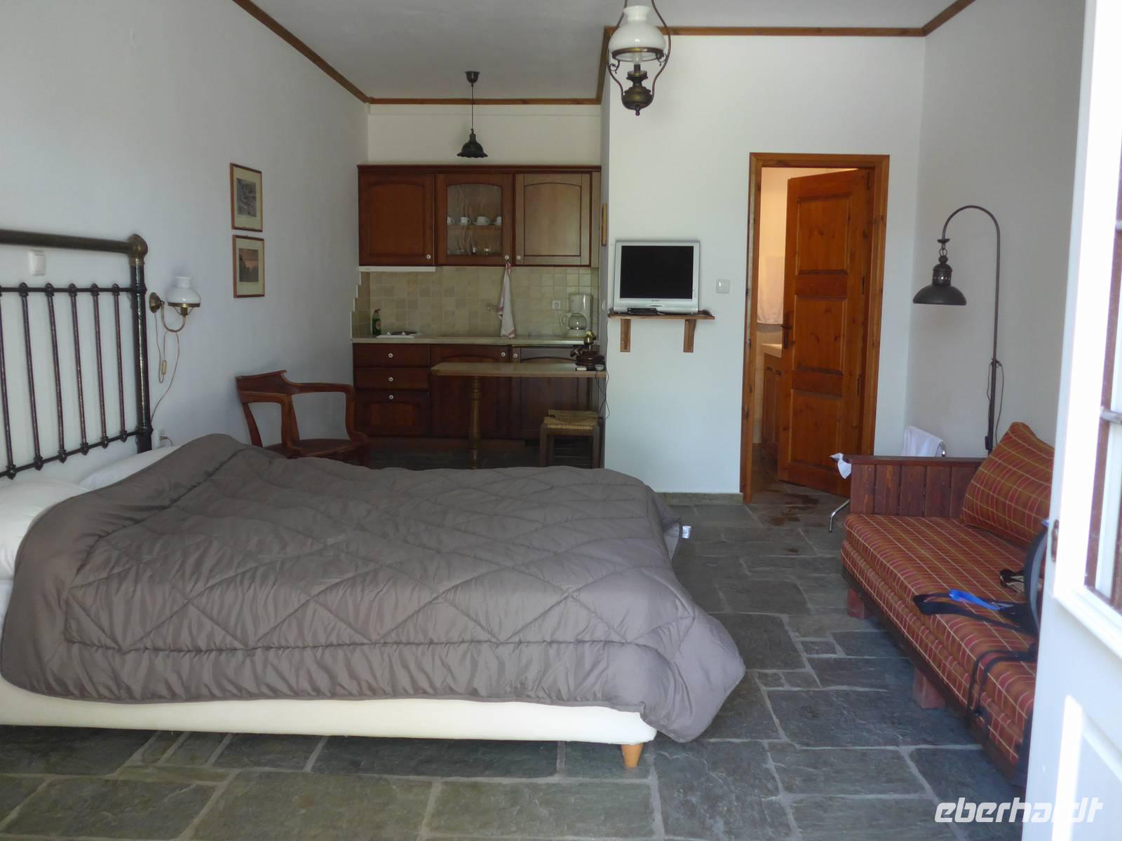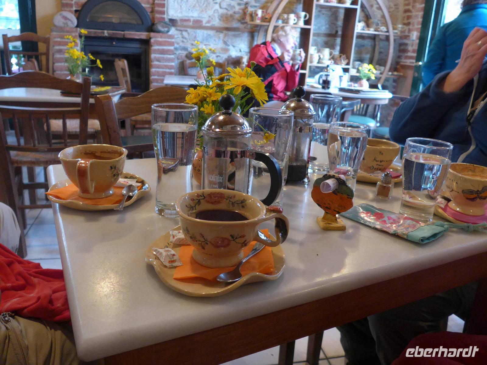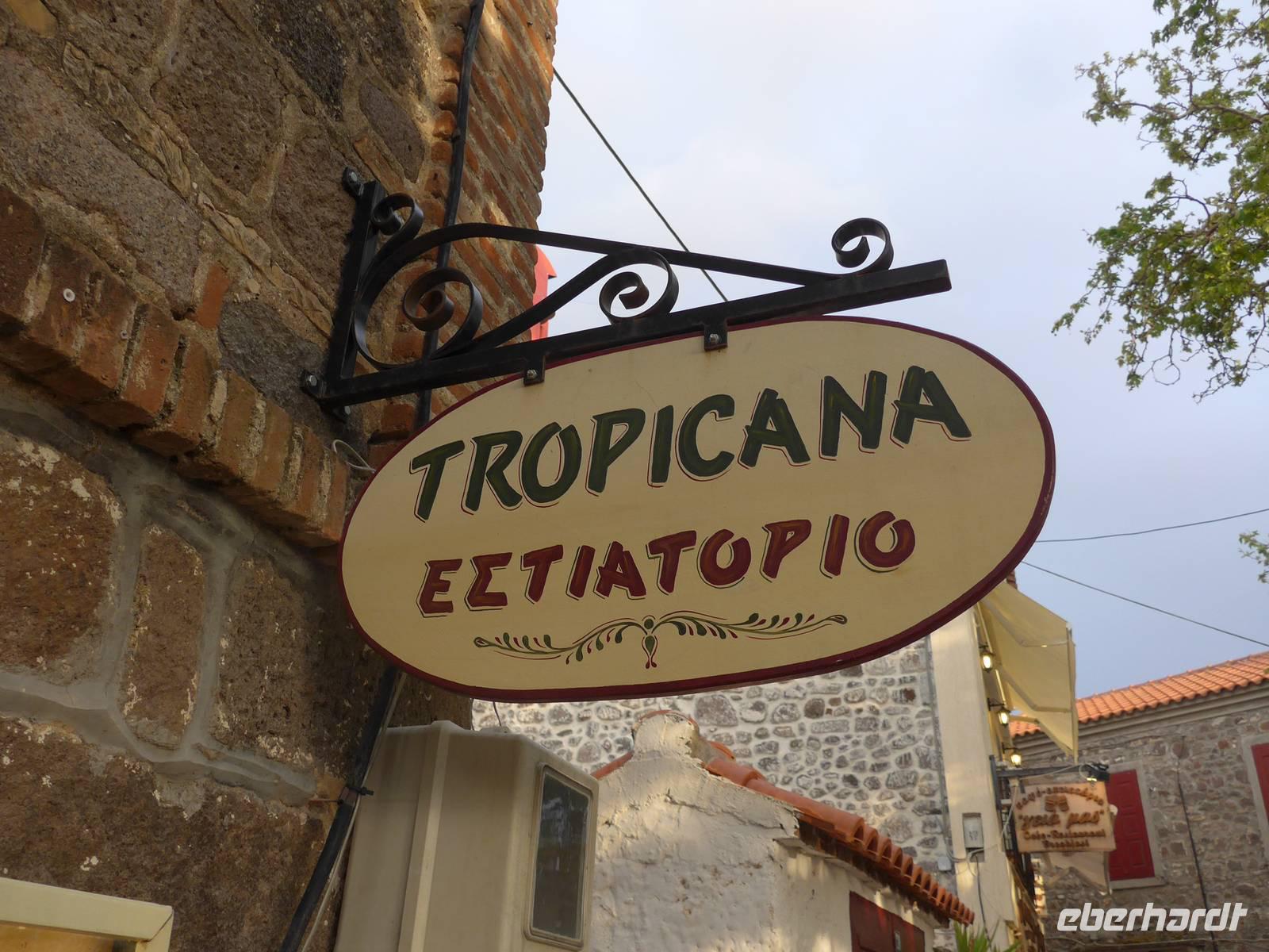 Im Tropica kochte Jannis und seine Frau bediente uns im Restaurant. Bei schönem Wetter hätte man draußen sitzen können unter einer riesigen Platane. Wir saßen drin und genossen wieder ein ausgezeichnetes Mahl. Der nächste Tag war frei und so schlenderten wir ohne Hast zurück in unsere Unterkunft.
