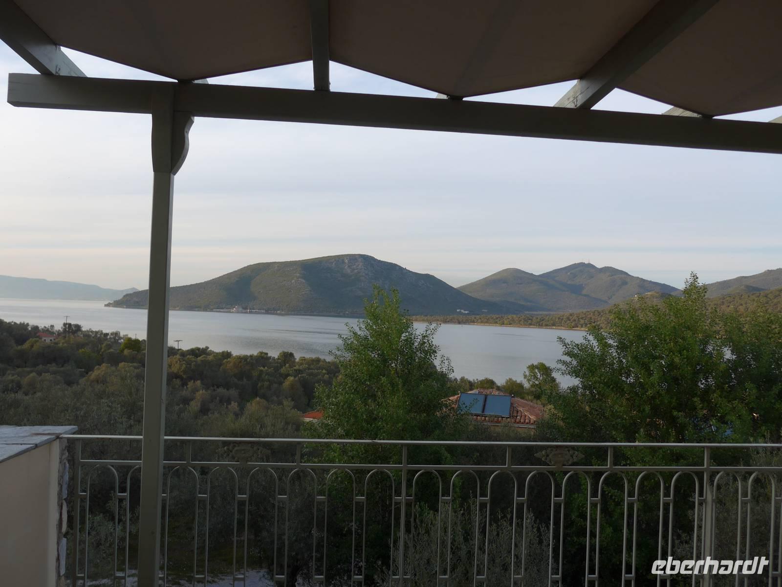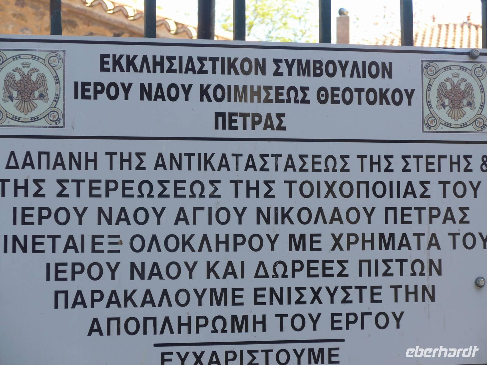Der andere Teil der Gruppe wanderte mit mir in den Nachbarort Petra, wo es 3 Kirchen und ein Herrenhaus aus der Türkenzeit zu besichtigen gab. Vom Kirchenfelsen in Petra hatte man einen wunderschönen Blick über die Dächer des hübschen Ferienortes bis hin zum Lepetimnos Gebirge und zum Meer. In der 1983 gegründeten Frauenkooperative nahmen wir unser Mittagessen ein und man richtete eigens für uns auf der Terrasse einen großen Tisch her. Die Frauen-Kooperative wurde gegründet, um den Frauen auch eine Einkommensquelle zu schaffen, indem sie Zimmer vermieteten und eben dieses Restaurant bewirtschafteten. Privatzimmer werden heute nur noch selten vermietet und das Restaurant führt eine Frau mit ihrer Tochter. Das Essen wurde frisch zubereitet und schmeckte ausgezeichnet. Gut gestärkt traten wir den Heimweg an und kehrten unterwegs noch in einem Cafe mit ausgesucht leckeren Süßigkeiten ein. In Griechenland lädt man Freunde und Verwandte zu etwas Süßem ein, wenn es was zu feiern gibt. Wir feierten unseren freien Tag und diesen schönen Ausflug.