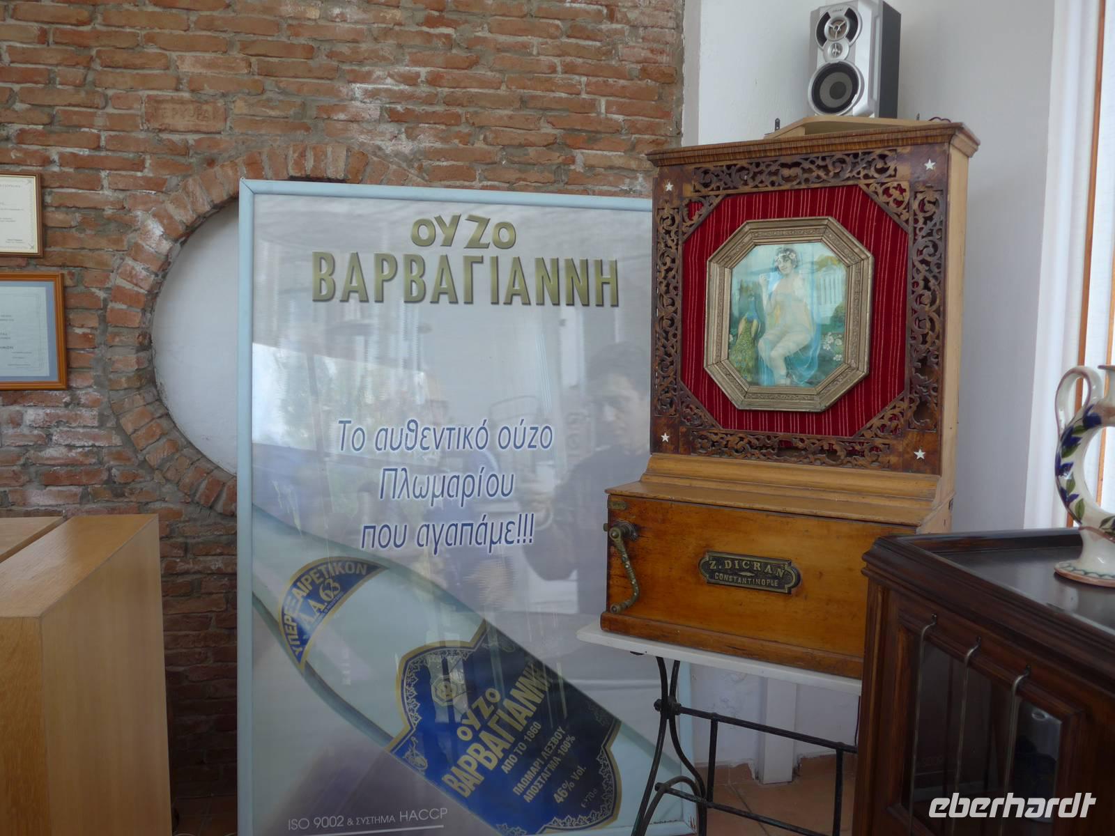 Unser Sonntagsausflug begann mit der Besichtigung von Griechenlands berühmtester Ouzo Brennerei Barbayanni nahe Plomari im Süden der Insel Lesbos.