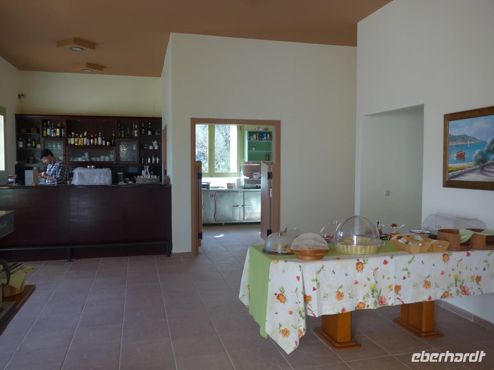 Gut ausgeruht sahen wir am Morgen bei Tageslicht unsere Unterkunft in einer ehemaligen Olivenpresse direkt am Meer. Alle waren begeistert, wie toll die alten Gebäude zu einem Hotel umfunktioniert worden waren. Beim Frühstück konnten wir draußen direkt am Meer oder im Frühstücksraum sitzen.Es war recht frisch und so entschlossen wir uns für drin.