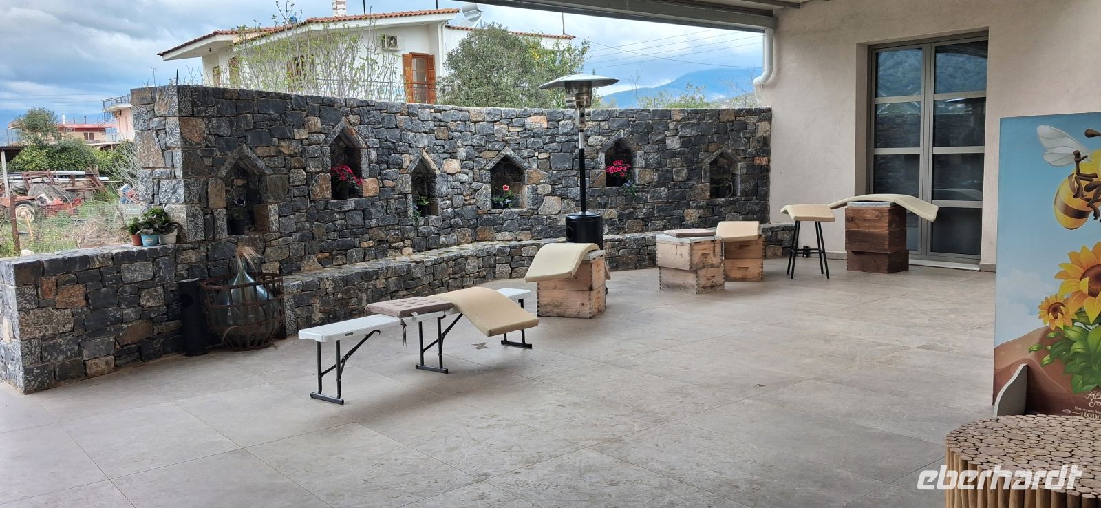 Nach kurzer Busfahrt erreichten wir einen Produktionsbetrieb für Bio-Honig. Die Inhaberin begrüßt uns und führte uns im Haus, RL Aris übersetzte die Ausführungen aus dem Griechischen ins Deutsche. Erst gab es einen Film, dann eine ausführliche Führung im Honigmuseum, bis es dann endlich zur Honigverkostung ging. Erstaunlich, wie unterschiedlich Honig schmecken kann! Der Besuch im Shop des Hauses durfte nicht fehlen, und die Möglichkeiten zum Einkaufen direkt beim Produzenten wurde ordentlich genutzt.