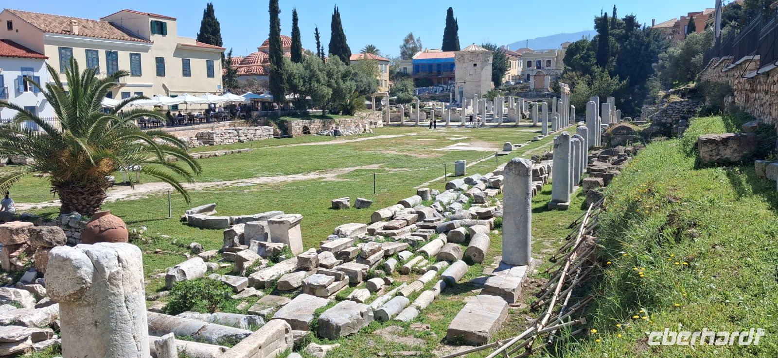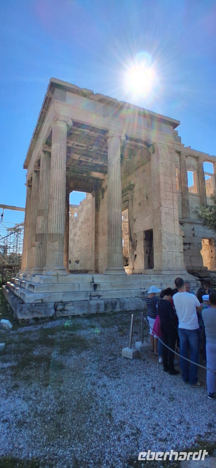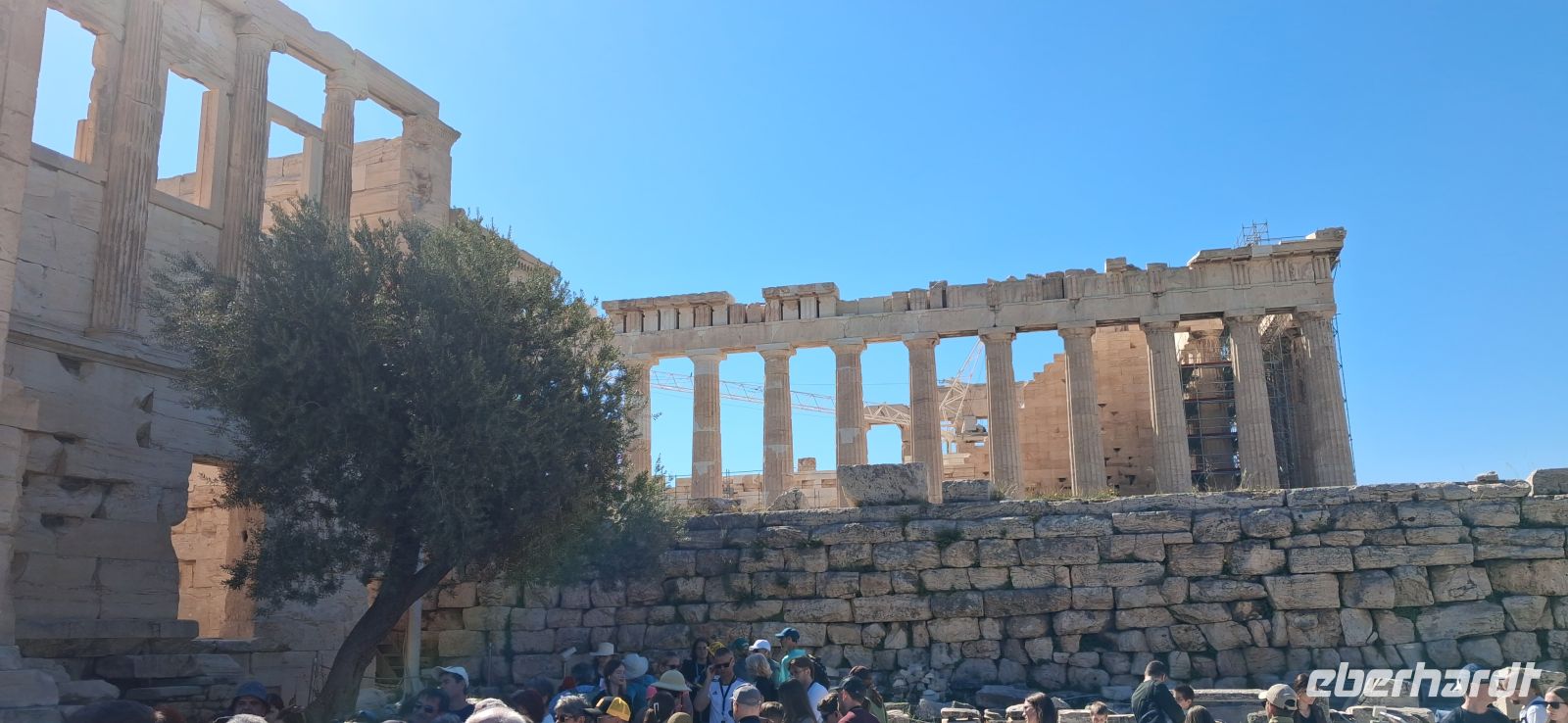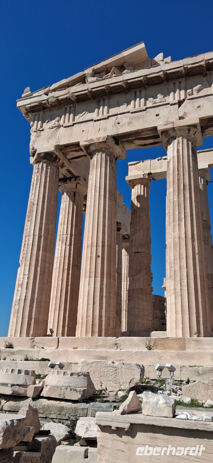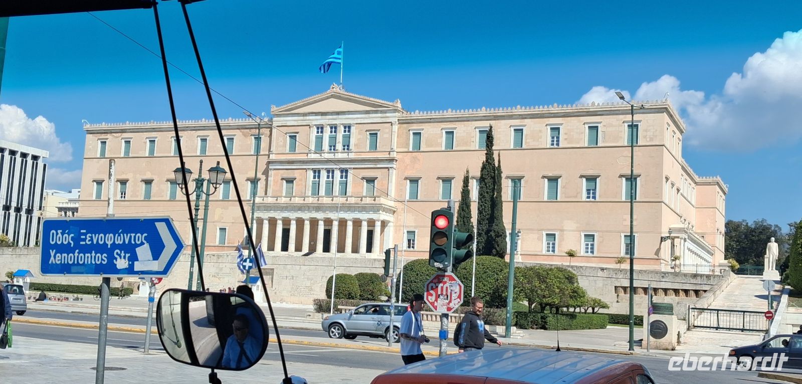 Auch der heutige Tag beginnt mit einem umfangreichen Frühstücks-Buffet, das keine Wünsche offen läßt. Gestärkt steigen wir in den Bus, heute steht die Landeshauptstadt Athen auf dem Programm. Das Wetter ist frühlinghaft sonnig, also die besten Voraussetzungen für einen interessanten Tag. Die Busfahrten an diesem Tag hat unser lokaler RL Aris im Vorfeld mit Panos, unserem Fahrer, besprochen. So wird die Fahrt in den Stadtkern von Athen schon ein Teil der Stadtrundfahrt, gut getimed, so dass wir das reservierte Zeitfenster für den Besuch der Akropolis gut erreichen. Obwohl wir zu den ersten Gruppen nach öffnen der Tore gehörten, war schon ordentlich was los. Auf der Akropolis von Athen ist man nie allein! Während des Aufstieges legte Aris einen Stop zum Verschnaufen ein, den er natürlich nutzte, um schon eine Einführung auf die Besichtigigung der verschiedenen Bauwerke auf der Akropolis zu geben. Durch die Propyläen, dem monumentalen Eingangstor, erreichten wir dann des Bereich mit den antiken Bauwerken, gleich rechts vom Zugang mit dem Tempel der Athena Nike. Vor uns aber liegt das "Hauptgebäude" der Akropolis, der Parthenon, das Meisterwerk der Dorischen Architektur. Aris erklärte die Besonderheiten dieses Wunderwerkes der antiken Baukunst und wie noch auf die weiteren, wichtigen Tempel und Theater hin, die es hier oben zu sehen gab, wie das Erechteion, eine Besonderheit, asymmetrisch und mit weiblichen Statuen als Säulen, das Theater des Dionysos, die älteste der großen Bühnen der Welt, wo das antike Drama entstanden ist, damals aufgeführt vor 17.000 Menschen, sowie den Tempel des Asklepio, um nur einige zu nennen. Die Zeit reichte leider nicht, alle Besonderheit dieser Anlage zu besichtigen und zu erklären, und wird auch für "Normalbesucher" auf einen Tag zu viel. Die Athener Akropolis, seit 1986 UNESCO-Weltkulturerbe, kann man immer wieder besuchen, wenn man nach Athen kommt und findet immer etwas, was man vorher nicht gesehen und erfahren hat.