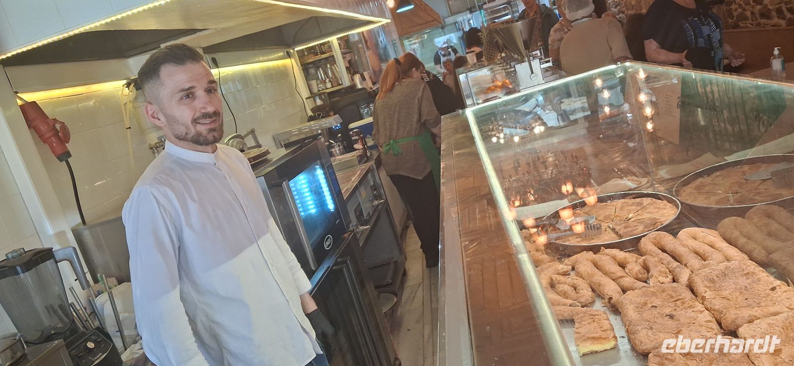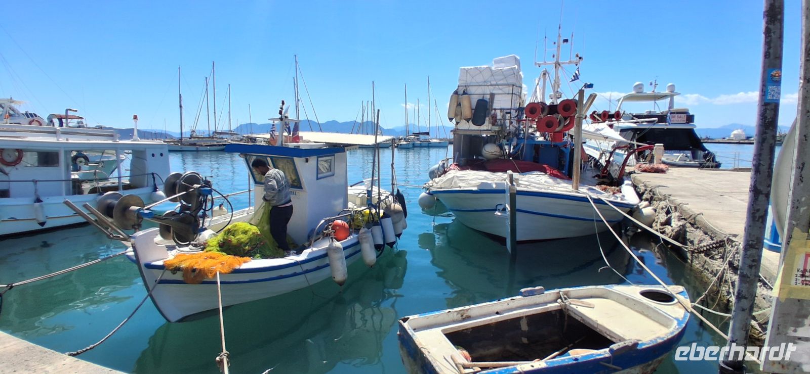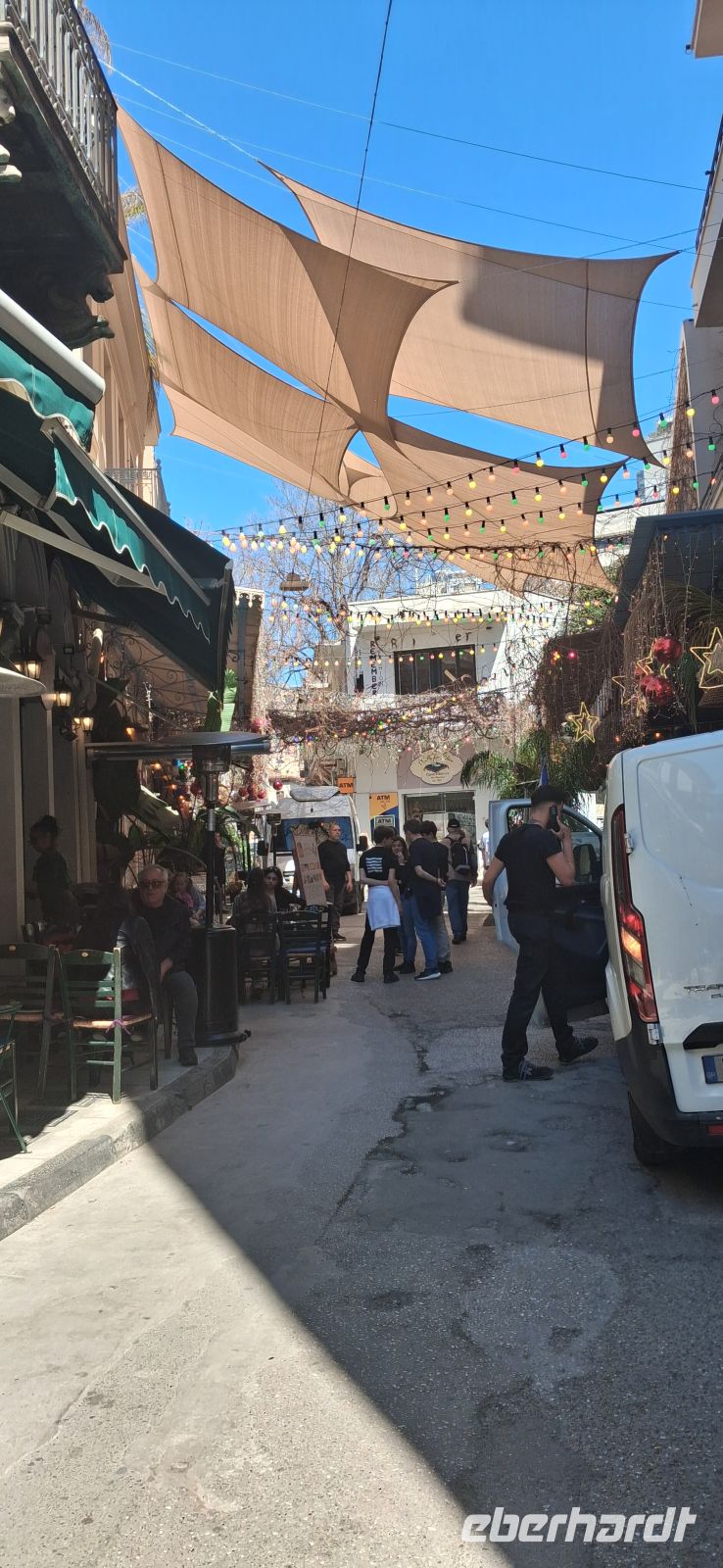 Aber dann ging es zum gemütlicheren Teil der Tagesreise: Freizeit an der Wasserlinie des Hauptortes der Insel mit netten Restaurants und Cafes -und Verkaufsständen für Pestazien und -produkten. Aris bot eine kleine Führung im Hafenstädtchen an, dann verteilten sich sie Gäste nach eigenem Gusto im Ort und treffen sich zum vereinbarten Zeitpunkt und pünktlich zur Rückfahrt ans Festland im Hafen.