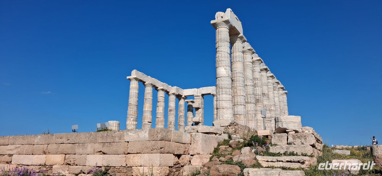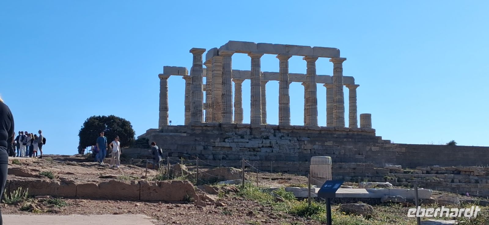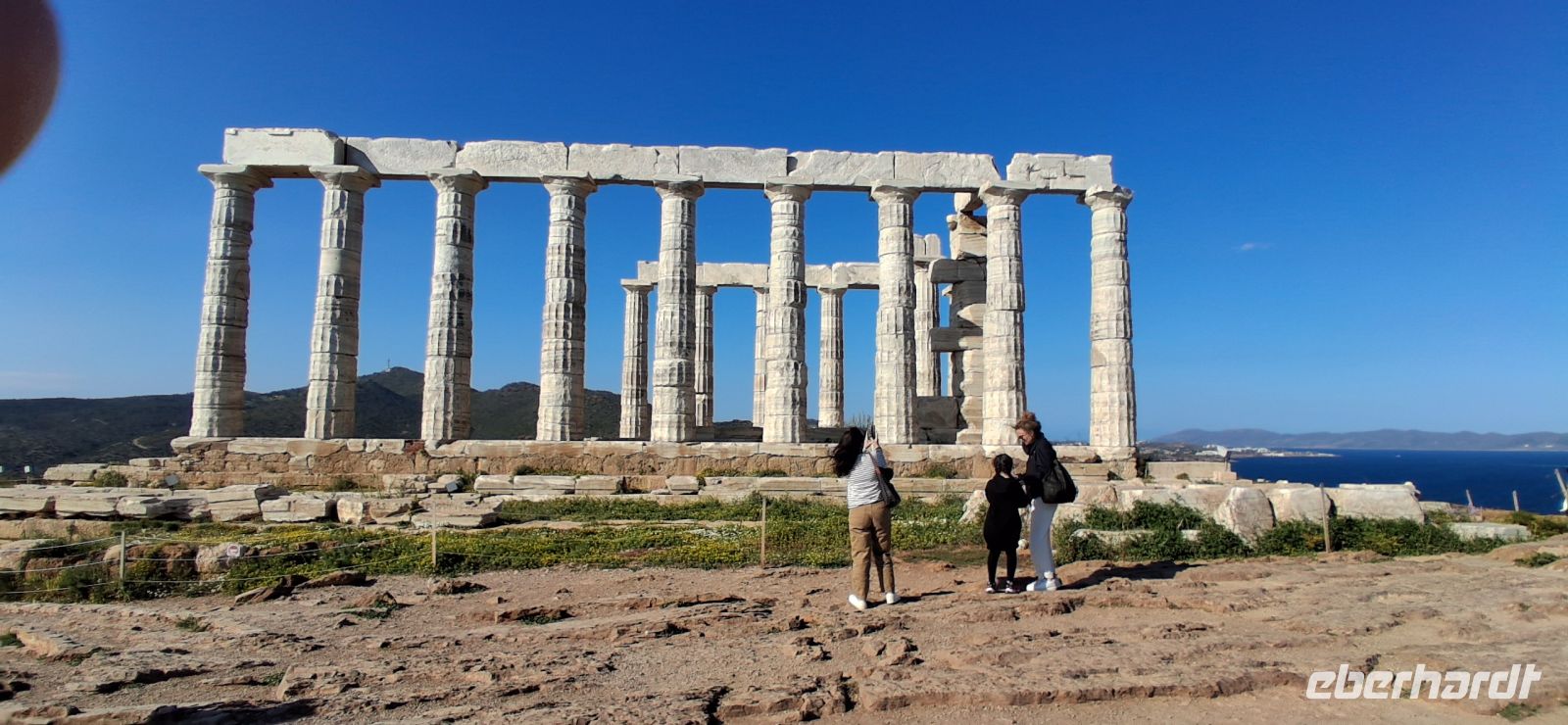 Unser Bus brachte uns quer durch Attika in den Süden der Halbinsel zum Kap Sounion. Wir besichtigten unter Aris gewohnt professioneller Führung den an der Spitze auf dem Kap vor über 2.500 Jahren gebauten Tempel des Poseidon. Architektonische Details, strategische Bedeutung und die Sage, die das Kap umgibt, wurden uns ausführlich erklärt und Fragen beantwortet.