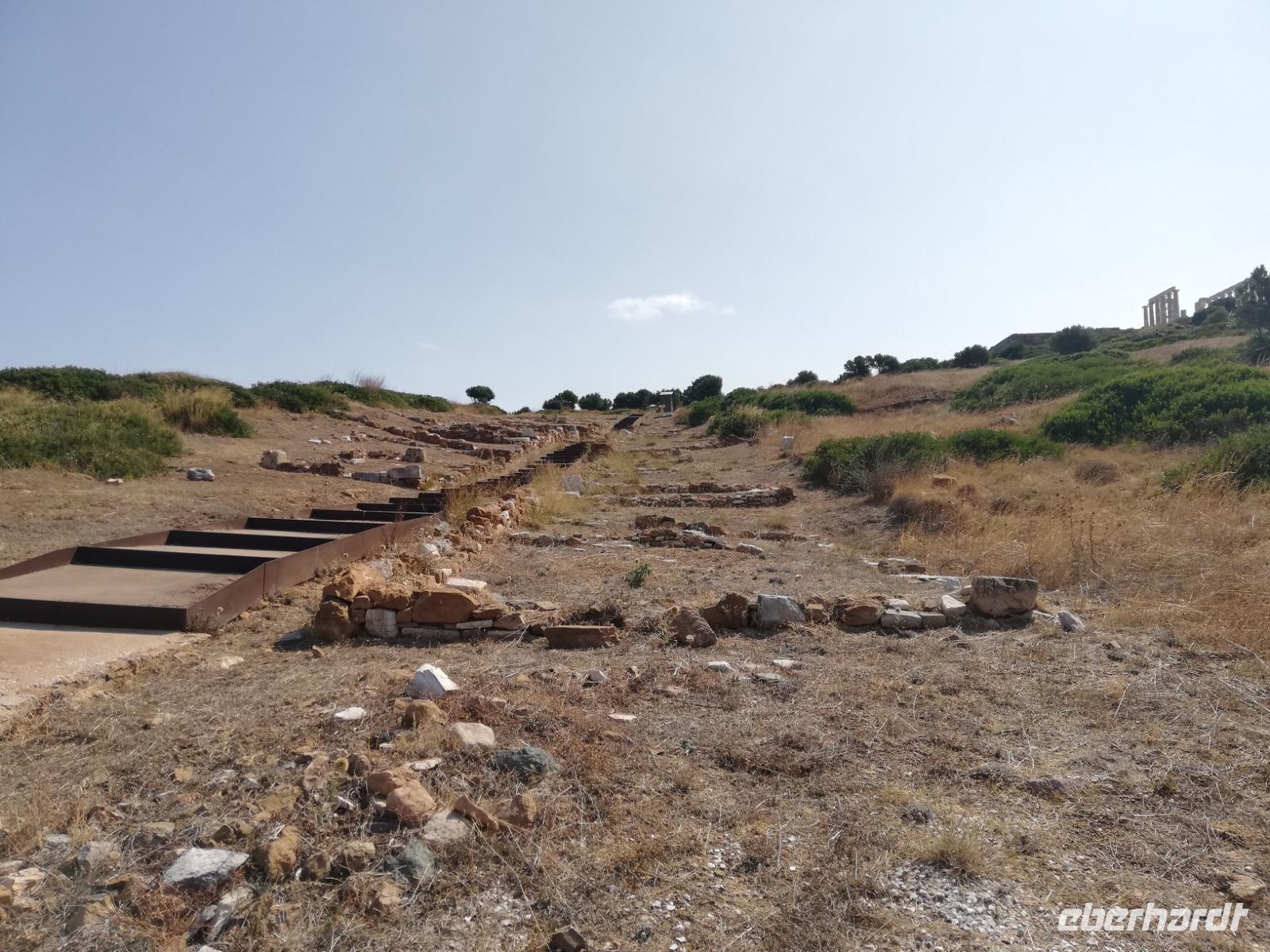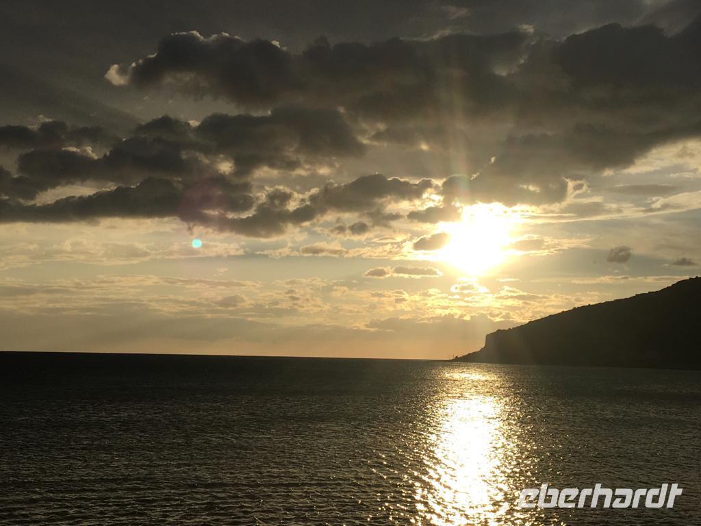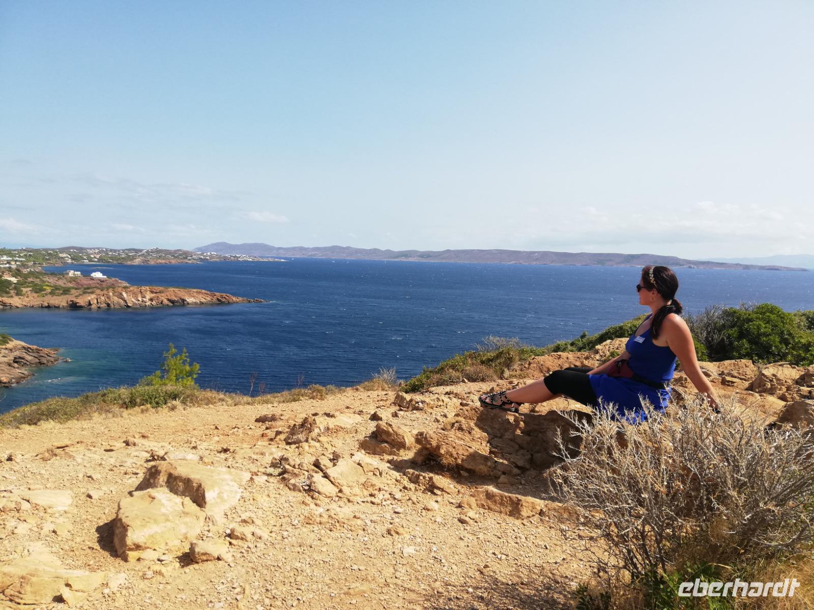 Das letzte Frühstück unserer Eberhardt petit Reise nehmen wir wieder im „Olive Garden" ein und starten 9.30 Uhr pünktlich mit unserem Bus - da unser Flug erst um 18.00 abhebt, haben wir uns entschieden, noch einen kleinen Ausflug zum Kap Sounion zu machen - der südlichsten Spitze des griechischen Festlandes. Durch die lebendige Metropole Athen schlängelt sich unser Bus, vorbei am Sintagma Platz mit dem Parlament, bei welchem wir aus dem Bus heraus auch den Wachwechsel der Soldaten in olivgrünbraunen Uniformen betrachten. Den Zeustempel, welchen wir auch schon von der Akropolis aus sahen, wirkt von Boden aus betrachtet noch umso gigantischer - er soll damals doppelt so groß wie der Parthenon gewesen sein. Weiter geht es entlang einer Küstenstraße, hinaus aus der Stadt, neben uns spült sich das klare türkisblaue Wasser an die Steinklippen. Nach circa 1,5 Stunden erreichen wir das Kap, an welchem - wie es sich gehört - ein kräftiger Wind weht. Der Hügel wird gekrönt durch den aus dem 5.Jhd v.Chr. entstandenen Poseidontempel - hier wurde der Gott des Meeres verehrt. Wir können von der Spitze aus die kleinen Inseln Kythnos, Khea und Serifos erkennen. Die am weitesten vorn im Blickfeld befindliche Insel Makronisos war ein verachtetes Stück Land, da dorthin die Verbannten und Außenseiter der Gesellschaft entsendet wurden. Aufgrund der guten Lage des Kaps und der weiten Sicht auf das Meer war Sounion immer stark bewaffnet - vermutlich auch, weil im benachbarten Dorf Lavrion große Silberminen ansässig waren. Wir unternehmen noch einen Spaziergang um den Hügel herum und schießen noch ein paar schöne Abschlussfotos, bevor wir uns zum Mittag in die Silberminenstadt Lavrion für ein Mittagessen begeben. Bei einem ausgedehnten Essen mit Bifteki, gebratenen Auberginen, sowie einem typisch griechischen „Schwein in Backpapier" angemacht mit Tomaten und Paprika, lassen wir es uns noch einmal richtig gut gehen. Auf dem Weg zum Flughafen verabschieden wir uns von unserer lieben Anastasia und checken unser Gepäck ein. Ein wenig Zeit bleibt noch um die warmen Sonnenstrahlen auf dem Gelände des Flughafens zu genießen. Mit etwas Verspätung hebt unser Flugzeug 18.30 Uhr in Athen ab und schafft es trotzdem die Landezeit 20.20 Uhr in Berlin einzuhalten. Dort stehen auch schon unsere Transferfahrzeuge nach Dresden bereit uns bringen uns sicher in unsere Heimatstadt, die wir gegen 23.00 Uhr erreichen.