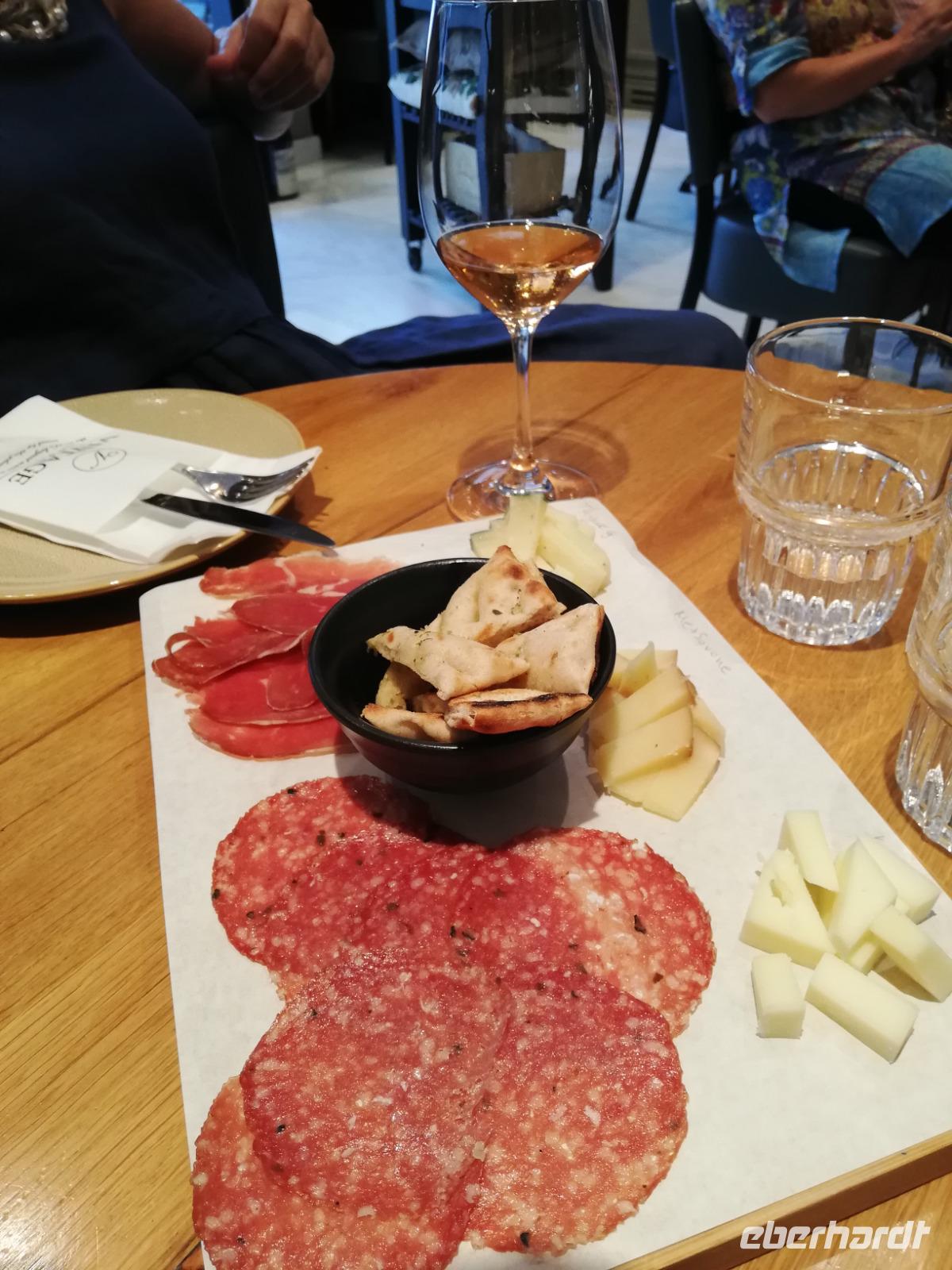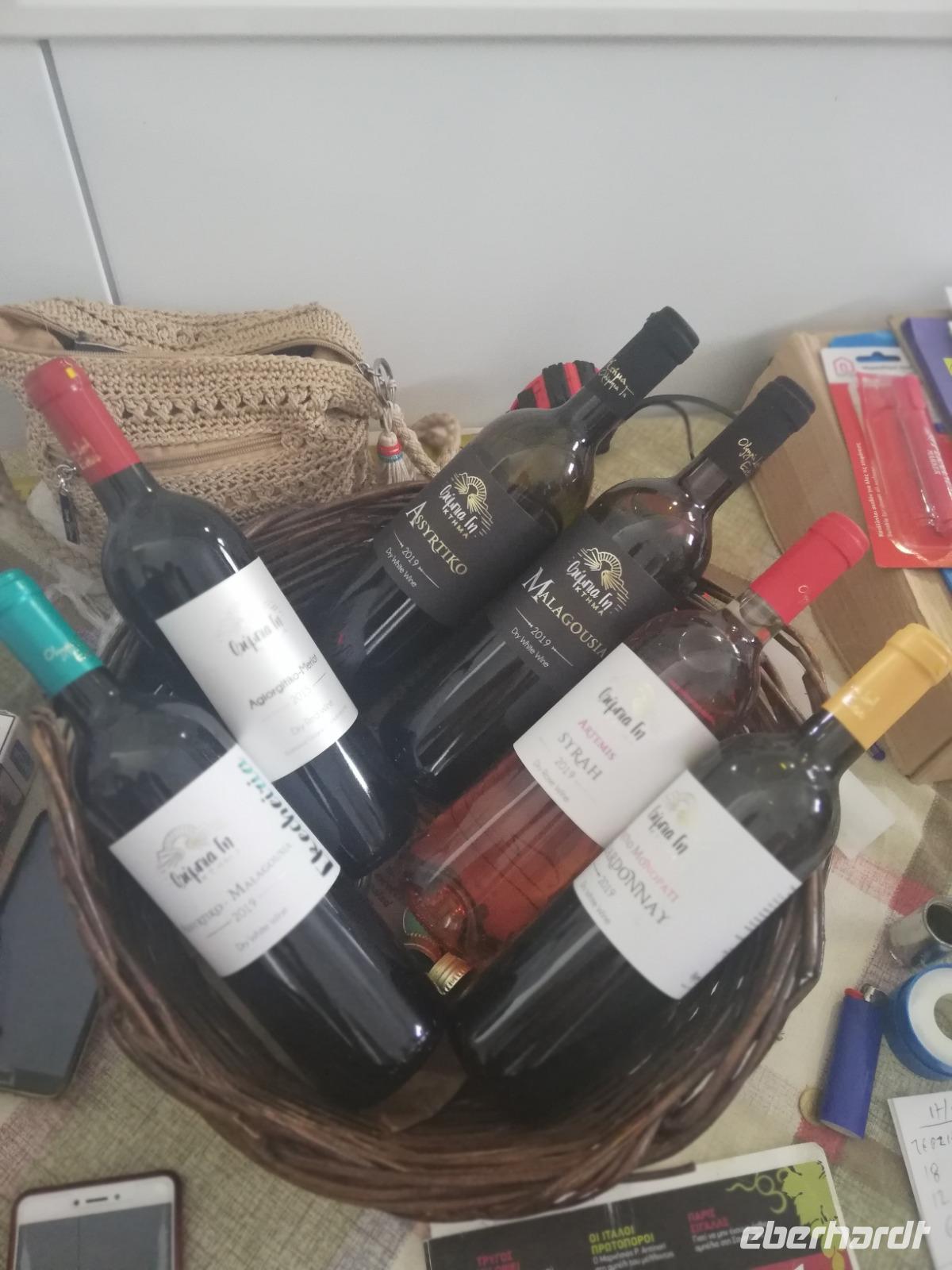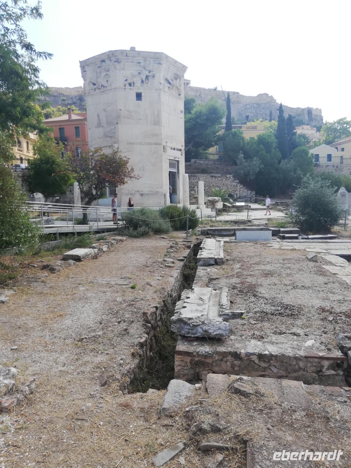 Der Nachmittag gestaltet sich für uns mit einem Rundgang durch die Plaka - die Altstadt Athens mit ihren kleinen Gässchen und Hügeln. Wir kommen vorbei am Turm der Winde und der römischen Agora, welche ein Oktagon mit Sonnenuhr beinhaltet. Wir flanieren noch ein wenig durch die Gassen, Einige trinken Kaffee, Andere machen sich auf eigene Faust auf durch die Straßen. Eberhardt bietet eine fakultative Weinverkostung am Nachmittag an, an welcher der Großteil teilnimmt. Insgesamt werden uns acht verschiedene Weine präsentiert: von Rosé über Weiß-, Rot und abschließend noch ein Dessertwein. Die dazu gereichten Snacks stammen alle von regionalen Händlern und die Auswahl ist einzigartig. Von Ziegenkäse mit Thymian, über den Räucherkäse Metsovone bis hin zur Salami mit Trüffelgeschmack ist alles dabei.