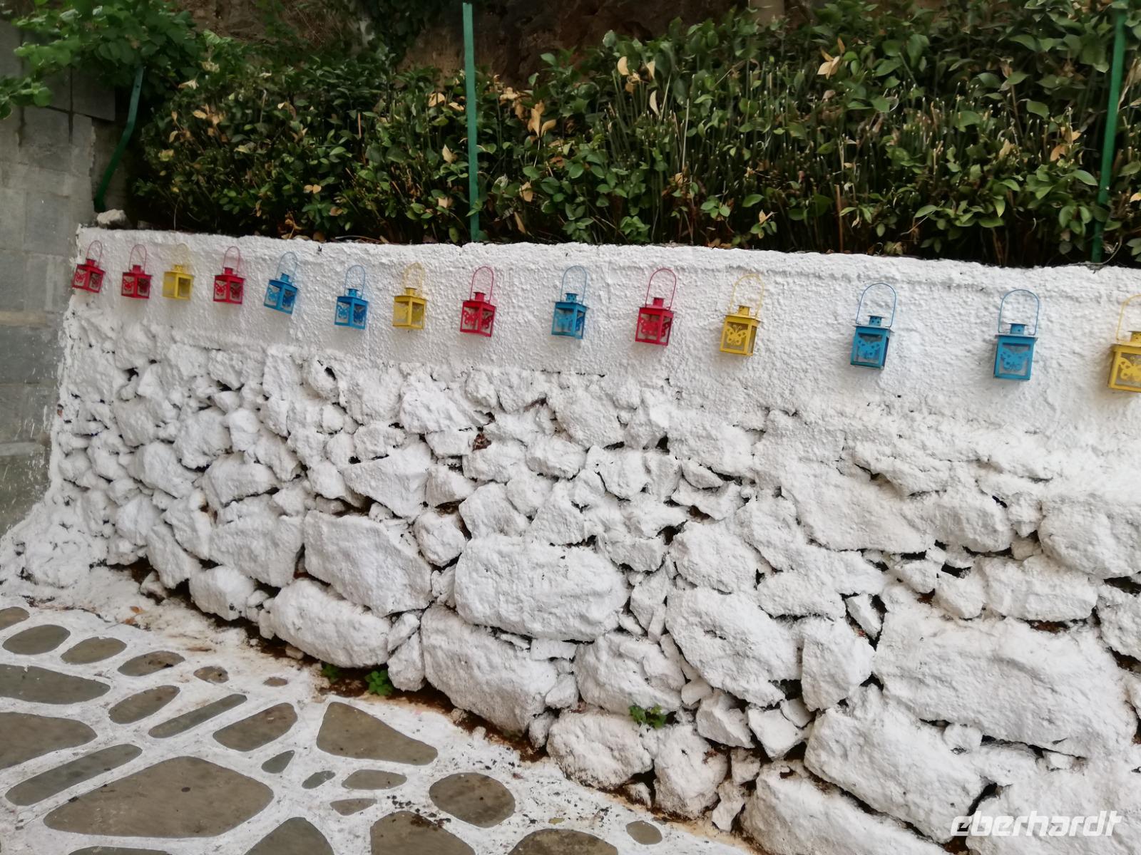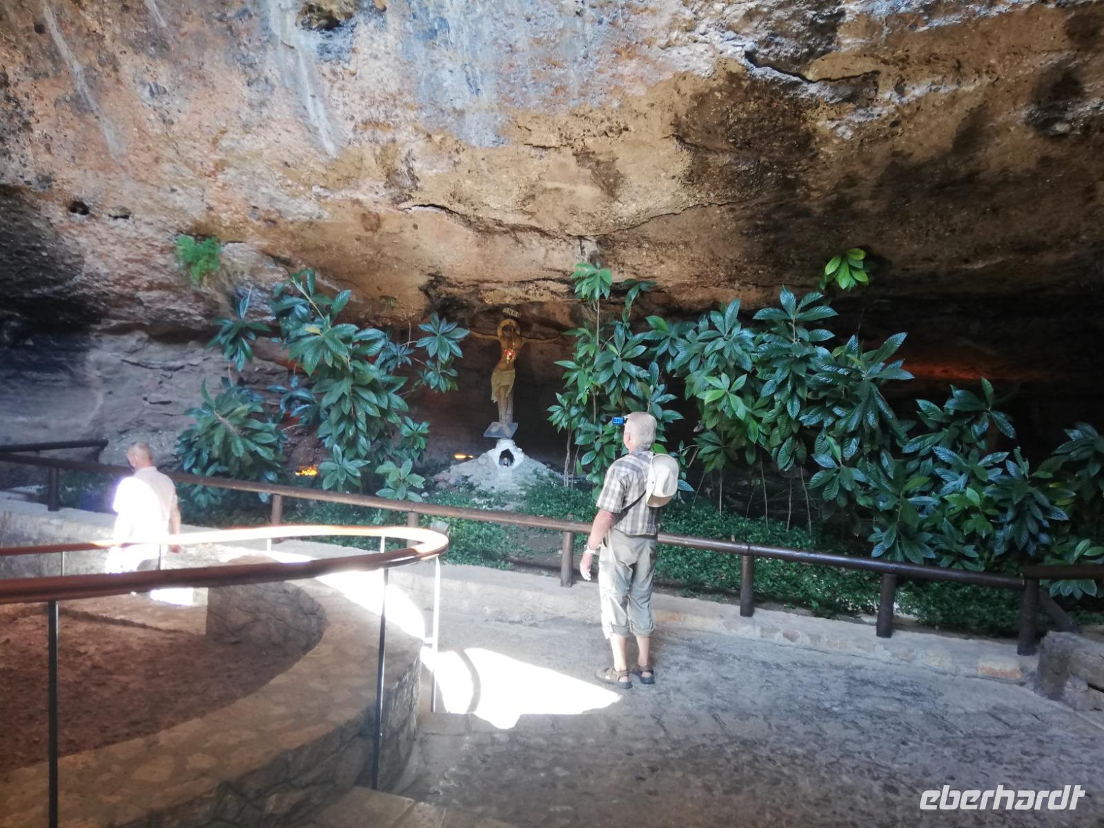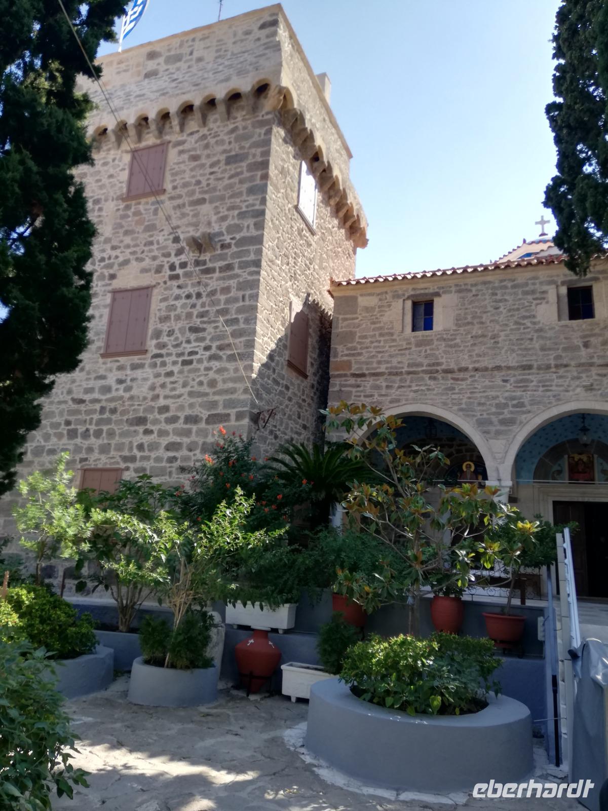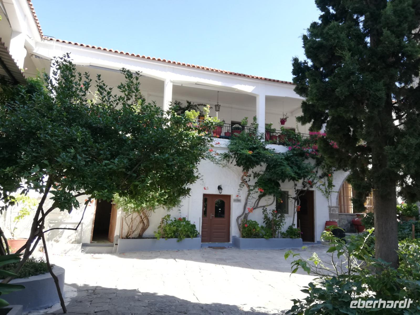 Wir unternehmen noch einen Verdauungsspaziergang im Ort, bevor es für uns zu unserer letzten Station geht: dem Felsenkloster Mega Spileo - das wohl Älteste Kloster in ganz Griechenland aus dem 4 Jhd. n.Chr. Leider ist dieses Kloster im Laufe der Jahrhunderte mehrfach abgebrannt - zuletzt aber 1934. Aufgrund dessen wurde der Bau dieses Kloster mehrfach restauriert und erscheint eher ziemlich modern. Wir treten ein in das Haus am Hang und besuchen auch die Kapelle, in welcher ein kleiner Mönch mit langem grauem Vollbart unseren Besuch genauestens beobachtet. Auch haben wir die Möglichkeit, in den hinteren Bereich einzutreten, in welchem in einer Steinhöhle am Fels unterschiedliche christliche Szenen dargestellt werden.