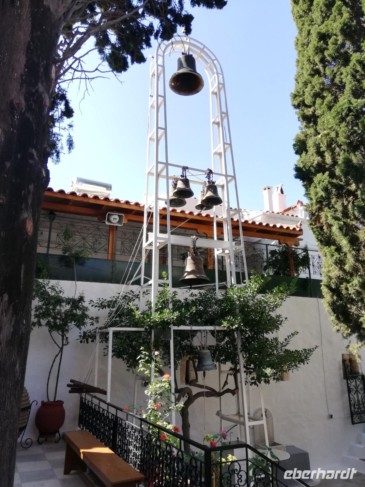 Auf der Insel angekommen, fahren wir zunächst zum Marienkloster Chryssoleodissa - in den Bergen gelegen umgeben von einer fantastischen Ruhe. Unser Busfahrer Apostolis hat ordentlich zu tun - mit viel Bravour schlängelt er sich durch die nur eine Autobreite engen, teils asphaltierten Straßen hinauf - da bleibt uns an der einen oder anderen Stelle kurz der Atem stehen. Doch er meistert diese Fahrt sehr gut und wir erreichen das Kloster ohne Probleme. Das Nonnenkloster ist klein, bescheiden aber dennoch gemütlich - viele unterschiedliche Pflanzen säumen den Innenhof. Am Eingang begrüßen uns ein paar Gänse, die sich ein wenig scheu dann aber auch ganz schnell zurück in Ihren Stall zurückziehen. Wir verweilen noch ein wenig in diesem stillen Kleinod und nehmen anschließend die gleiche Route wieder den Berg hinab, in Richtung des Aphaia Tempels. Dieser sieht ein wenig so aus, wie der Parthenon Tempel der Akopolis aus Athen - dennoch um Einiges kleiner und nicht so gigantisch - die Kapitelle sind hier dorisch gehalten -also sehr einfach und nicht so filigran verziert. Aphaia war wohl eine Tochter des Zeus und stellte eine nur hier auf Ägina verehrte weibliche Fruchtbarkeitsgöttin dar. Auf diesem Hügel sind wir fast die Einzigen - die Ruhe und das leichte Rascheln der hier wachsenden Pinienbäume im Wind untermalt die herrliche Aussicht! Wir können von weitem auch Athen in der Ferne erkennen - die Größe dieser Stadt ist unbeschreiblich. Nach diesem Stopp fahren wir nun weiter in Richtung Hafen. Wir unternehmen einen Rundgang mit unserer Reiseleiterin, welche uns die besonderen kleinen Gaststätten im Hinterland der Promenade zeigt. Nach einem guten Mittagessen vertreiben wir uns noch die Zeit im Örtchen beim Schlendern durch die verwinkelten Gassen mit kleinen Boutiquen und Souvenirgeschäften, bunten Regenschirmen und klingenden Windspielen. Pünktlich um 6.00 Uhr legt unsere Fähre zurück in die Hauptstadt ab, welche wir nach circa 1,5 h erreichen. Apostolis holt uns am Ausstieg der Fähre wieder ab und wir begeben uns auf den Weg in Richtung Vrachati - den Ort unseres nächsten Hotels. Auf der Reise erklärt uns Anastasia Einiges über die griechische Sprache und deren Entstehungsgeschichte über das Etruskische zum Latein und unserer heutigen Schriftform. Damals gab es keine klein gedruckte Schrift in solchem Sinne, wie wir sie heute kennen, weshalb die Großbuchstaben im griechischen Alphabet der lateinischen Schrift am ehesten ähneln.