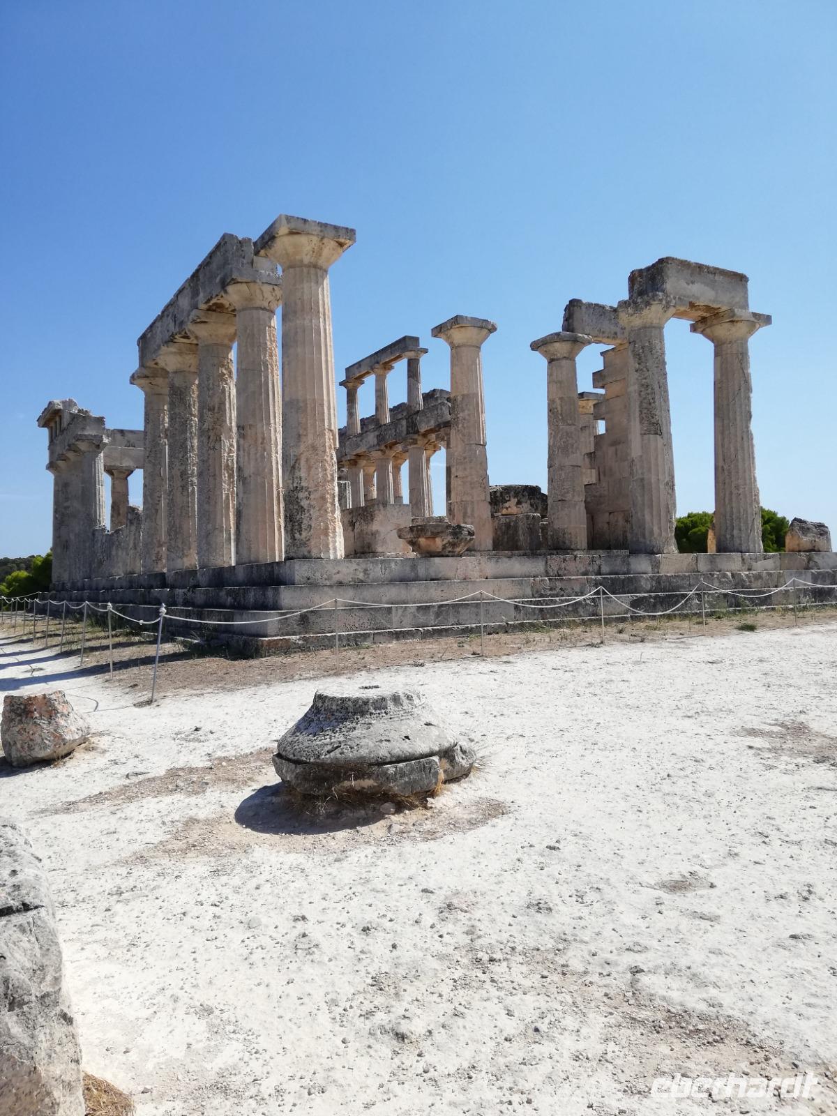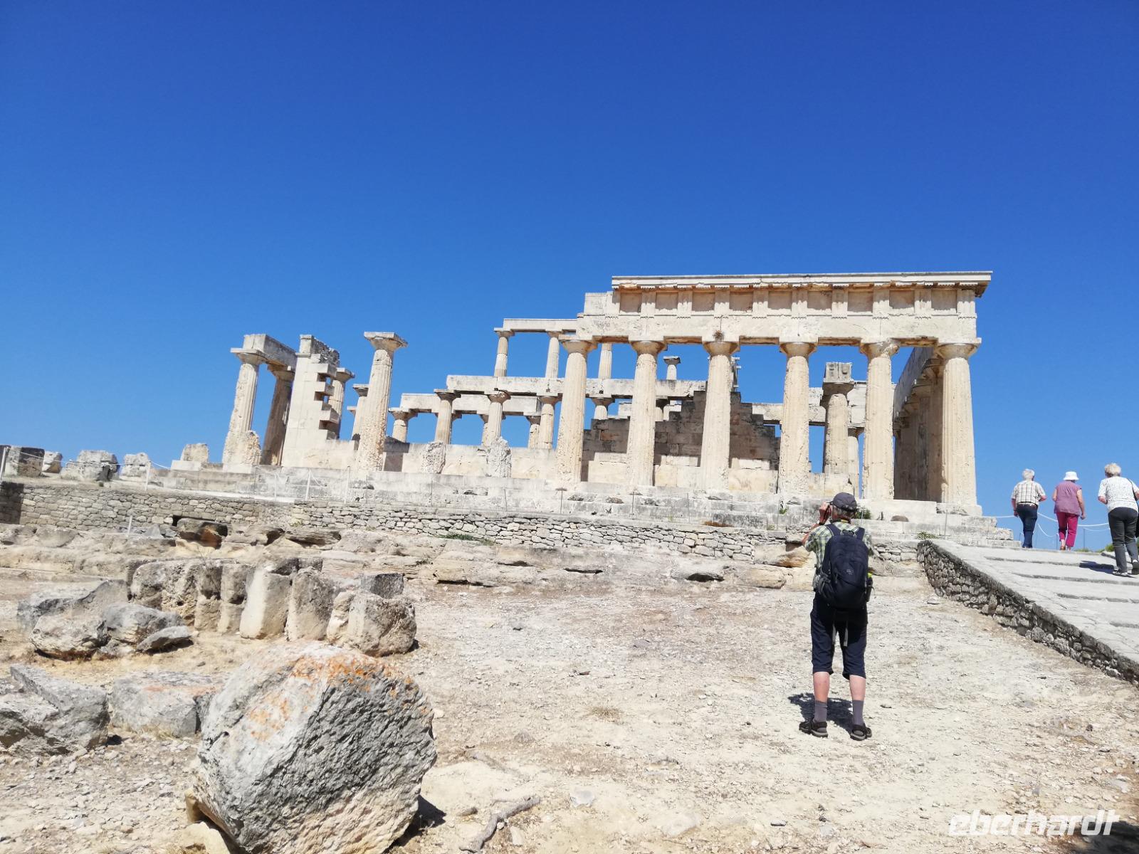 Nach einem zeitigen Frühstück auf der Dachterrasse des Titania starten wir um 7.45 Uhr mit gepackten Koffern und guter Laune in den sonnigen 3.Tag. Auf geht es zum Hafen Piräus, der ursprüngliche Kriegsschiffhafen aus antiker Zeit, welcher sich über die Jahrhunderte zu einem wichtigen Zentrum des Handels und des Transportes entwickelt hat. Unsere Fähre erwartet uns schon und schippert unsere Reisegruppe inkl. des Busses in etwas über einer Stunde zur Insel Ägina. Die Insel mit einer Größe von nur 83 Quadratkilometern ist bekannt für Ihre Pistazien - allein von hier kommen circa 2% der gesamten Pistazienproduktion der Welt, da der Boden und das Klima hier sehr günstig für deren Wachstum sind.
