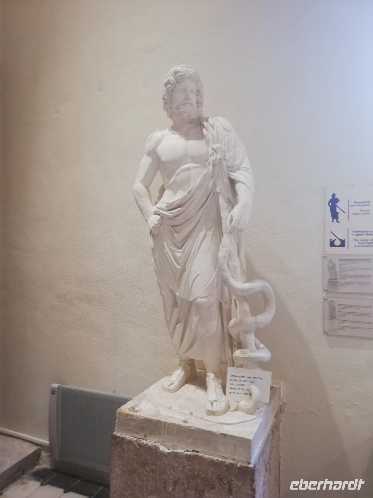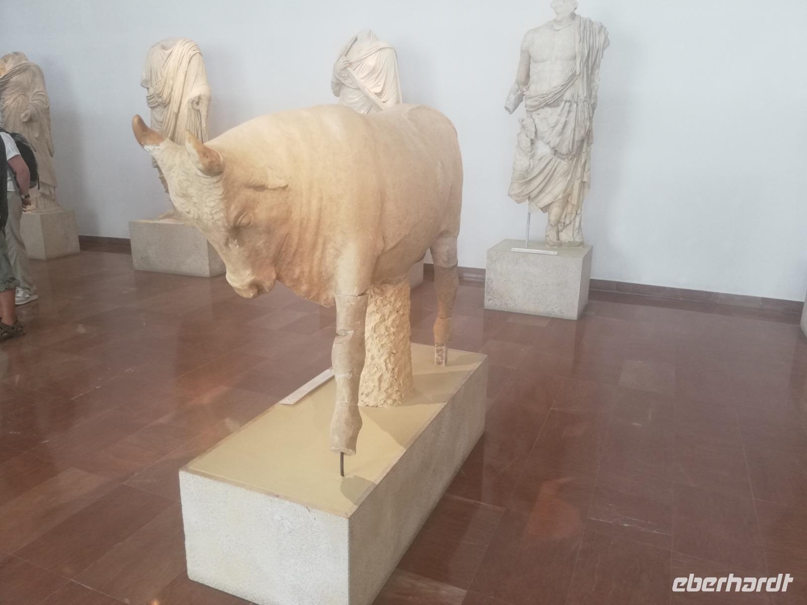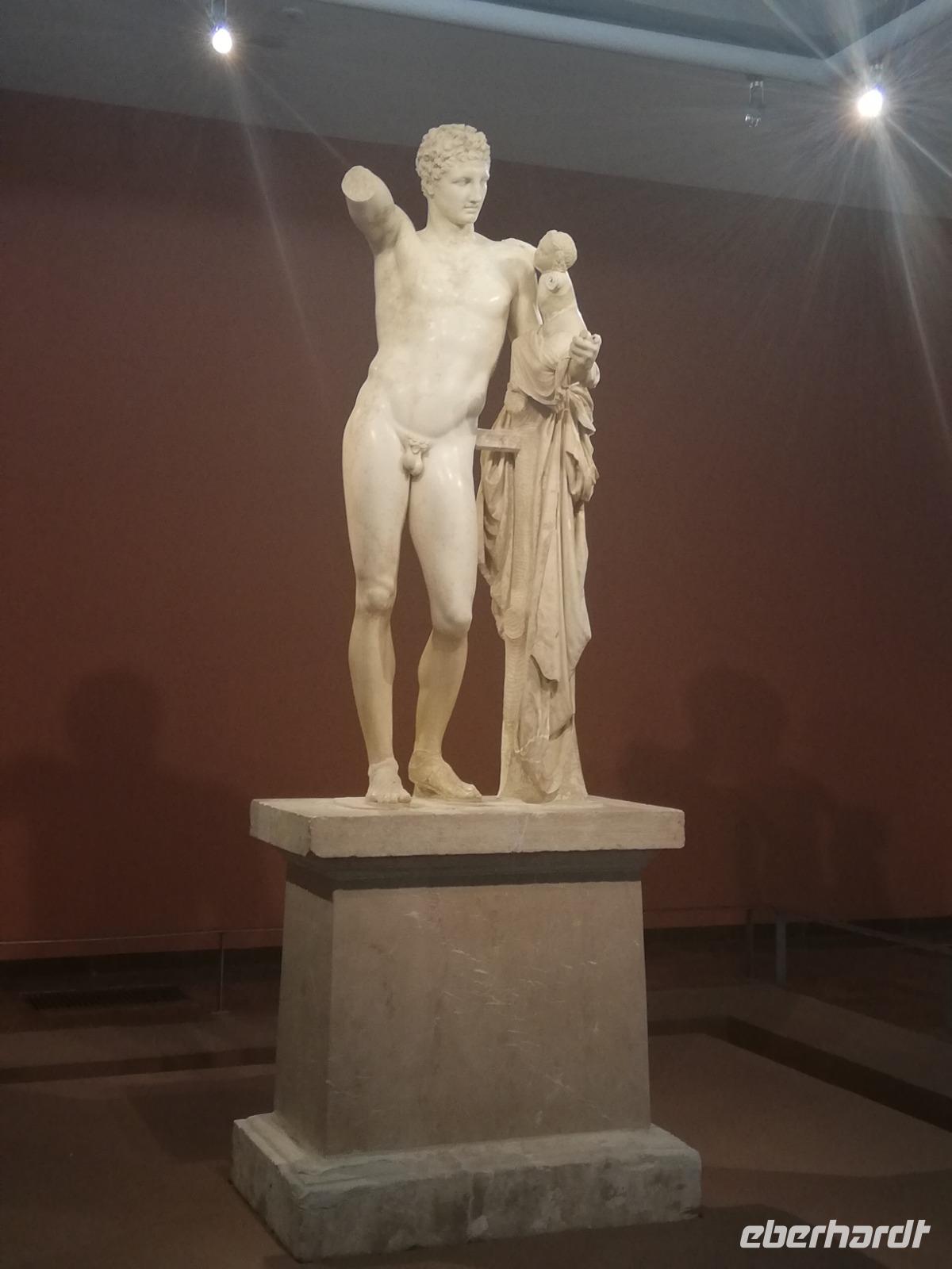 Nach dieser Sporteinlage finden wir uns beim zweiten wichtigen Tempel des Heiligtums ein - dem Heratempel. Wir betrachten die Stelle des Altars der Hera, an welchem bis heute noch das Olympische Feuer mit einem Konvexen Spiegel und dem Sonnenlicht entzündet wird. Abschließend zu diesem Besuch schauen wir uns im dazugehörigen Museum noch die Fundstücke und Ausgrabungen, sowie geborgene und vervollkommnete Statuen an. Auch eine Statue des Hermes mit dem kleinen Dionisos auf dem Arm ist hier ausgestellt. Besonders sehenswert und wertvoll sind die kleinen Figuren aus Bronze, die zur Anfangszeit noch aus einem Guss gefertigt wurden.