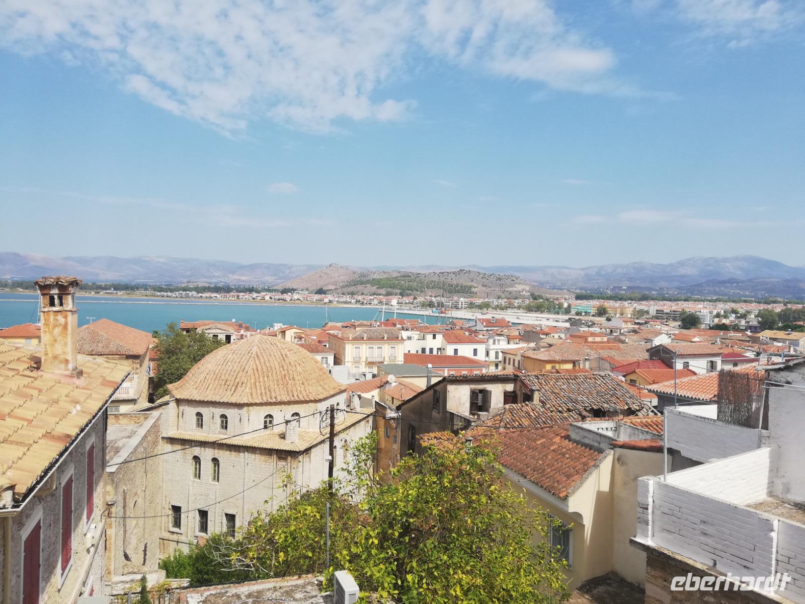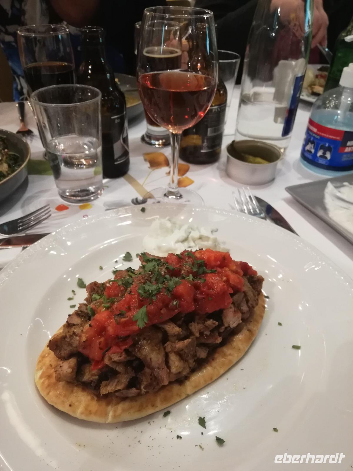 Nach diesem Besuch nutzen wir die fantastische Aussicht auf der Anhöhe noch für ein paar Fotos und verlassen im Anschluss den Nordosten der Peloponnes, da wir nach unserer Rückkunft gern noch ein wenig den hoteleigenen Pool und das Meer bei Tageslicht genießen wollen. Am Abend genießen wir erneut ein ominöses Mahl und können heute wieder zwischen anderen Speisen wählen, Schwein, Rind und Sardinen aus dem Backofen oder eine klassische Kebab Pita. Ein köstlicher Abschluss in Vrachati!