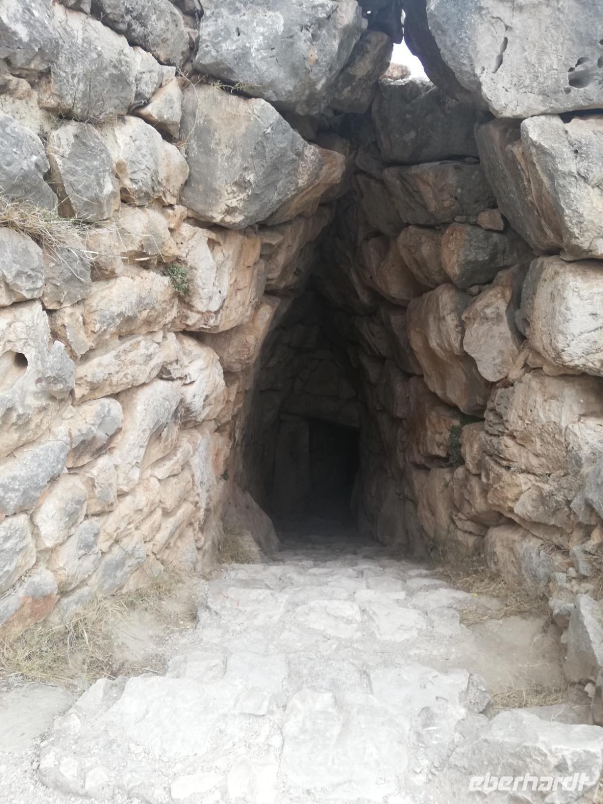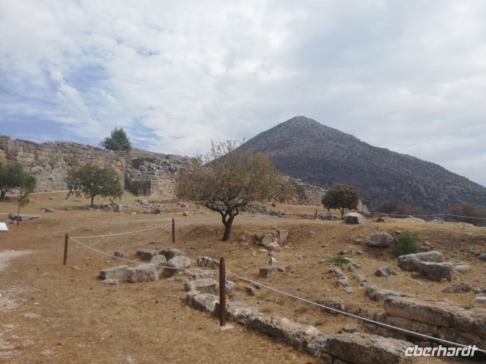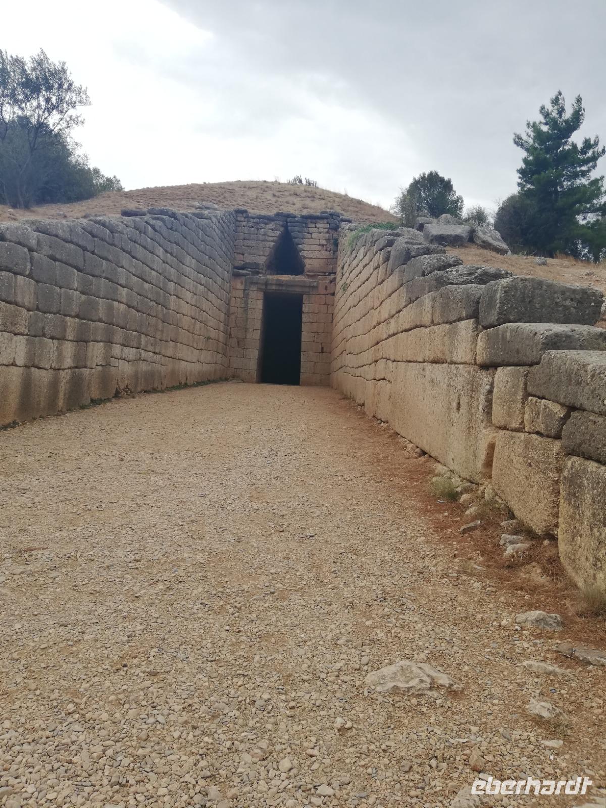 Nach diesem Hörerlebnis betreten wir ein kleines Museum des Eskulap - auf Griechisch Asklepio genannt - welchem dieses Theater geweiht wurde. Der Eskulap war laut Überlieferungen eine Art Mediziner, welcher sowohl die körperliche, als auch die geistliche Heilung versprach. Zu damaliger Zeit sollen die Menschen aus ganz Griechenland angereist sein. Doch vor der körperlichen Heilung musste der Geist gereinigt werden und somit wurden im Epidaurus auch Predigten für die Heilung und geistige Vorbereitung gehalten. Im Museum können wir sowohl ein Abbild des Eskulap betrachten, als auch unterschiedliche Marmortafeln, auf welchen medizinische Rezepte und Handwerkszeug aus der alten griechischen Zeit ausgestellt sind. Besonders sehenswert ist ein Stück aus parischem Marmor, welches filigran verarbeitet auf einer Säule auf Augenhöhe sitzt. Wir begeben uns anschließend auf den Weg in die schöne leine Hafenstadt Nauplia, welche starken venezianischen Einfluss hat. Bei Erreichen des Städtchens springt uns die Burg Palamidi ins Auge - sehr hoch oben thront sie majestätisch auf einem Felshang. Leider bleibt uns keine Zeit die 999 Stufen zur Burganlage hinauf zu gehen. Wir verweilen ein wenig in den niedlichen Gässchen des Ortes, in welchem viele kleine Läden zum Bummeln einladen. Da der Ort ebenfalls an einem Berg bis an das Wasser gebaut ist, kann man nach Überwindung einiger Stufen dennoch auch noch einen wunderschönen Blick über die rötlichen Dächer auf das türkisblaue Meer erhaschen. Weiter führt uns die Fahrt nach dieser kleinen Mittagspause vorbei an vielen Orangenbaumplantagen zu der wohl bedeutendsten Ausgrabungsstätte Griechenlands - der Mykene, der ursprünglichen Festung des Königs Agamemnon. Hier sehen wir die alte Burgbefestigungsmauer, welche allerdings aus dem 13.-14. Jhd stammt mit ihrem gewaltigen Löwentor. Wir erfahren, wie die Menschen die Last aus den Tonnen-schweren Steinen umgeleitet haben durch ein Entlastungsdreieck, - und das das Löwentor eigentlich nur eine Verzierung dieses „Loches" ist. Das Problem der Statik wurde hier also bewusst gelöst und die Löwen stellen die älteste monumentale Skulptur Europas dar. Wir laufen noch ein wenig durch die Stätte, entdecken hier und da allerdings verbrannte schwarze Stellen. Vor nicht einmal zwei Wochen hat es hier einen Brand gegeben, der die Stätte als auch das Umland für einige Stunden übersähte. Aus heutiger Sicht sind keine schweren Schäden an der Mykene entstanden, dennoch wirkt die verbrannte Erde an vielen Stellen etwas karg und traurig. Wir sehen noch die natürliche Zysterne, welche Wasser aus einer auf dem Berg liegenden Quelle enthalten haben muss, bevor wir noch die Schatzkammer des Artreus (Vater des Agamemnon) direkt neben der Ausgrabungsstätte besuchen. Das Kuppelgrab besitzt 33 massive Steinringe und hat eine gewaltige Höhe von 13,5 m. Nun fahren wir nach all diesen neuen Informationen aber auch weiter in den Ferienort Kalamata, welcher direkt am Meer gelegen ist. Unser Hotel liegt etwas außerhalb direkt an der Küste zum kristallblauen Wasser. Über einen Fahrstuhl unter der Straße entlang erreichen wir das kühle Nass und der Ein oder Andere watet auch gern noch einmal hinein nach diesem langen windstillen und dadurch sehr warmen Tag. Am Abend erwartet uns ein kleines, aber gut abgeschirmtes Buffet im Hotel - wir dürfen hinter einer Plexiglasscheibe auswählen, welche der leckeren Speisen wir wählen und lassen uns es bei einem „Mythos-Bier" schmecken.