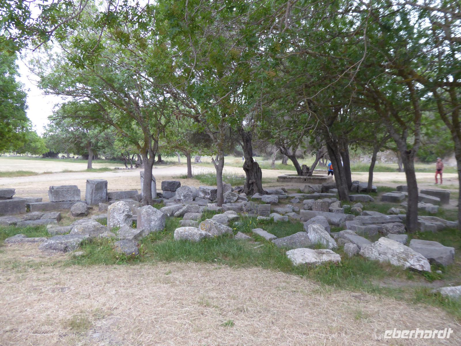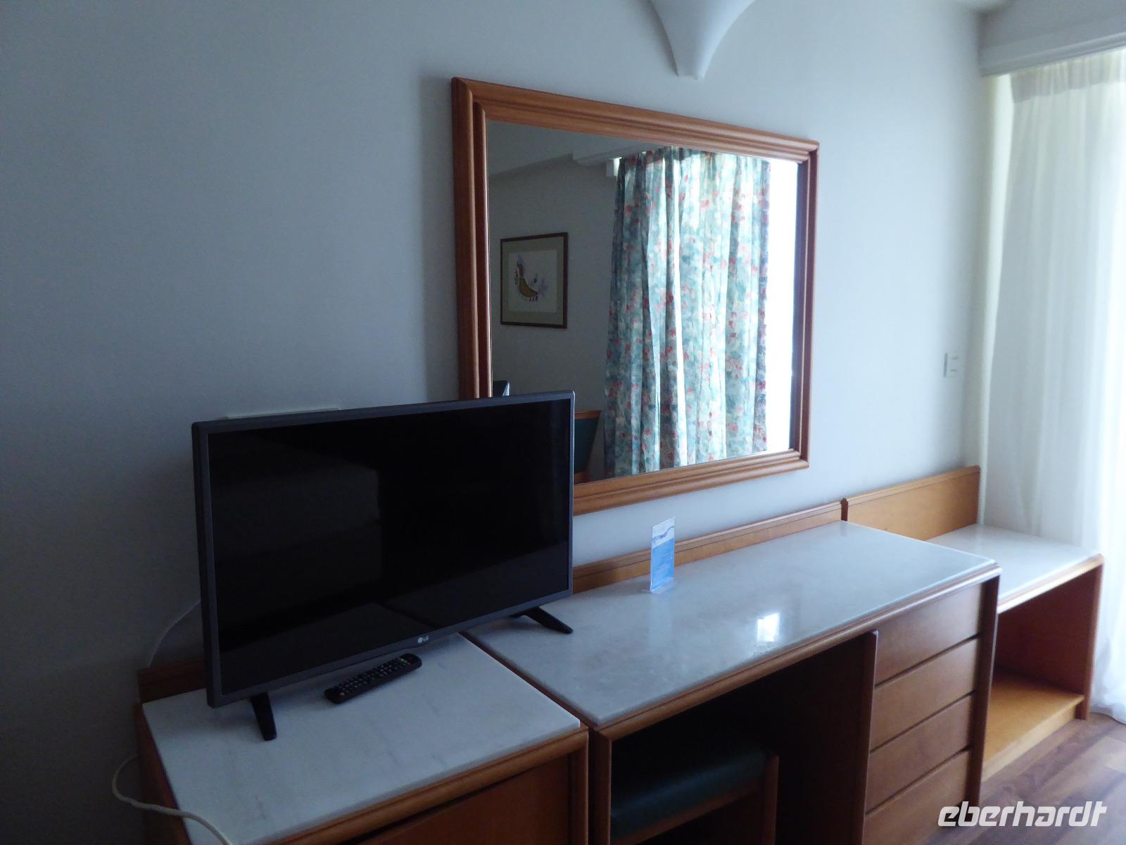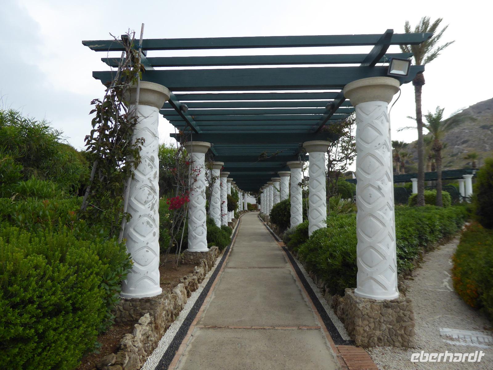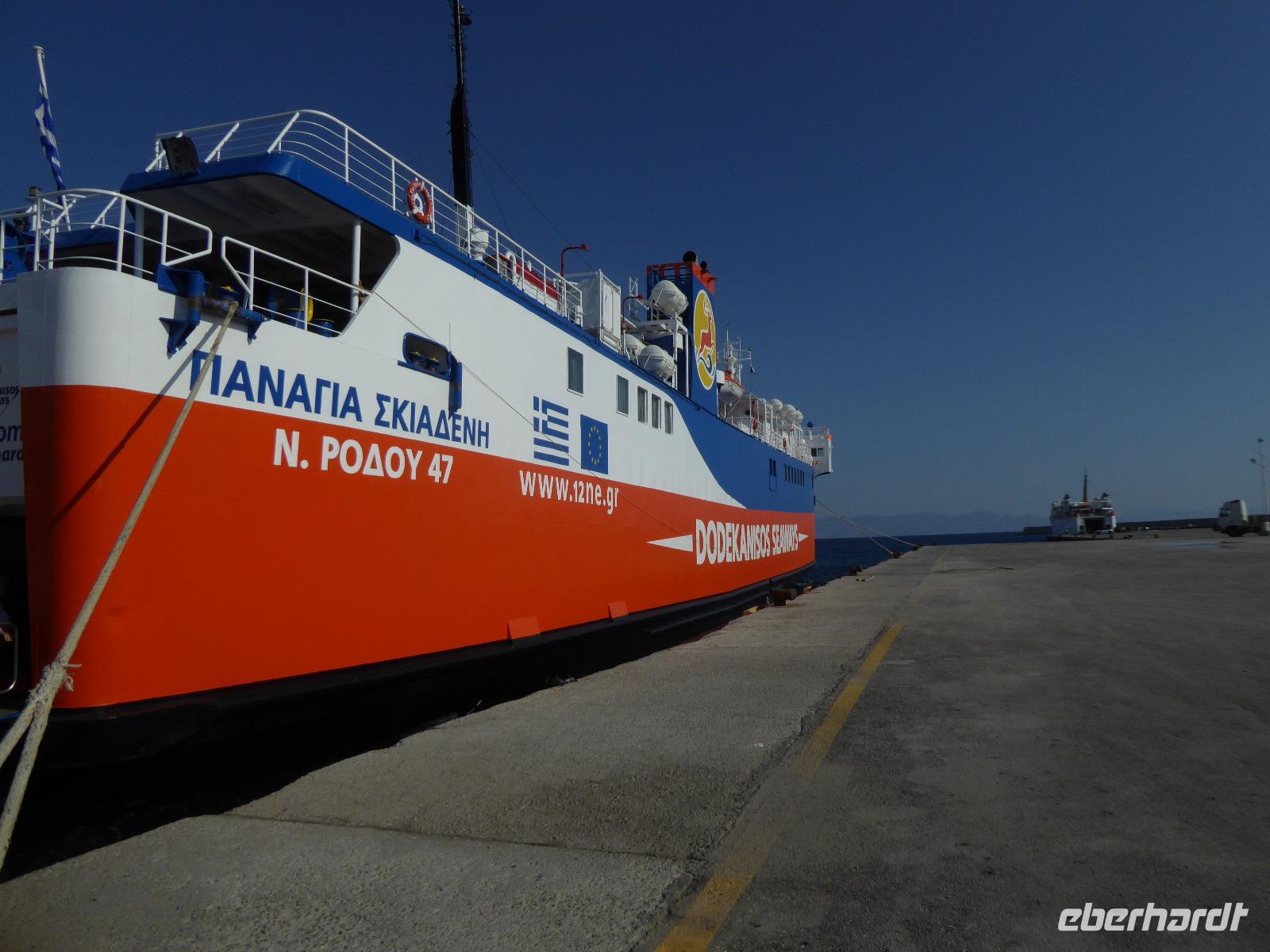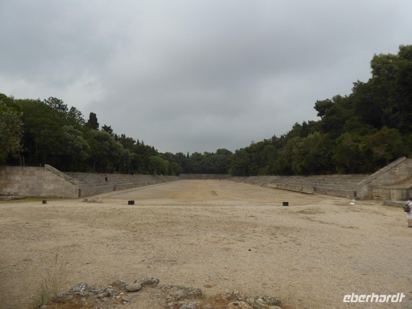 Nach einem ausgiebigen Frühstück beginnt unsere Fahrt zur Altstadt von Rhodos. Unseren ersten Stopp legen wir am Mandraki-Hafen ein. Von hier aus haben wir einen schönen Blick auf die drei mittelalterlichen Mühlen, die auf jeder Postkarte zu finden sind und auf den Hirsch und die Hirschkuh, die die Einfahrt zum Hafen flankieren. Unsere örtliche Reisleiterin Sabina, erzählt die Geschichte vom Koloss von Rhodos, der der Sage nach hier gestanden haben soll. Es ist jedem selbst überlassen, ob er/sie daran glaubt, dass es den Koloss jemals gegeben haben soll. Unsere Fahrt führt uns weiter zum höchsten Punkt der Stadt - der Akropolis. Akron bedeutet genau das - höchste Stelle der Stadt und so kommt es, dass fast jede griechische Stadt eine Akropolis hat. Diese hier ist ziemlich mager, nur drei Säulen konnten mühsam wiedererrichtet werden. Dafür gibt es ein gut restauriertes Stadion zu sehen, in dem der berühmte Faustkämpfer seiner Zeit (Mitte des 4. Jahrhunderts v. Chr.) Diagoras trainiert haben soll. Heute ist sogar der Flughafen von Rhodos nach ihm benannt. Uns verfolgt nun etwas sehr Ungewöhnliches auf Rhodos - nämlich Regen. Der Himmel ist grau und es donnert kräftig vor sich hin. Und es dauert nicht lange bis der Himmel seine Schleusen öffnet und die Regenschirmverkäufer gute Geschäfte machen. Wir spazieren durch die Altstadt, am Großmeisterpalast vorbei bis zum Platz der Museen. Von hier aus kann nun jeder in Eigenregie entscheiden, ob er sich zunächst der guten griechischen Küche widmet oder doch erst das Kulturprogramm mittels Museumsbesuch fortsetzt. Bald schon hört es auf zu regnen und wir können bei schönstem Sonnenschein noch einmal durch die Gassen bummeln. Am Abend lädt uns unser Reiseveranstalter Eberhardt zu einem Ouzu an der Poolbar ein.