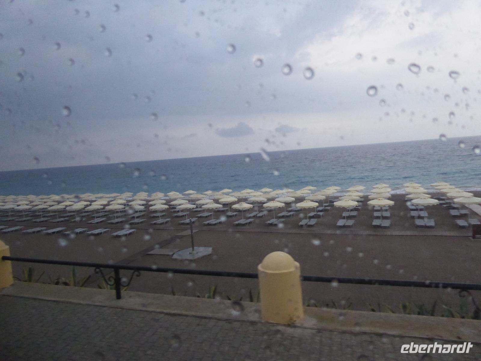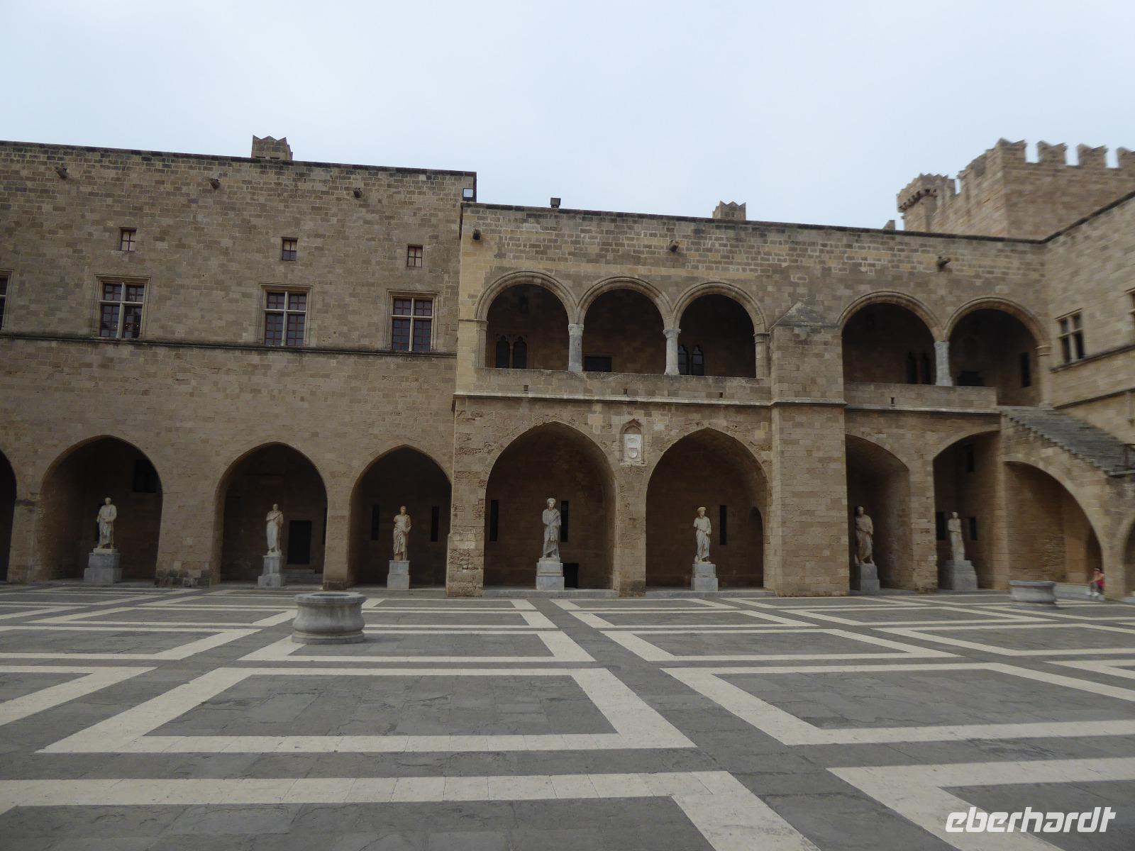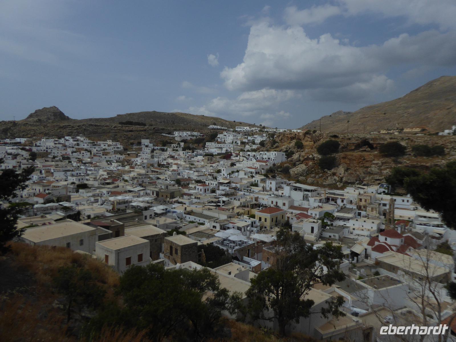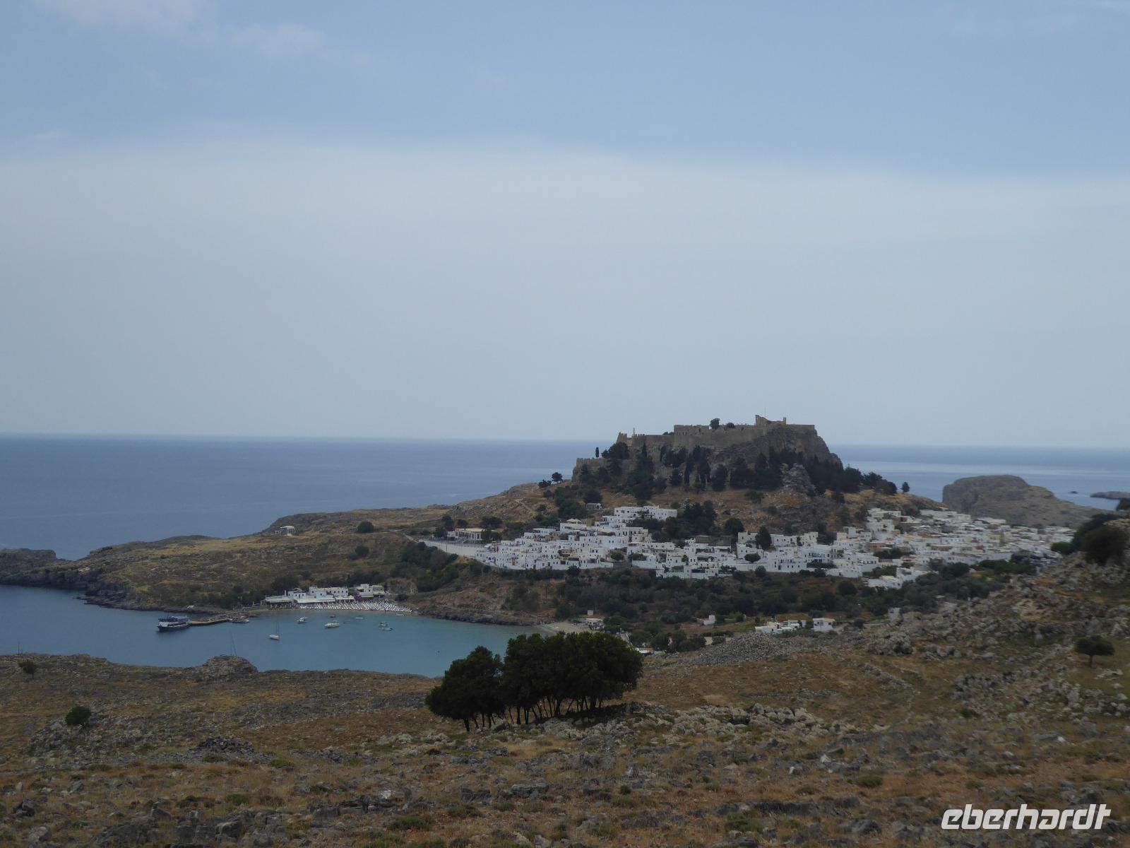 Wir starten wiederum um Neun. Immer an der Ostküste entlang geht es Richtung Süden. Lindos befindet sich in der trockensten und unfruchtbarsten Gegend der Insel. Dafür haben die Bewohner etwas anderes entdeckt, um ihren Lebensunterhalt zu bestreiten - den Tourismus. Mit Eseln können sich laufmüde Touris zur Akropolis bringen lassen, die Gassen sind voller Läden und Tavernen. Lange vor unserer Zeit war Lindos eine Seemacht, hier wurden Schiffe gebaut und Kolonien gegründet. Die Menschen, die dies fertig brachten waren die Dorer. Und dorische Säulen zierten auch den Tempel der Akropolis. Der Tempel ist zerstört, die schöne Aussicht geblieben. Heute gezeichnet von dunklen Wolken, aus denen Donner grollt und in denen Blitze zucken. Wir haben ausreichend Zeit, die schöne Stadt zu erobern. Mittags geht es weiter. Wir besuchen eine Keramik-Werkstatt und die Thermen von Kalithea. Später fahren wir nochmal nach Rhodos Stadt und besichtigen den Großmeisterpalast von innen, das hatten wir gestern irgendwie verpasst. Zum leckeren Abendbuffet sind wir zurück im Hotel. Ein schöner Tag geht zu Ende.