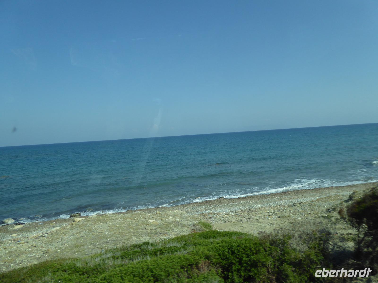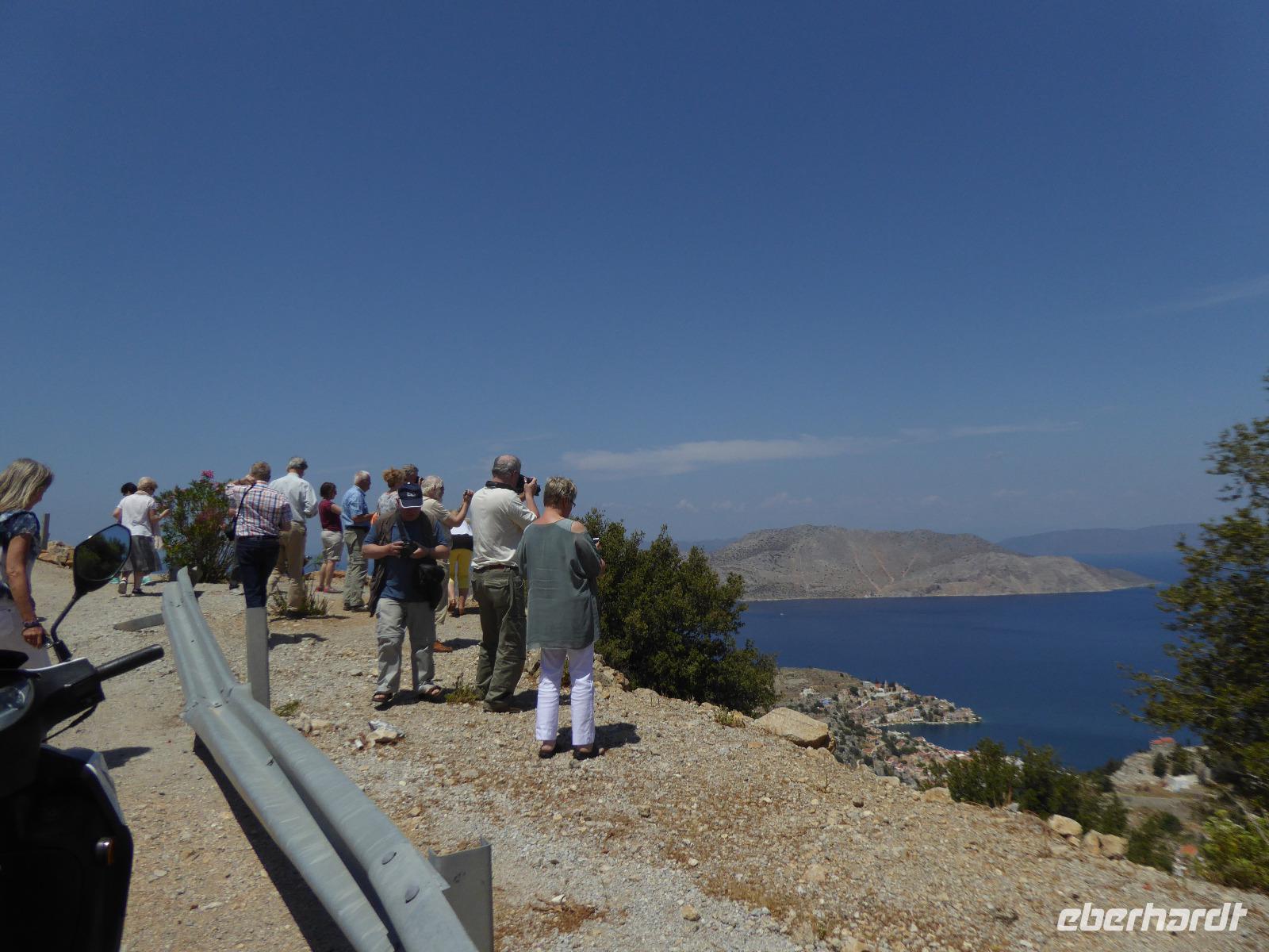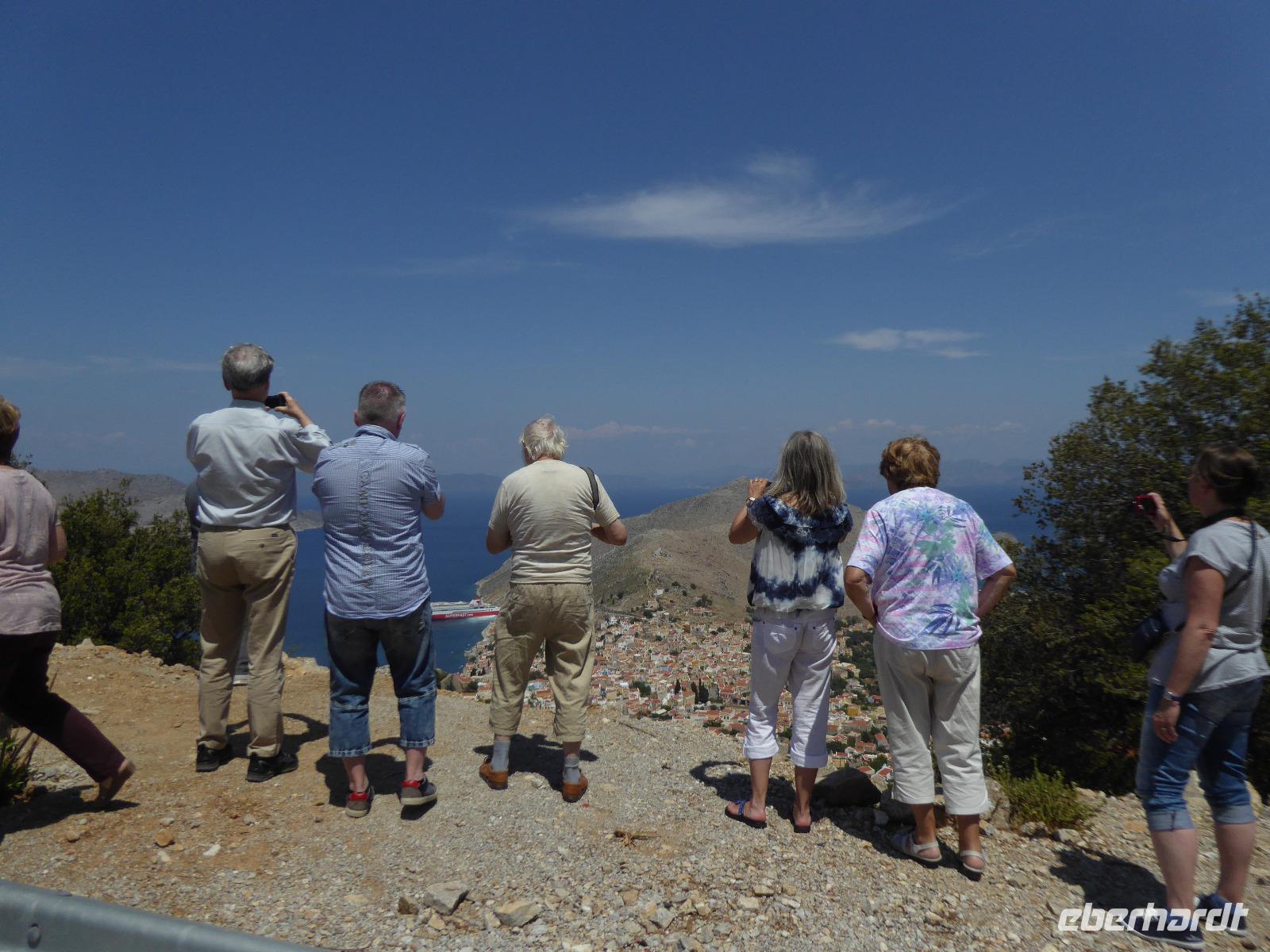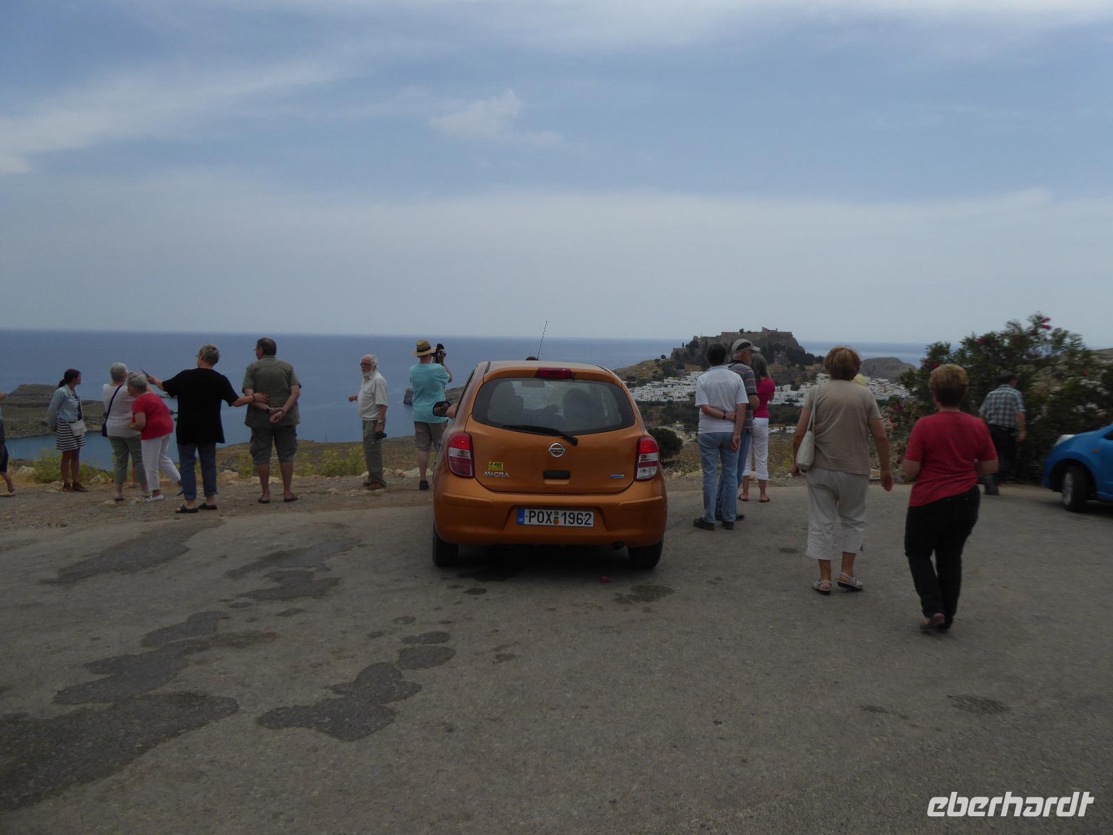 Nach einer Stunde fahren wir zurück zum Hafen. Unterwegs legen wir an zwei traumhaften Aussichtspunkten Fotostopps ein. Nun ist genügend Zeit zum Bummeln, Kaffeetrinken oder Schwämme shoppen. Danach bringt uns die Fähre wieder zurück nach Rhodos.