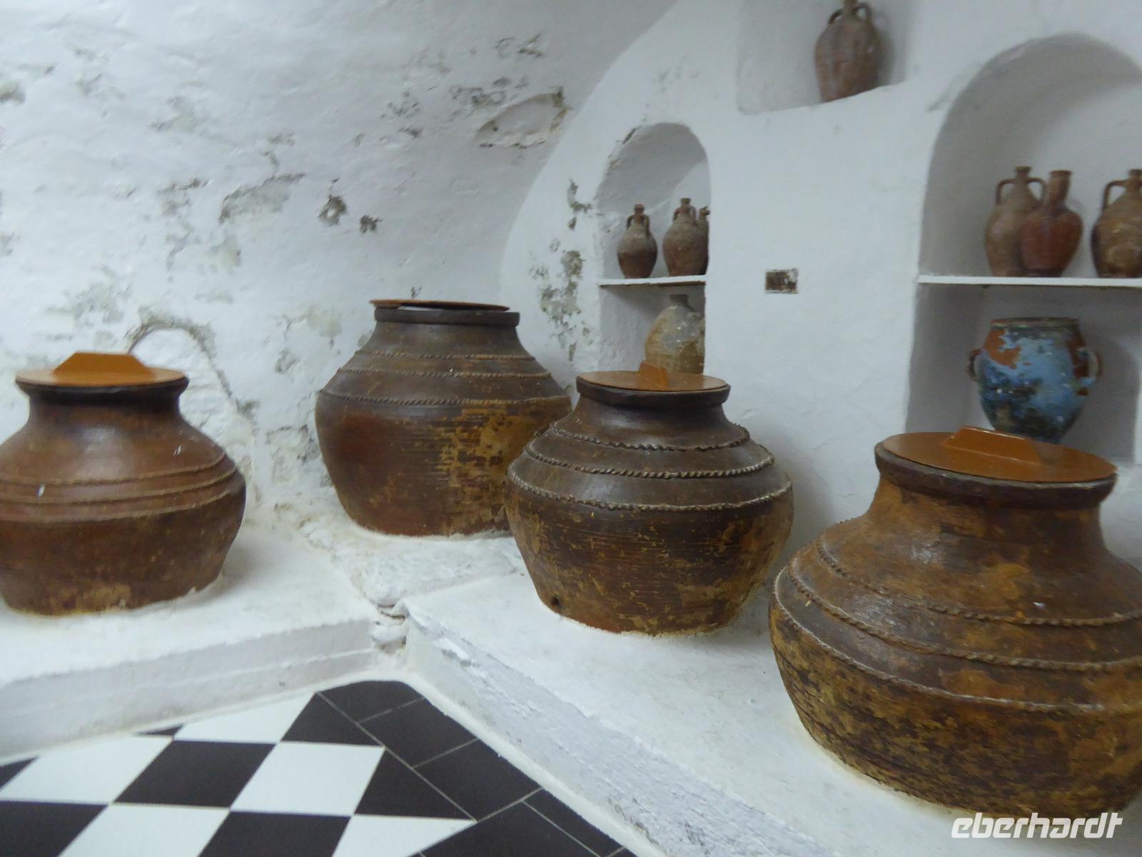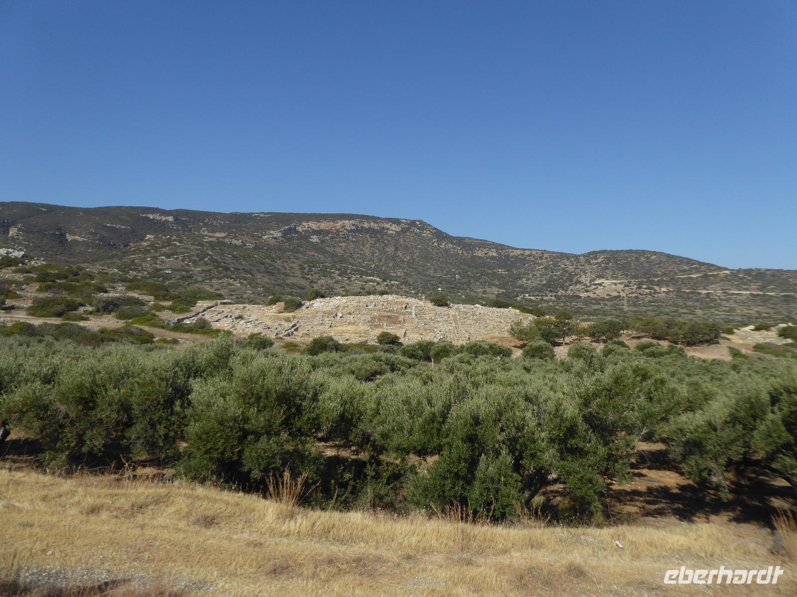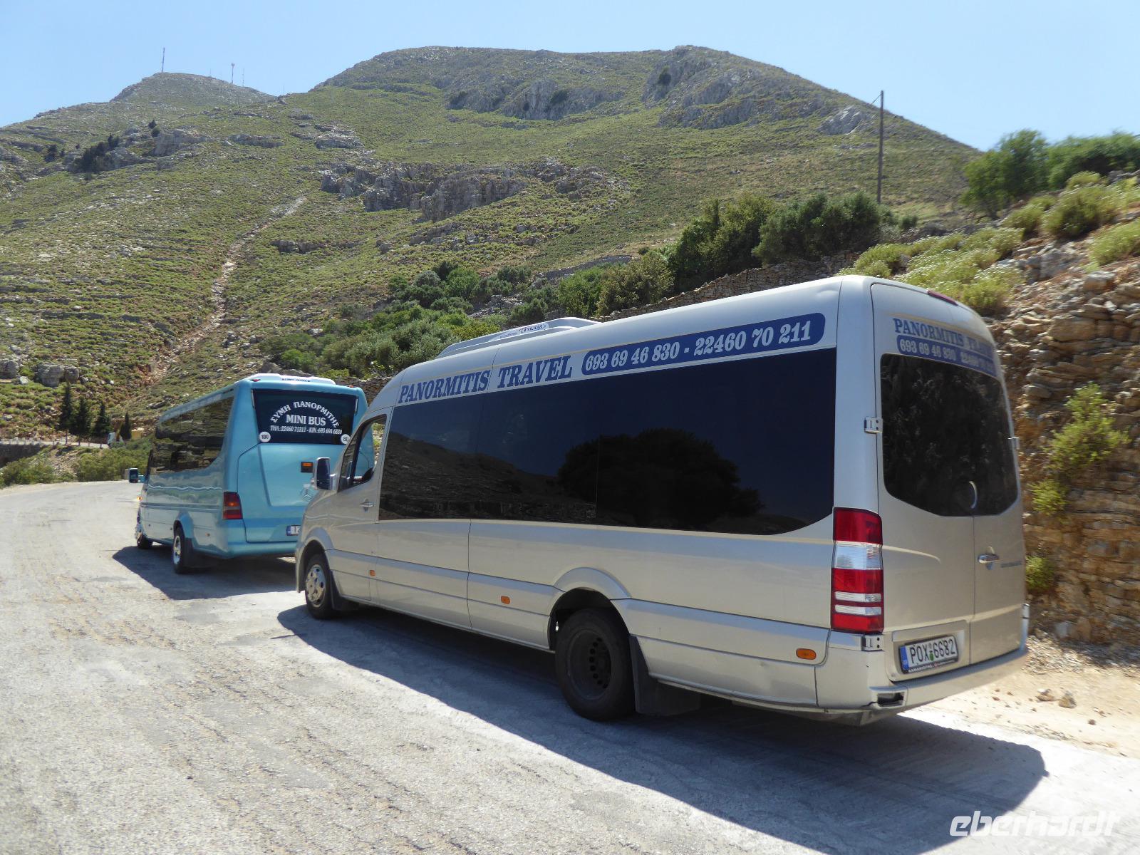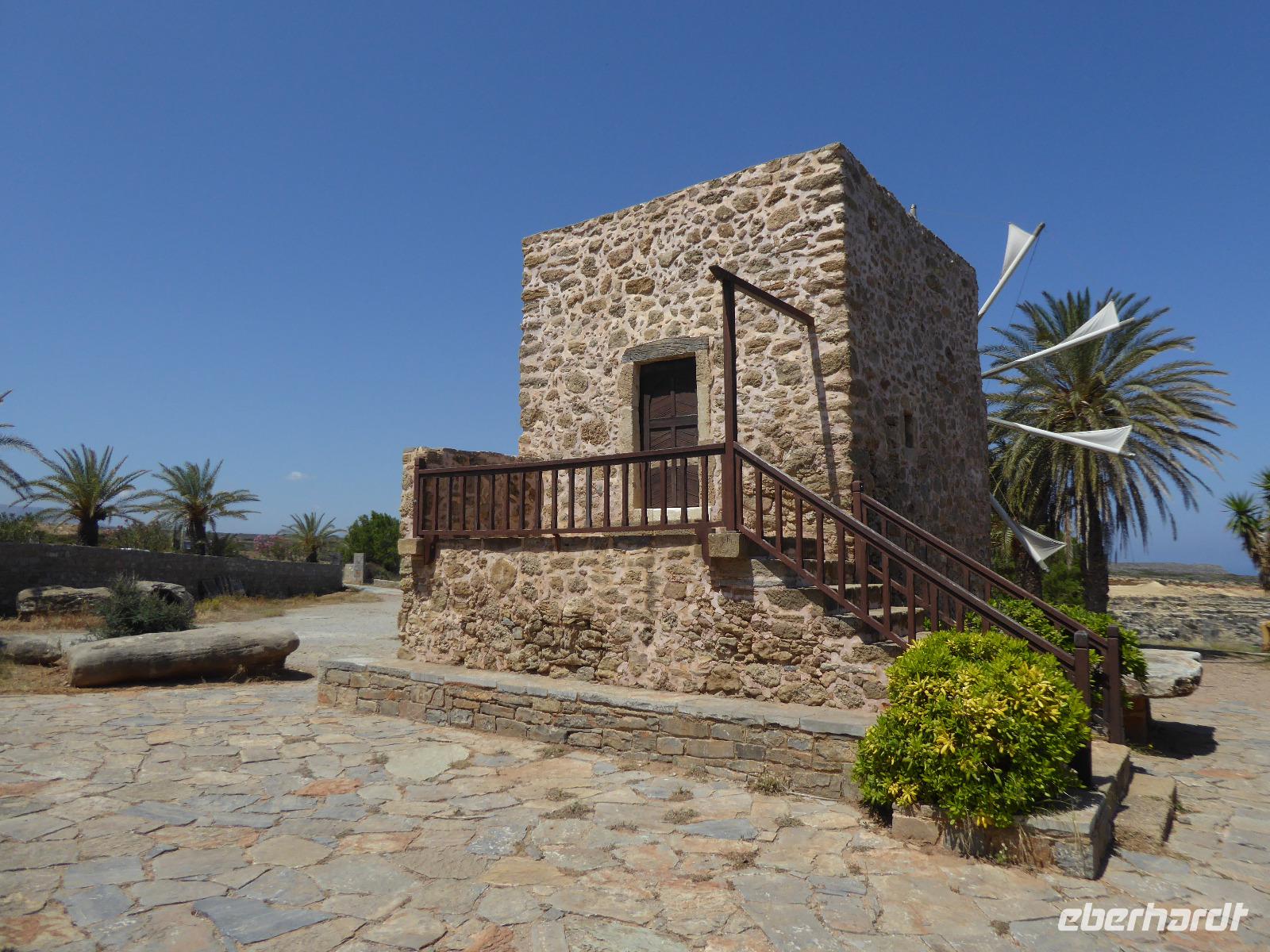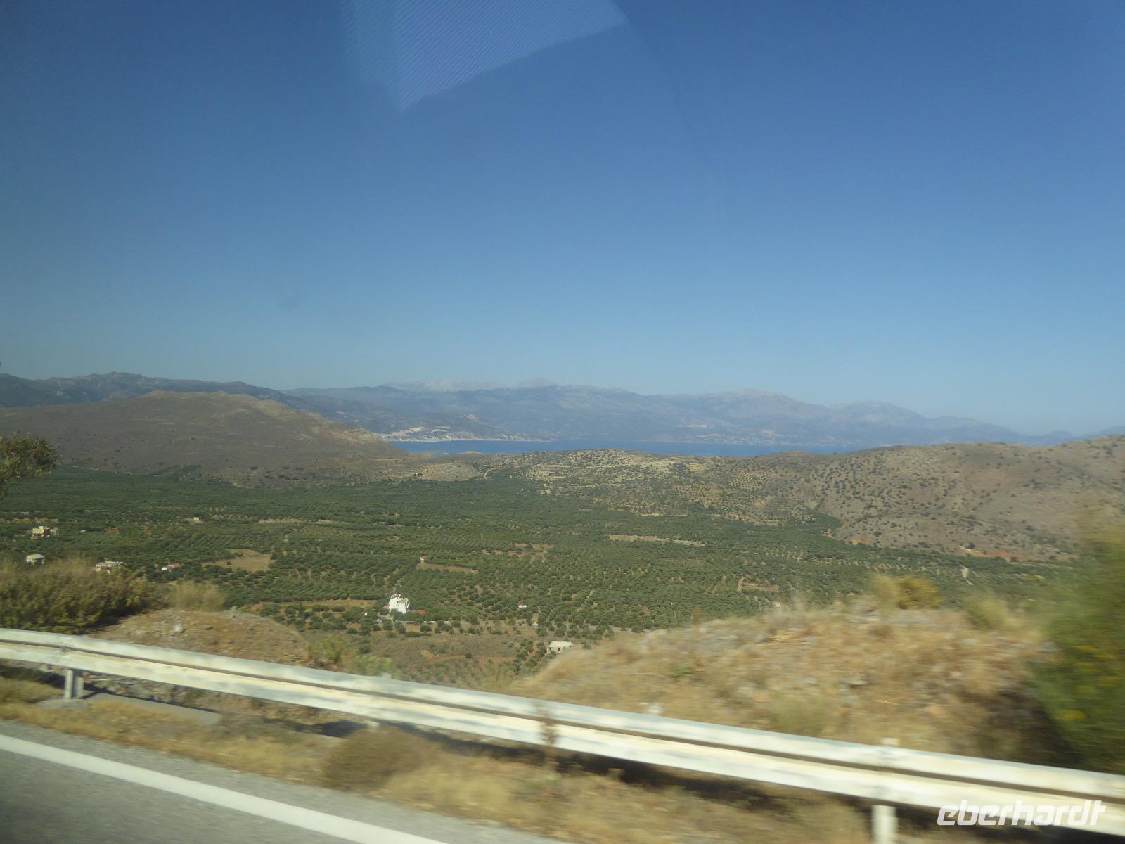 Den ersten Fotostopp legen wir bei Gournia ein. Hierbei handelt es sich um eine der am vollständigsten freigelegten Siedlungskomplexe der minoischen Epoche. Die Ausgrabungen fanden zu Beginn des 20. Jahrhunderts statt. Details sind für uns nicht wirklich zu erkennen, dafür sind wir zu weit weg. Im schönen Urlauberort Sitia unternehmen wir einen kleinen Spaziergang bevor wir zum Kloster Toplou fahren. Das Kloster wurde in seiner Geschichte mehrmals zerstört, aber immer wieder aufgebaut. Eine Windmühle im Garten zeugt davon, dass die Mönche einst Selbstversorger waren. Im Innern des Klosters befindet sich eine bewunderswert schöne Ikone, auf der in Miniaturbildern die religiösen Gdeschichten dargestellt sind.