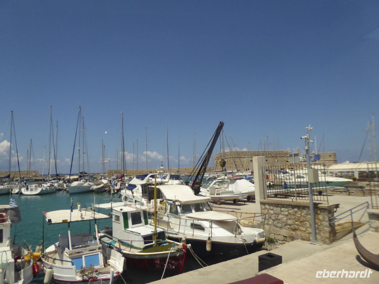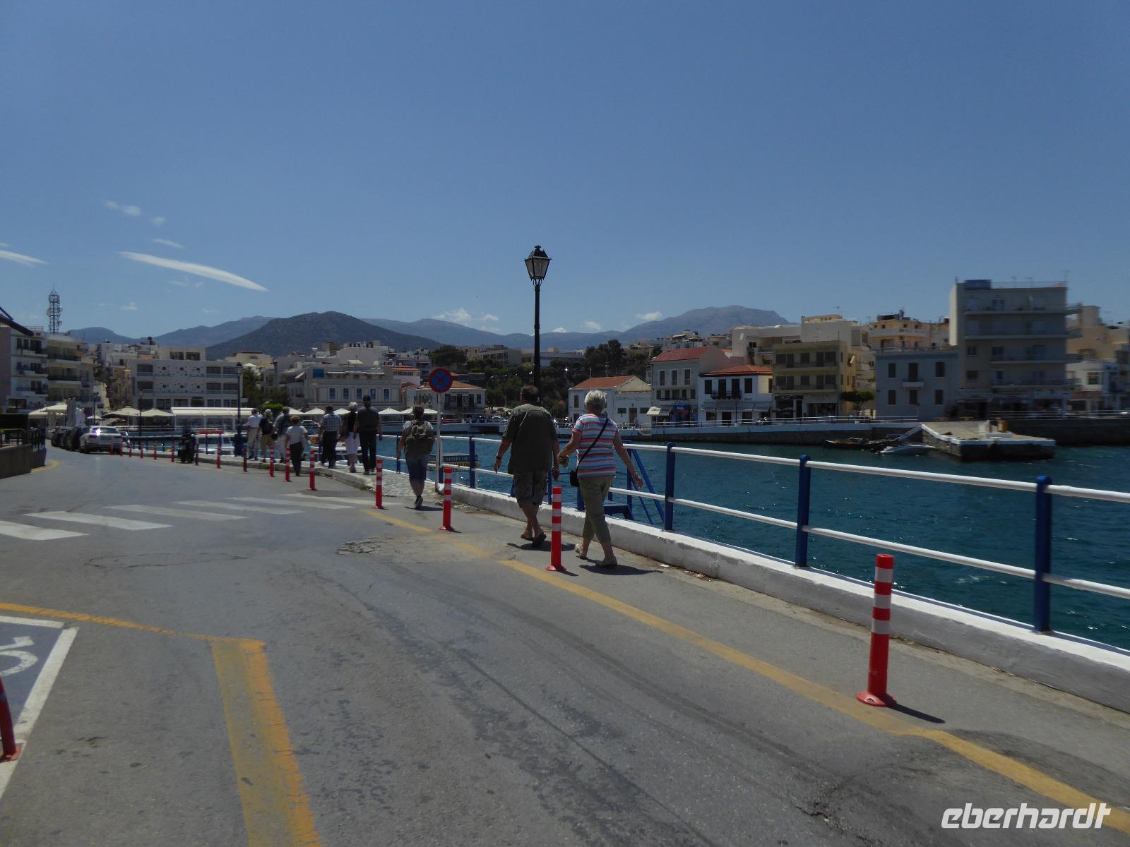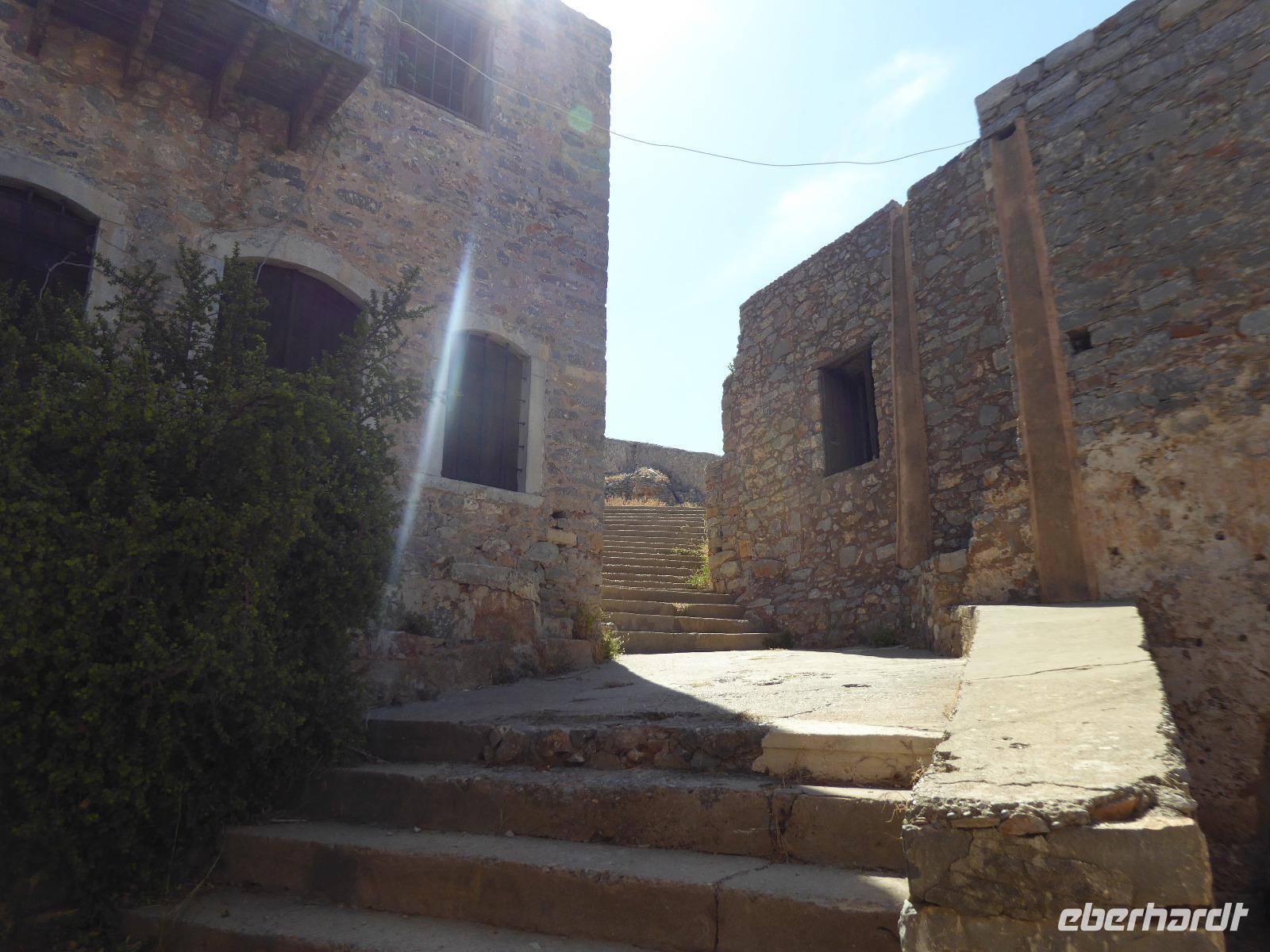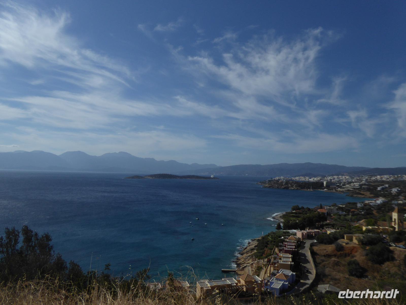 Heute ist Freizeit angesagt. Alternativ besteht die Möglichkeit, an einem Ausflug teilzunehmen. Mit unserem Reisebus fahren wir nach Elounda, wo wir gemeinsam mit einer anderen Eberhardt Reisegruppe ein Boot besteigen, dass uns in zwanzig Minuten auf die Insel Spinalonga bringt. Auf Spinalonga besichtigen wir die antike Festung der Venezianer aus dem 16. Jahrhundert. Gut erhalten sind die Zisternen, das Wachgebäude und die Agios-Nikolaos-Kirche. Pikant wird die Geschichte des Kastells, weil es über fünfzig Jahre als Unterbringung für Lepra-Kranke genutzt wurde. Diese armen kranken Menschen wurden auf Spinalonga isoliert festgehalten, um die Bevölkerung vor Ansteckung zu schützen. Heutzutage besuchen bis zu einer halben Million Menschen die kleine Insel. Zum Mittagessen kehren wir zurück aufs Festland und in Elounda in eine Taverne ein. Unser Reiseveranstalter Eberhardt TRAVEL lädt uns ein, die Köstlichkeiten der kretischen Küche zu verkosten. Es gibt griechischen Salat, Feta-Käse, Tsatsiki, gefüllte Weinlätter, eine eigenwillige Art von Omelett und natürlich griechischen Hauswein und zum Schluss einen Walnuss-Likör. Yamas!