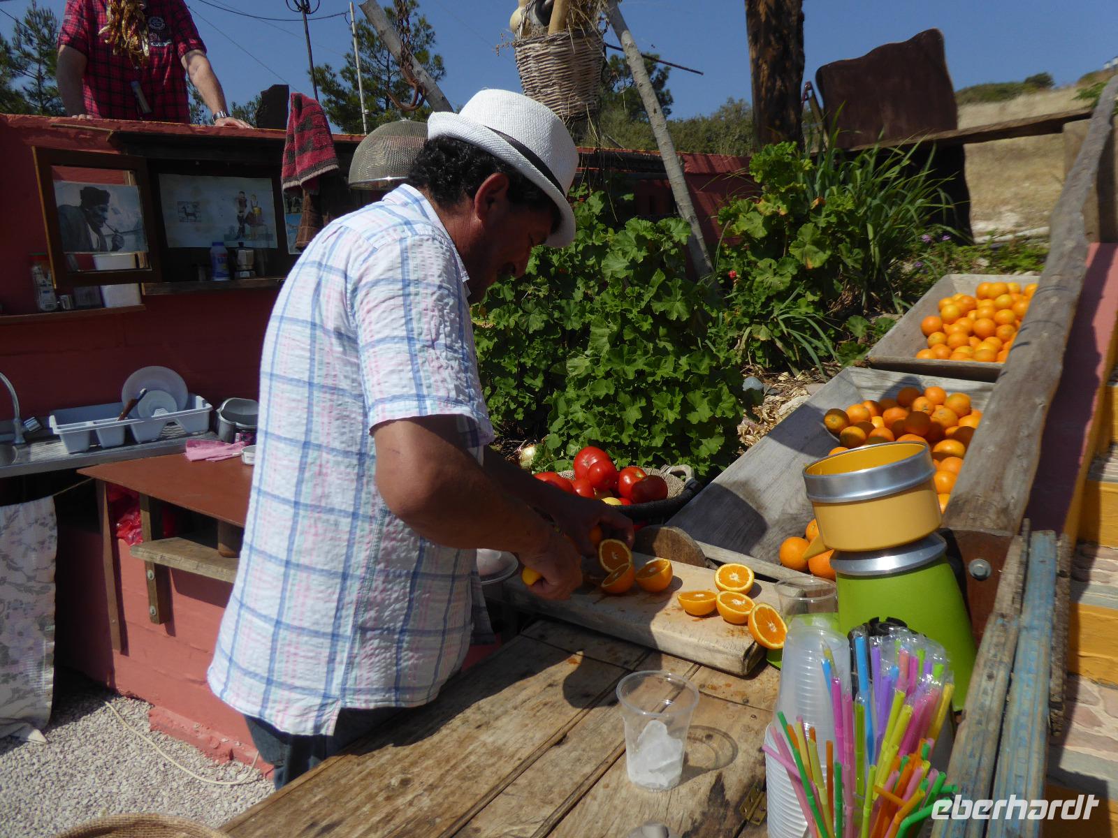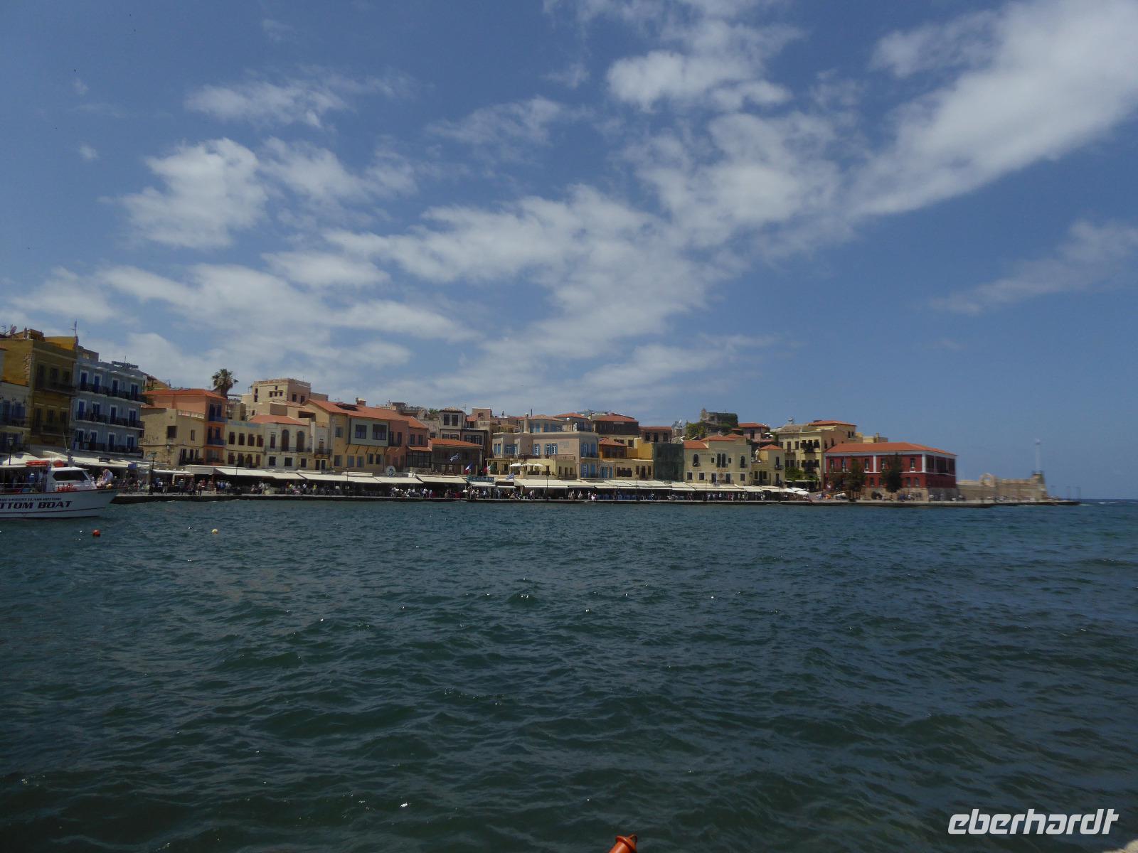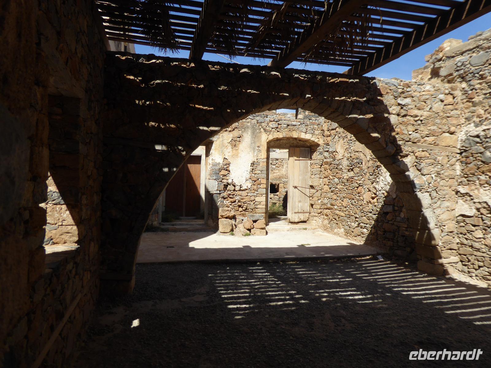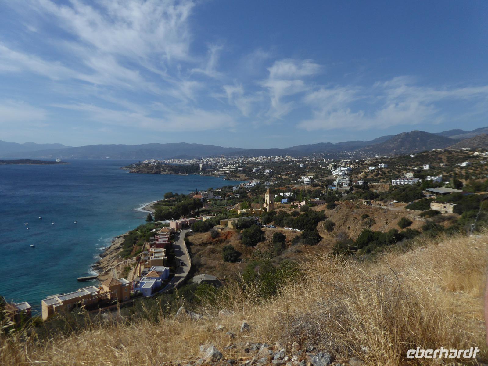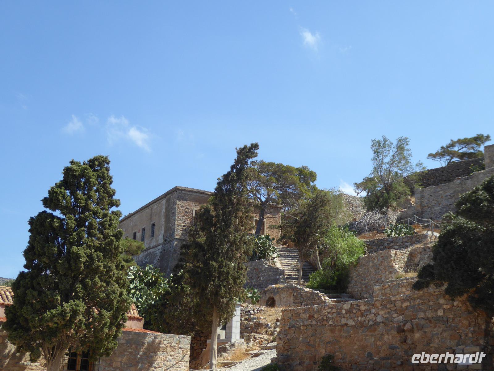 Heute ist Freizeit angesagt. Alternativ besteht die Möglichkeit, an einem Ausflug teilzunehmen. Mit unserem Reisebus fahren wir nach Elounda, wo wir gemeinsam mit einer anderen Eberhardt Reisegruppe ein Boot besteigen, dass uns in zwanzig Minuten auf die Insel Spinalonga bringt. Auf Spinalonga besichtigen wir die antike Festung der Venezianer aus dem 16. Jahrhundert. Gut erhalten sind die Zisternen, das Wachgebäude und die Agios-Nikolaos-Kirche. Pikant wird die Geschichte des Kastells, weil es über fünfzig Jahre als Unterbringung für Lepra-Kranke genutzt wurde. Diese armen kranken Menschen wurden auf Spinalonga isoliert festgehalten, um die Bevölkerung vor Ansteckung zu schützen. Heutzutage besuchen bis zu einer halben Million Menschen die kleine Insel. Zum Mittagessen kehren wir zurück aufs Festland und in Elounda in eine Taverne ein. Unser Reiseveranstalter Eberhardt TRAVEL lädt uns ein, die Köstlichkeiten der kretischen Küche zu verkosten. Es gibt griechischen Salat, Feta-Käse, Tsatsiki, gefüllte Weinlätter, eine eigenwillige Art von Omelett und natürlich griechischen Hauswein und zum Schluss einen Walnuss-Likör. Yamas!