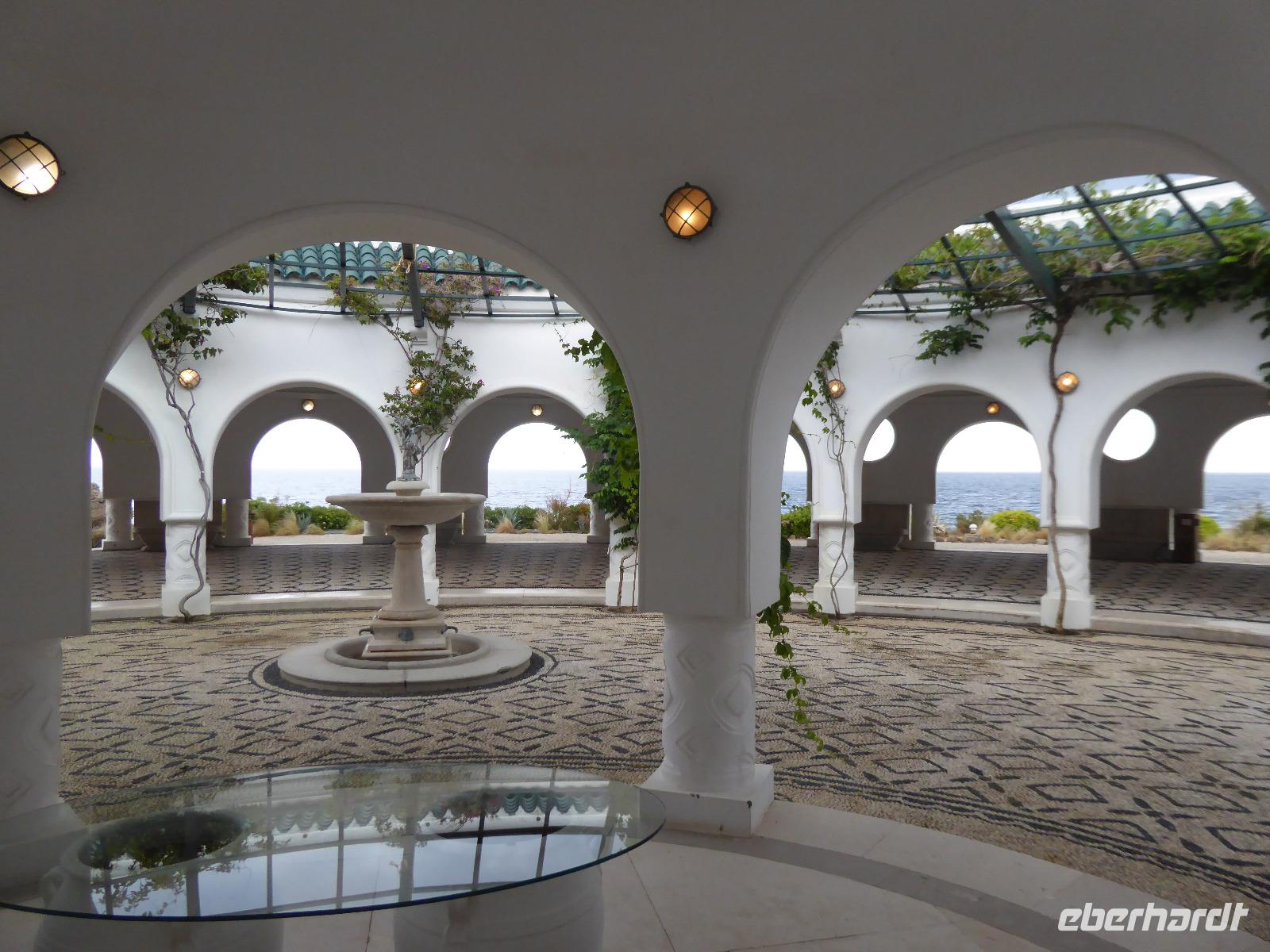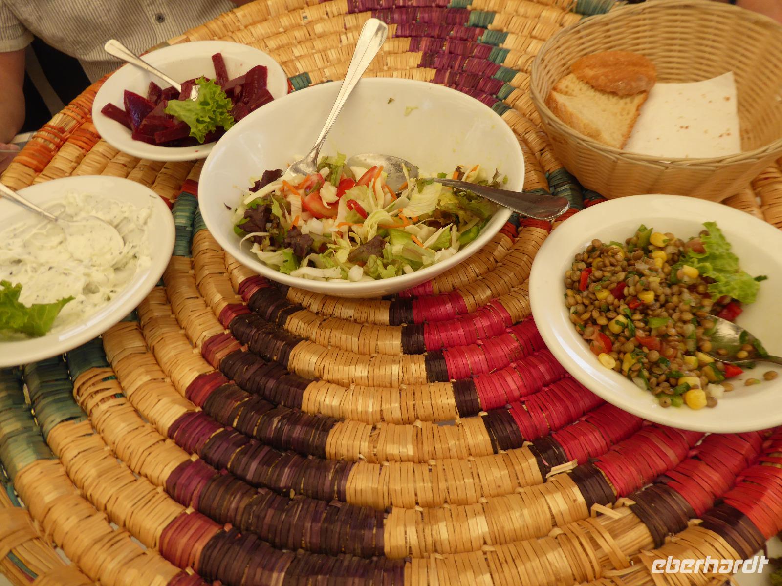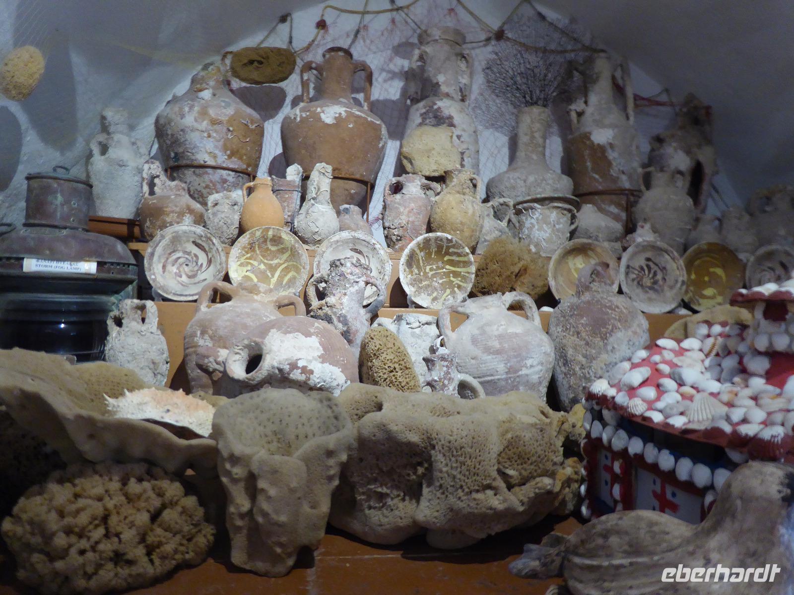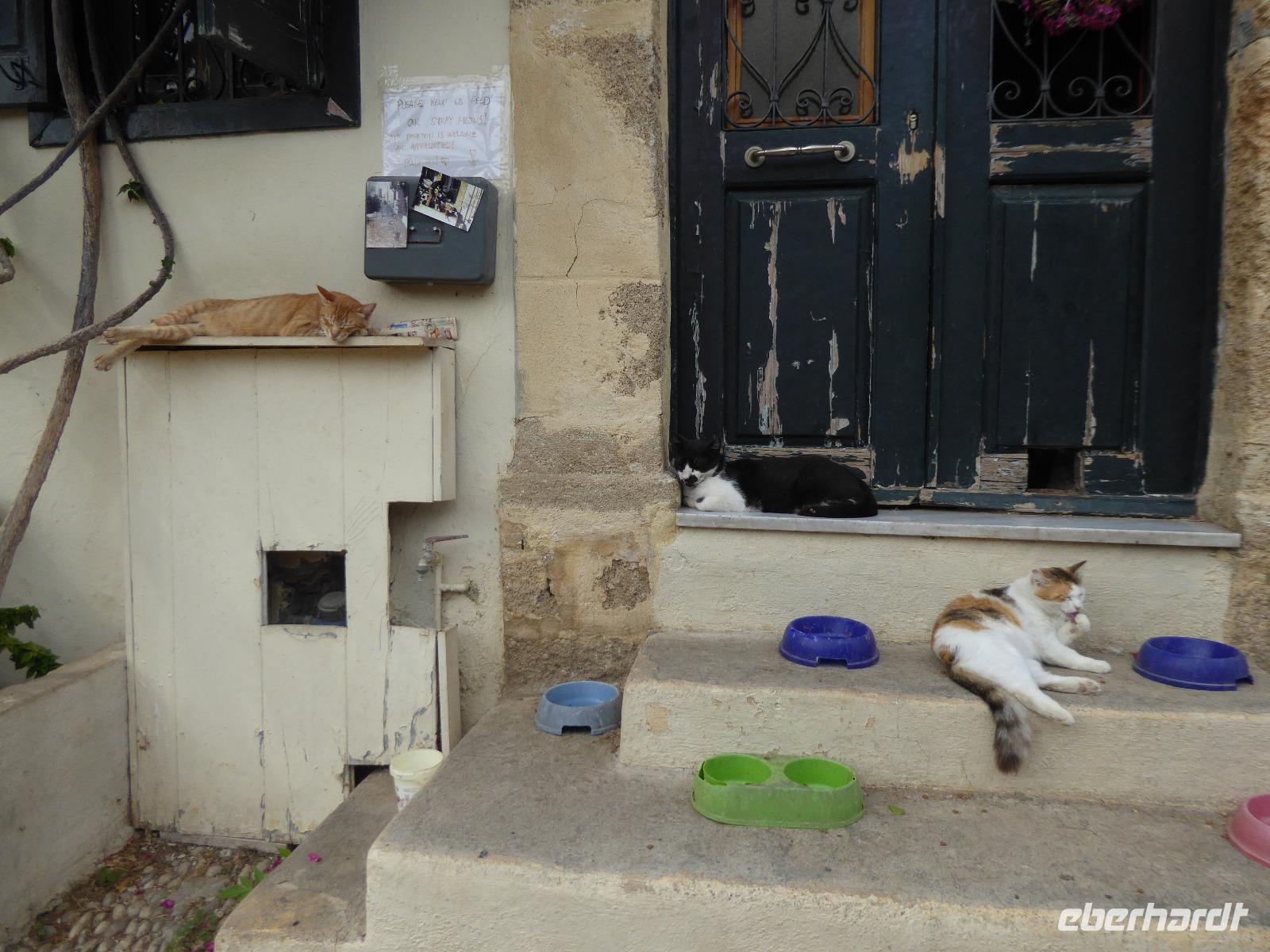 Heute ist Freizeit angesagt. Alternativ besteht die Möglichkeit, an einem Ausflug teilzunehmen. Mit unserem Reisebus fahren wir nach Elounda, wo wir gemeinsam mit einer anderen Eberhardt Reisegruppe ein Boot besteigen, dass uns in zwanzig Minuten auf die Insel Spinalonga bringt. Auf Spinalonga besichtigen wir die antike Festung der Venezianer aus dem 16. Jahrhundert. Gut erhalten sind die Zisternen, das Wachgebäude und die Agios-Nikolaos-Kirche. Pikant wird die Geschichte des Kastells, weil es über fünfzig Jahre als Unterbringung für Lepra-Kranke genutzt wurde. Diese armen kranken Menschen wurden auf Spinalonga isoliert festgehalten, um die Bevölkerung vor Ansteckung zu schützen. Heutzutage besuchen bis zu einer halben Million Menschen die kleine Insel. Zum Mittagessen kehren wir zurück aufs Festland und in Elounda in eine Taverne ein. Unser Reiseveranstalter Eberhardt TRAVEL lädt uns ein, die Köstlichkeiten der kretischen Küche zu verkosten. Es gibt griechischen Salat, Feta-Käse, Tsatsiki, gefüllte Weinlätter, eine eigenwillige Art von Omelett und natürlich griechischen Hauswein und zum Schluss einen Walnuss-Likör. Yamas!