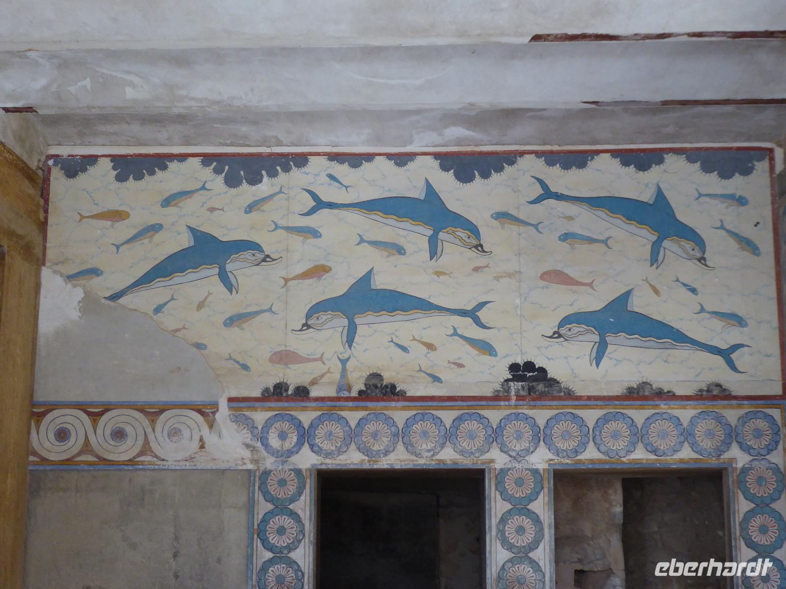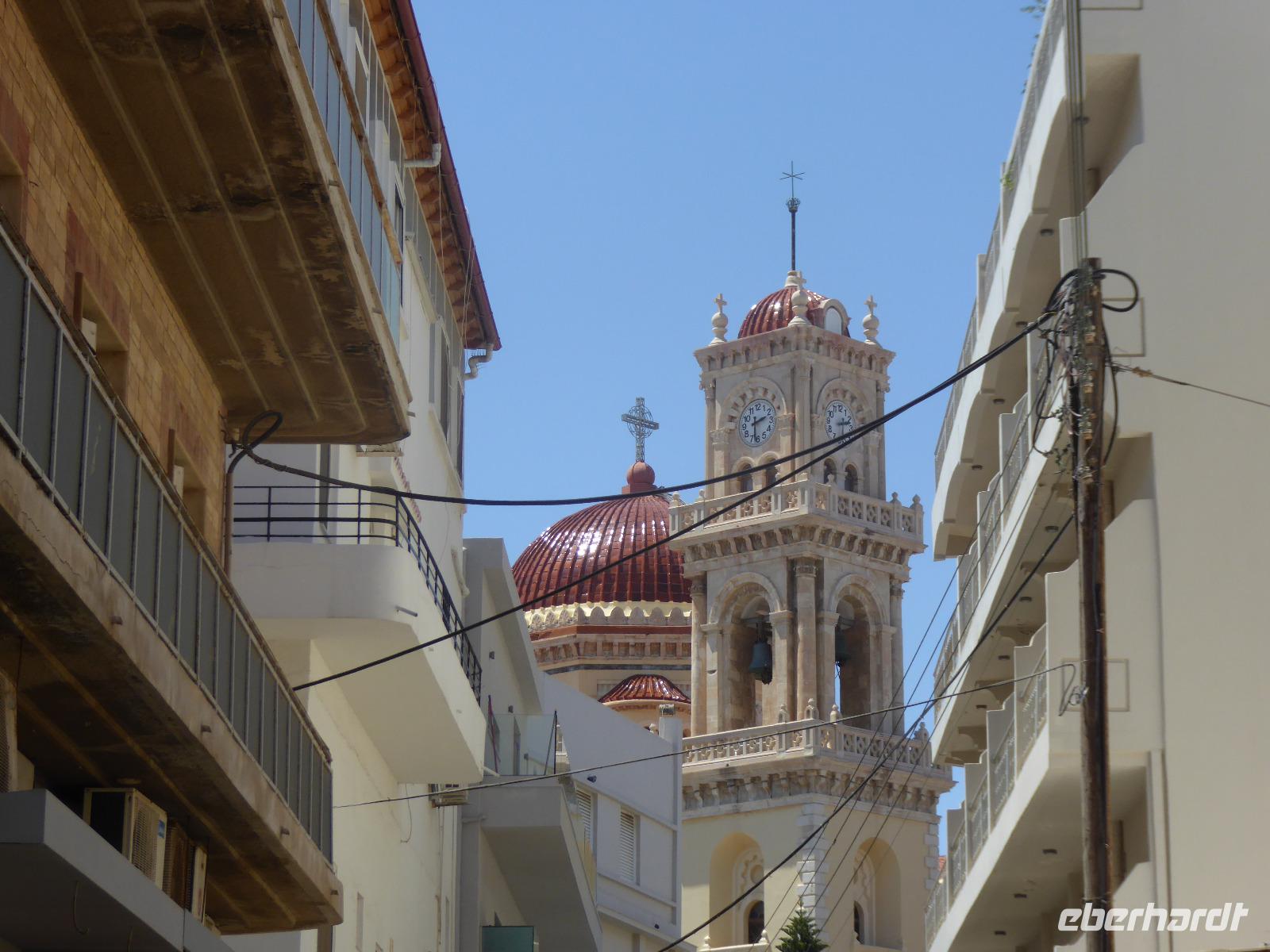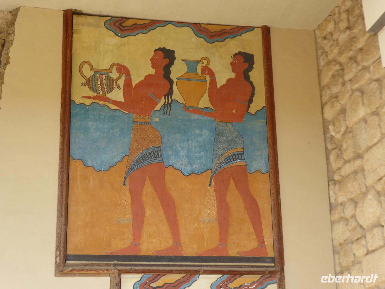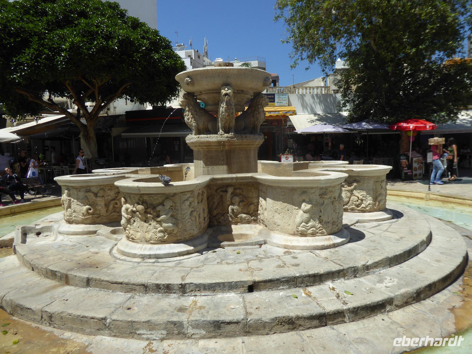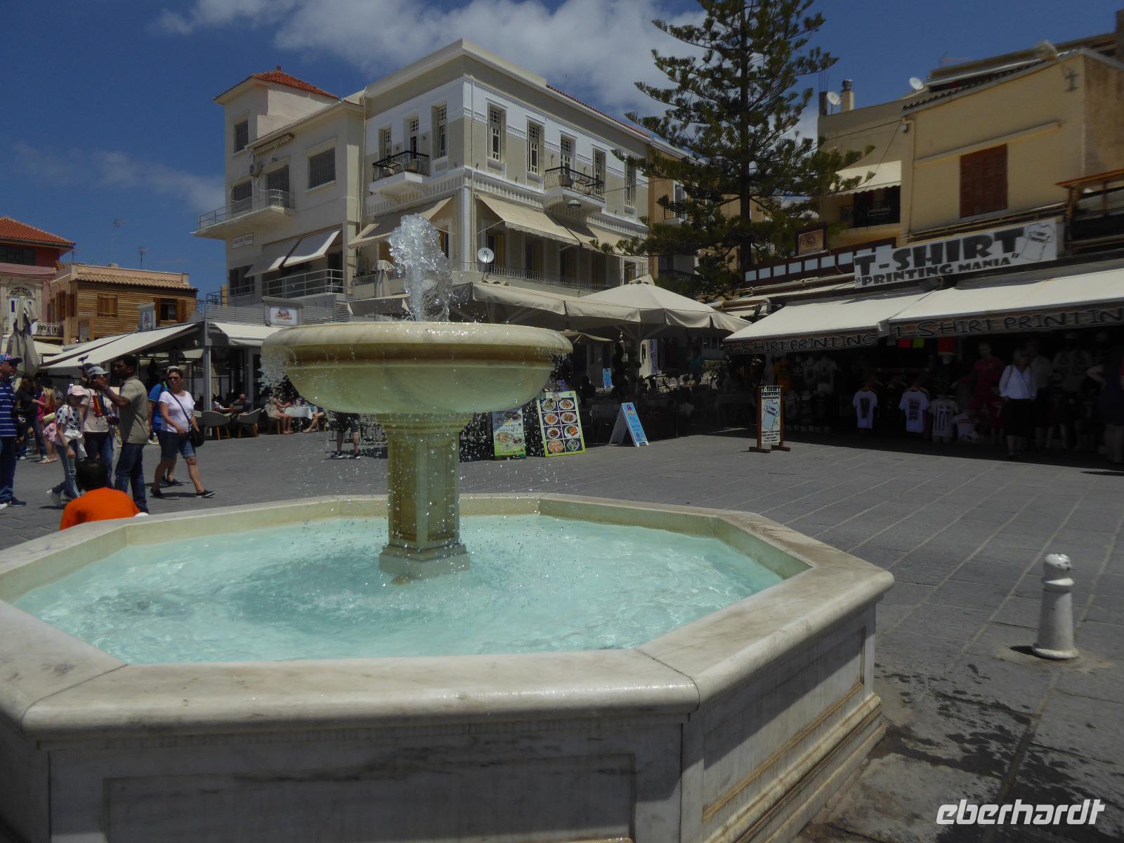 Der britische Archäologe Arthur Evans erwarb das Grundstück, auf dem sich der Palast von König Minos befindet, im Jahr 1900. Die ersten Funde stammen bereits von 1878 als Minos Kalikairinos den Westflügel entdeckte. Innerhalb von drei Jahren wurde dann ab 1900 das gesamte Gelände erforscht und freigelegt. Heute führt uns Roxani professionell durch das Gelände. Höhepunkt der Besichtigung ist der Besuch der Königlichen Villa. Die markanten roten Säulen sind auf jeder Postkarte zu sehen. Nach einem ganzen Vormittag mit Geschichte und Kultur steht uns nun der Sinn nach kulinarischen Genüssen. Wir fahren nach Peza und verkosten hier kretische Speisen und typische Weine, die diesmal eher trocken sind. Am Nachmittag besuchen wir Heraklion. Im Hafen liegen die großen Fährschiffe der Minoan Line und der Anek Line, die die griechische Inselwelt miteinander verbinden. Wir fahren vorbei an der venezianischen Stadtmauer, die einst fünf Tore hatte. Von diesen sind heute nur noch drei erhalten. Roxani führt uns durch die Gassen bis zum Löwenbrunnen. Er wird auch als Morosini-Brunnen bezeichnet, da ihn der Statthalter Francesco Morosini 1628 errichten ließ. Der Brunnen hat einen kreisförmigen Marmorboden mit acht Ausbuchtungen. Das Wasser, dass aus vier Löwenmäulern floss wurde damals mit Gefäßen aus dem Brunnen geschöpft, Wasserhähne gab es nicht. Wir spazieren weiter bis zur Loggia. Dieses Gebäude wurde für Versammlungen der Stadtväter genutzt und dient uns als Orientierung, um den Bus wiederzufinden. Weiter geht es bis zur Kirche Agios Titos, die zeitweise als Moschee diente, was man ihr noch heute äußerlich ansieht. Wer will, kann nun noch die dreischiffige Basilika Agios Markos besichtigen oder sich die Zeit mit Shoppen oder Kaffee trinken vertreiben. Zum Abendessen kehren wir zurück ins Hotel.