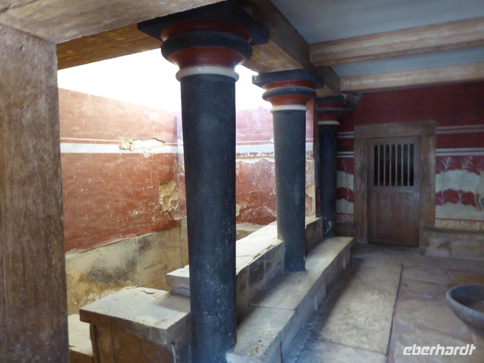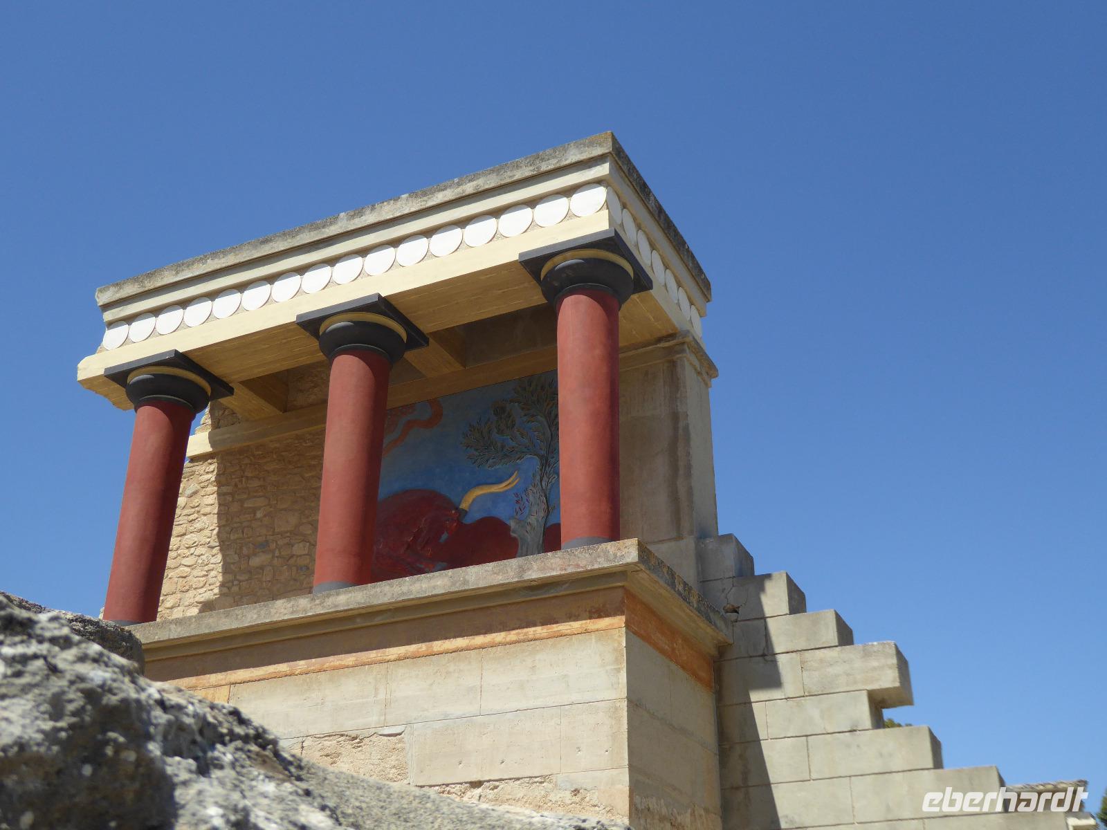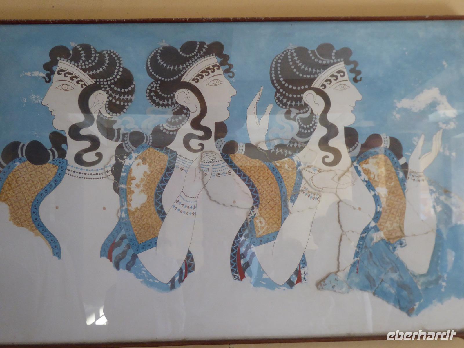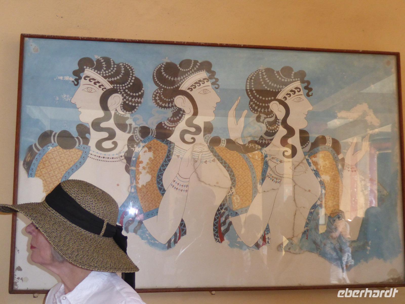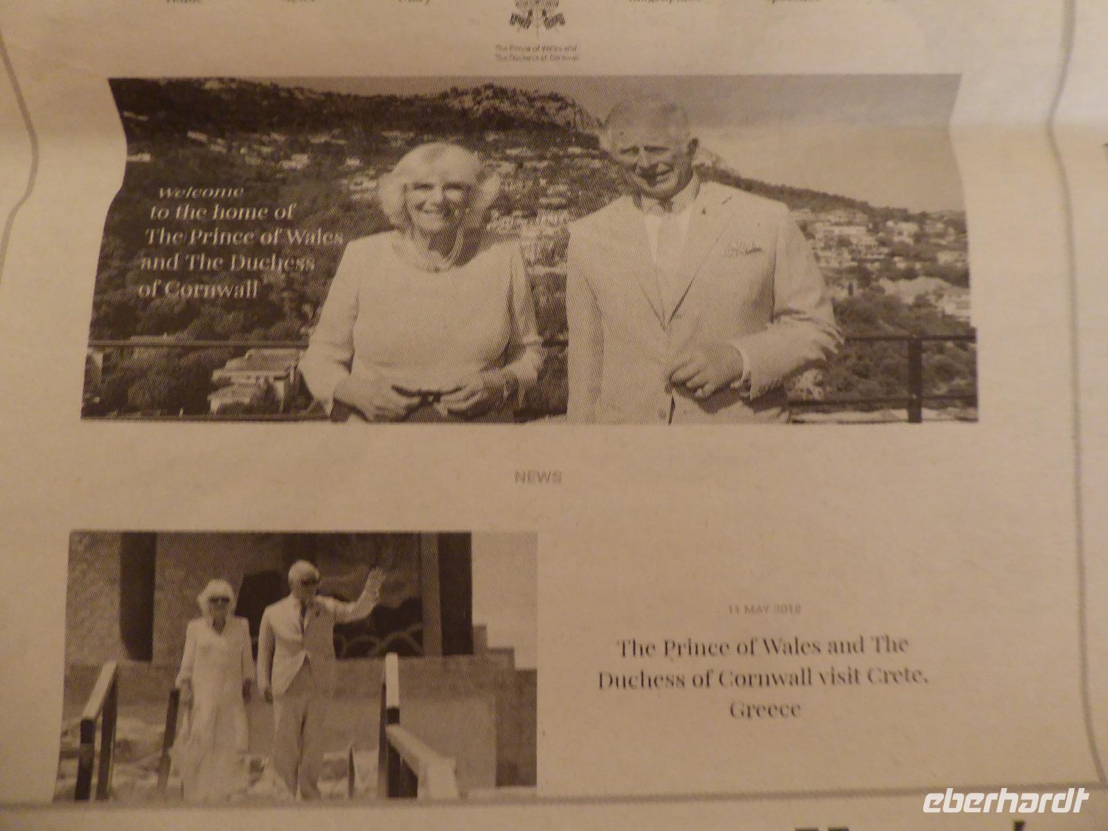 Im Mittelpunkt der heutigen Besichtigung steht, wie sollte es anders sein, die berühmteste Sehenswürdigkeit Kretas, die Ausgrabungsstätte Knossos. Außer uns, werden hier heute noch besondere Gäste erwartet. Prinz Charles und seine Frau Camilla besuchen Kreta und am heutigen Vormittag Knossos. Deshalb müssen wir etwas früher los, aber außer, dass wir ein paar Fotografen am Ausgang sehen, ist alles normal, kein Chi Chi.