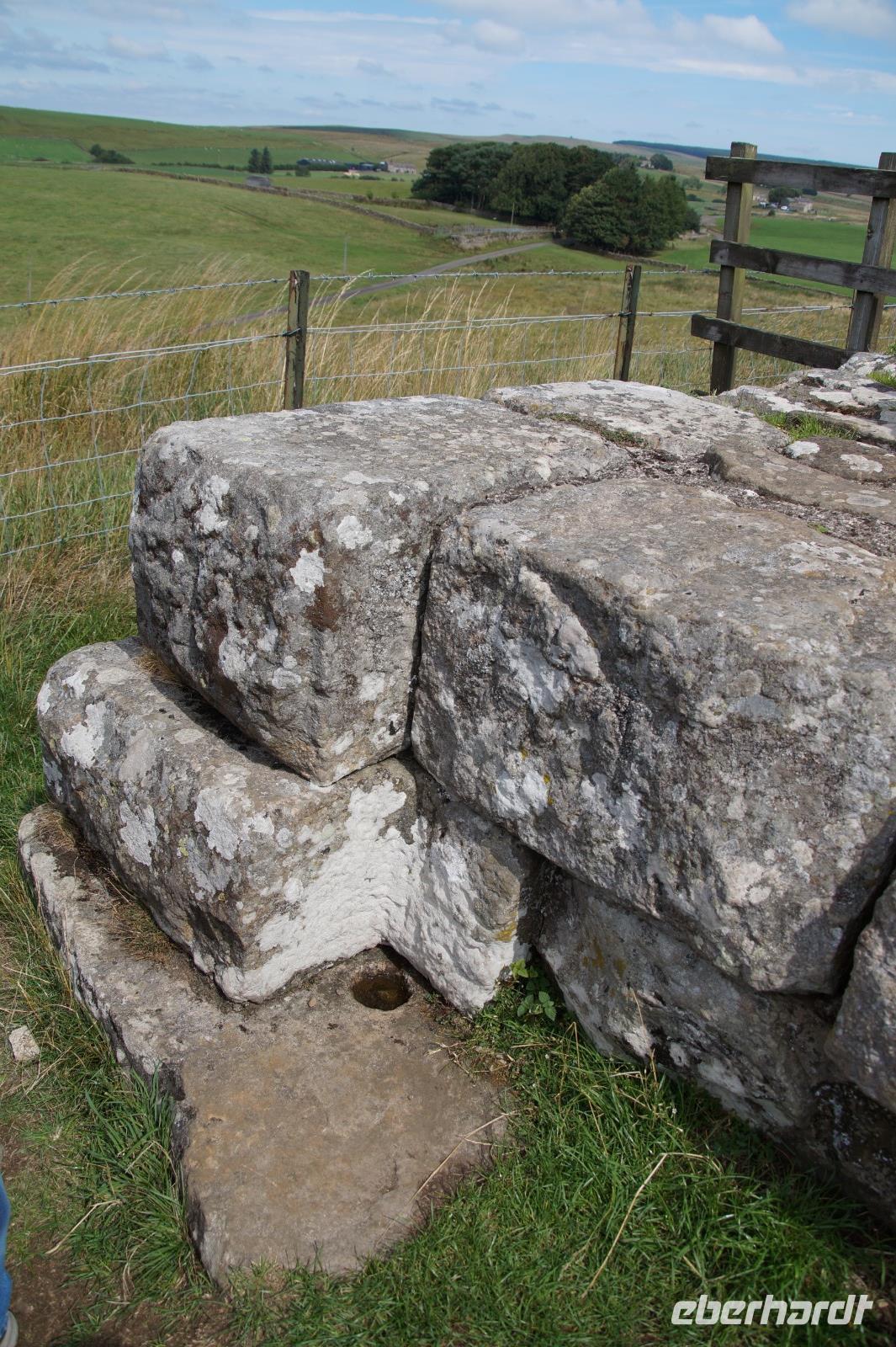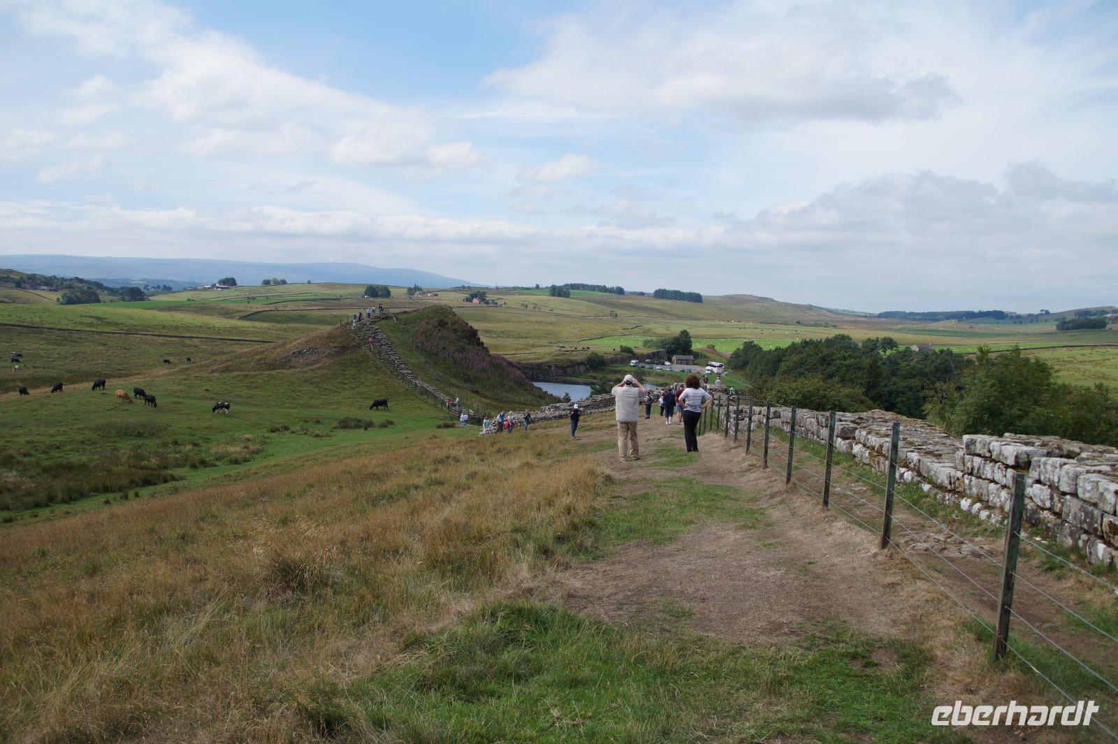 In Newcastle angekommen, begaben wir uns zunächst auf den Weg in Richtung des Hadrianswalls. Am Cawfield Quarry (Cawfield-Steinbruch) stiegen wir aus und machten einen kurzen Spaziergang entlang des auf dem Whin Sill, einer Basaltformation, liegenden Hadrianswall, wobei wir auch das Meilenkastell 42 passierten. Hier konnten wir sogar noch die Wiederlager der Tore erkennen, welche den Weg in den Norden - sei es für Patroullien, sei es für Händler - frei machten.