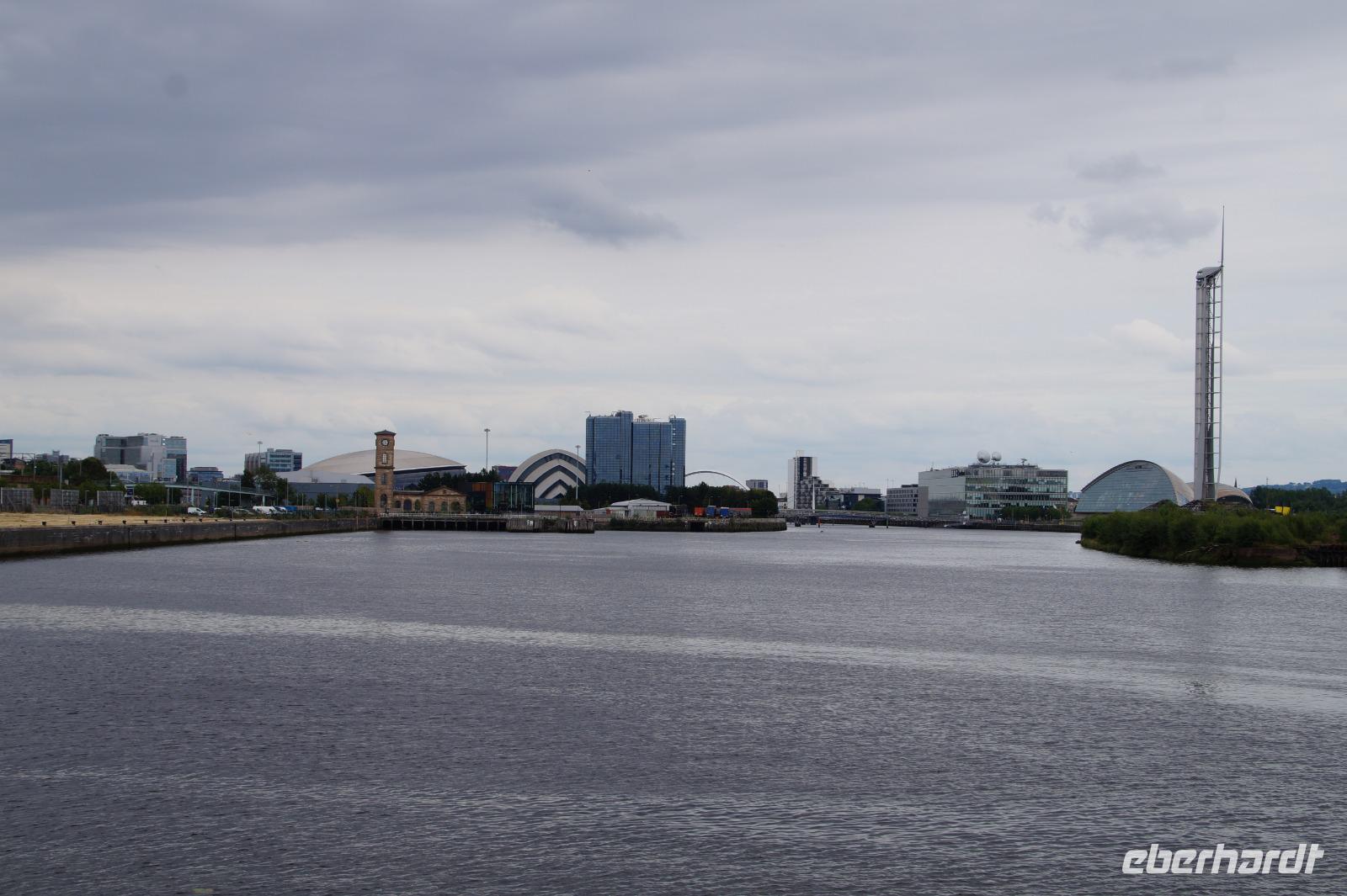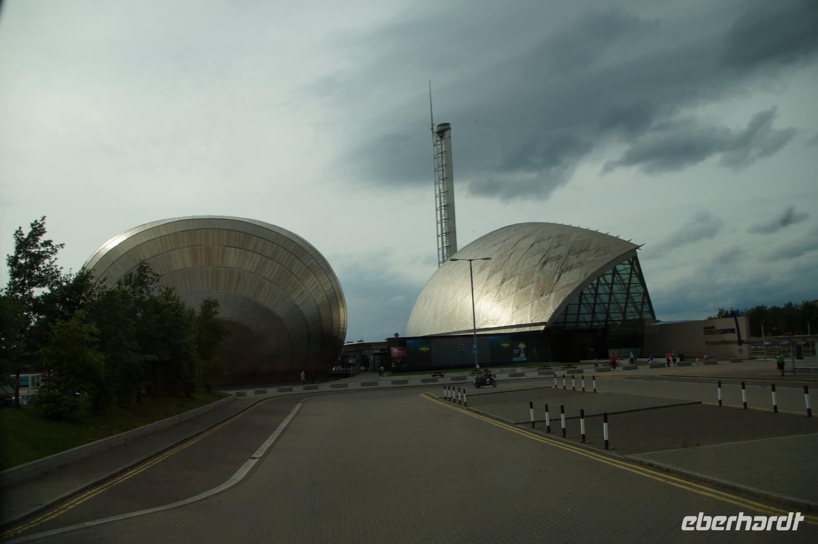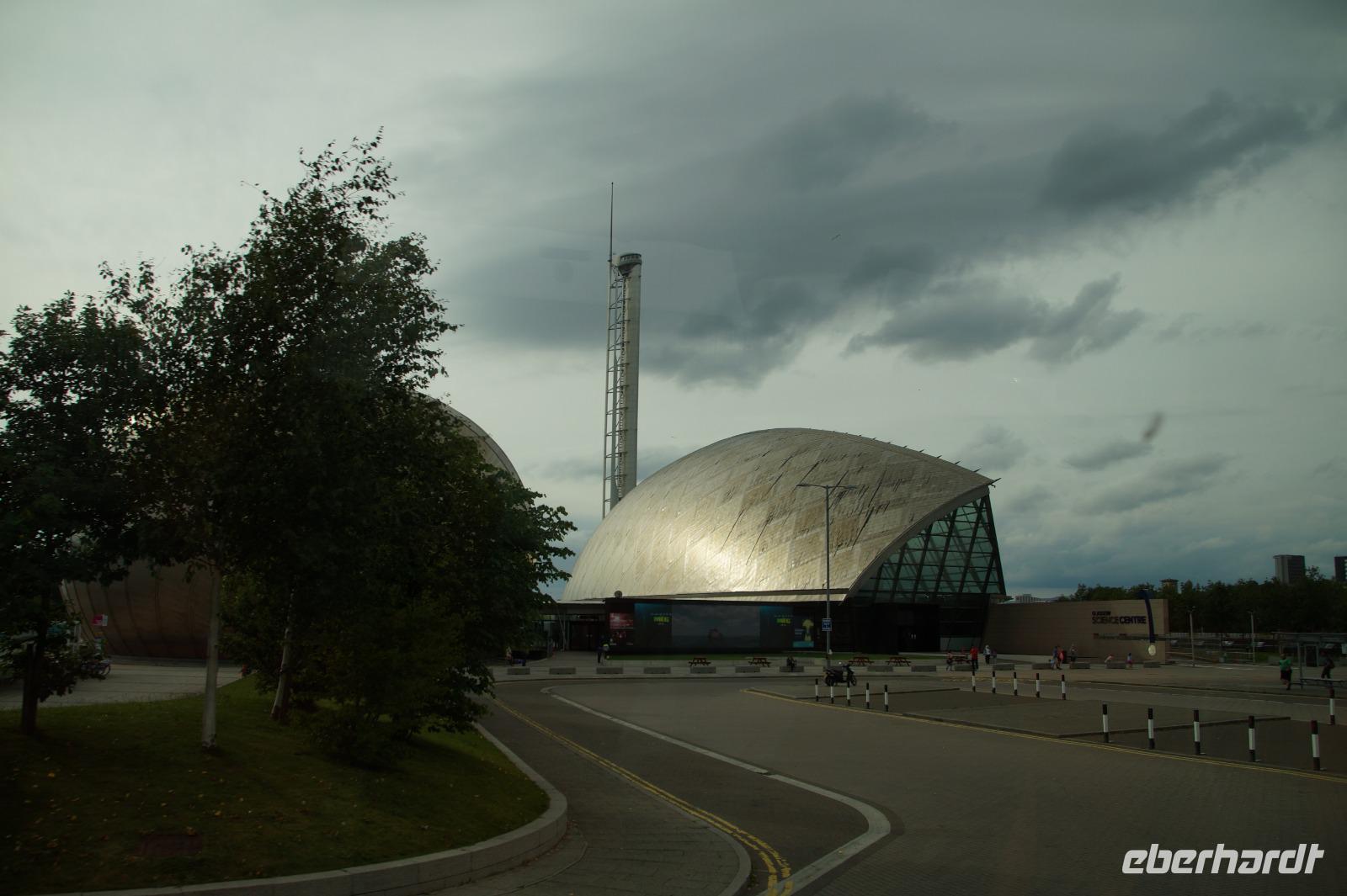 Wir steuerten Glasgow, den "beliebten grünen Platz", an und dort zu allererst die Kentignern bzw. Mungo-Kathedrale, wo wir uns mit Brigitte trafen, die uns die Kathedrale und das Wappen Glasgows, welches sich auf Episoden aus dem Leben des Heiligen Mungo/Kentigern bezieht, erklärte. Anschließend besuchten wir die Necropolis, einen Friedhof, der mit einer Statue von Schottlands presbyterianischen Reformator John "Killjoy" ('Freudenkiller') Knox "gekrönt" ist. Im Bus ging es dann weiter in Richtung des Hafens von Glasgow - an den Clyde, wo das Gütesiegel "clydebuilt" ('am Clyde hergestellt') geprägt wurde. Aufgrund der European Championships (wir bekamen einen Teil des Radrennens der Frauen mit) war die Innenstadt heute gesperrt und wir wichen auf das Hafengebiet aus, sahen die Architektur von Kongress- (The Clyde Auditorium/Armadillo und SSE Hydro) und Wissenschaftszentrum (Glasgow Science Center) sowie des Glasgow Museum of Transport. Anschließend bezogen wir unser im brutalistischen Stil errichtetes Hotel in Erskine, in Sichtweite der Erskine Bridge über den Clye, gewissermaßen an der Grenze zu den Highlands.