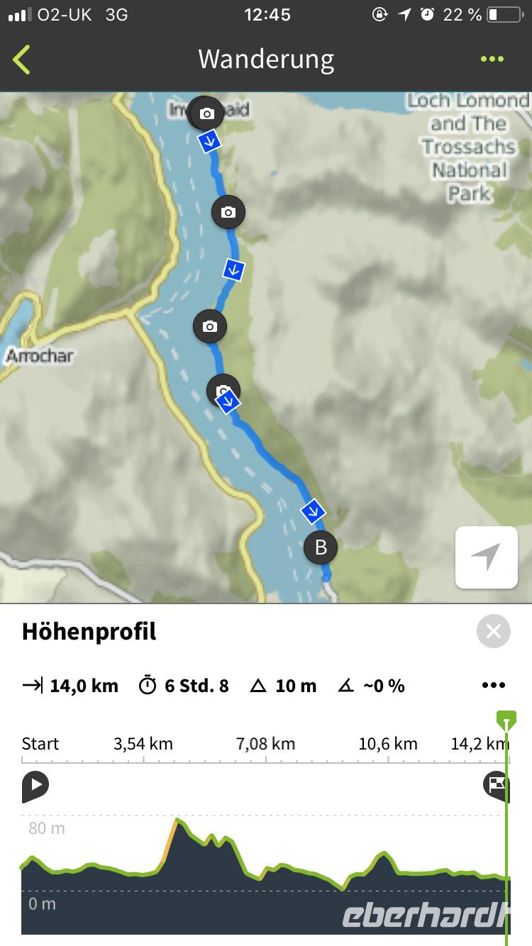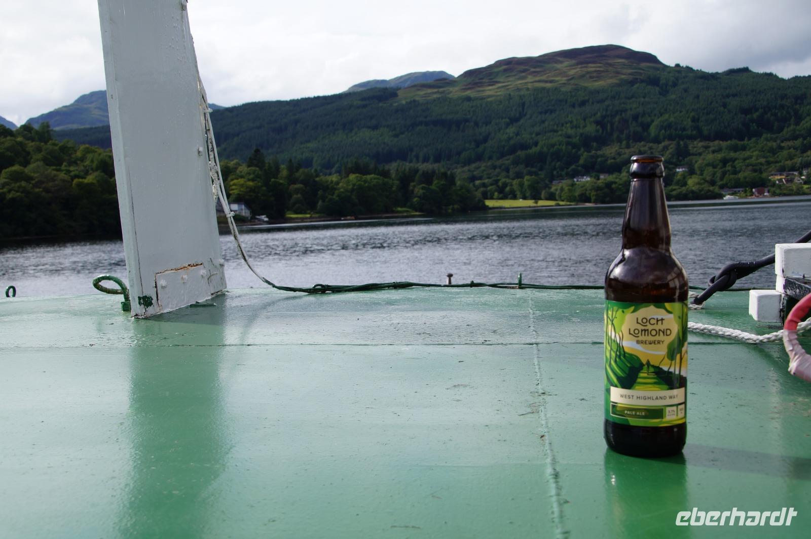 An der Rowardennan Lodge nahmen wir das Boot zurück nach Tarbet, wo Jan und der Bus auf uns warteten. Während der Bootsfahrt hatten wir etwas Gelegenheit, uns von der gut sechsstündigen Wanderung bei einem Bier, Wein oder einer Limonade etwas zu erholen. Wir hatten es uns auch verdient, denn gut vierzehn Kilometer hatten wir hinter uns gebracht.