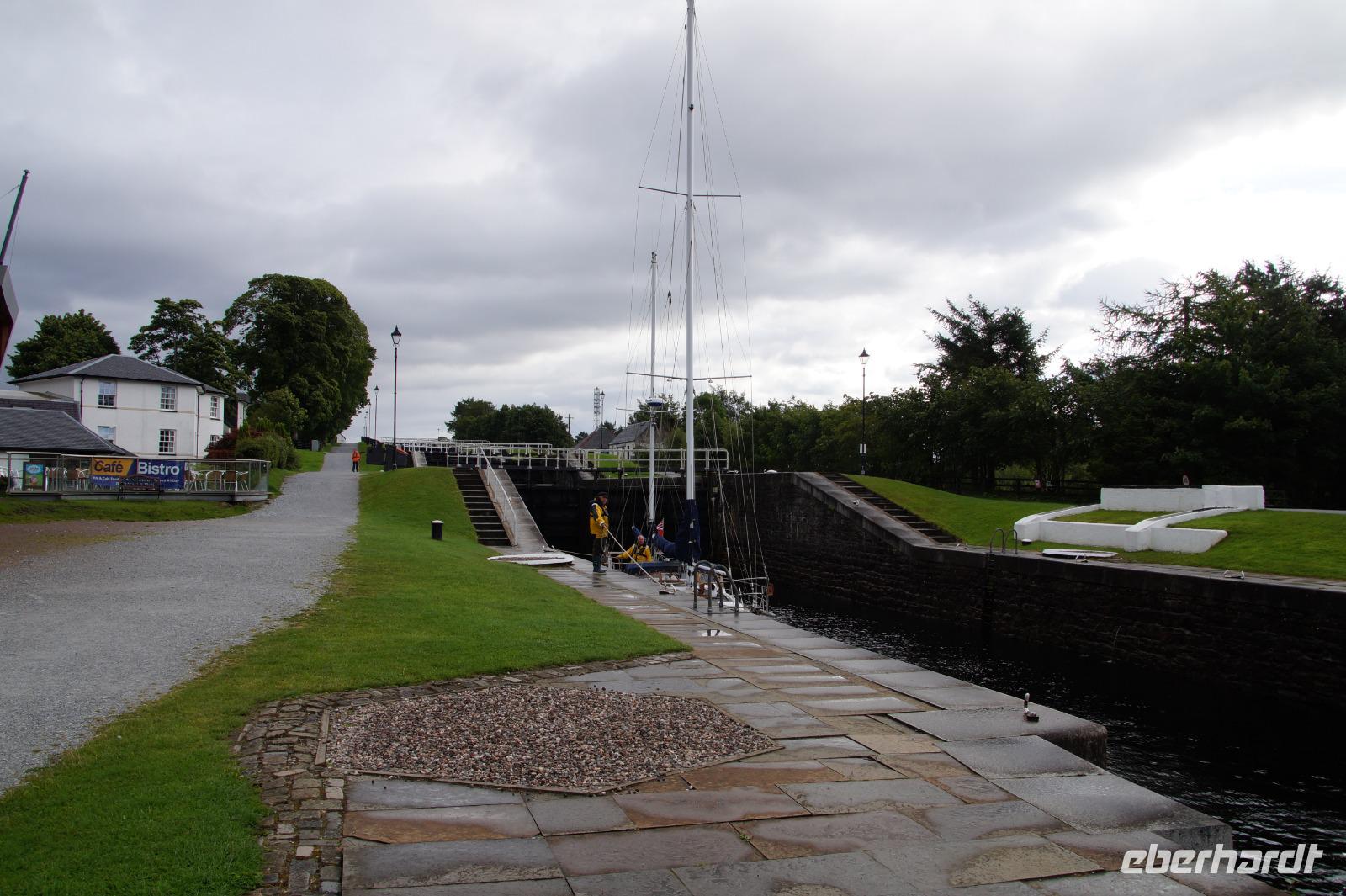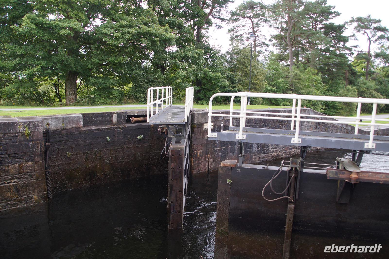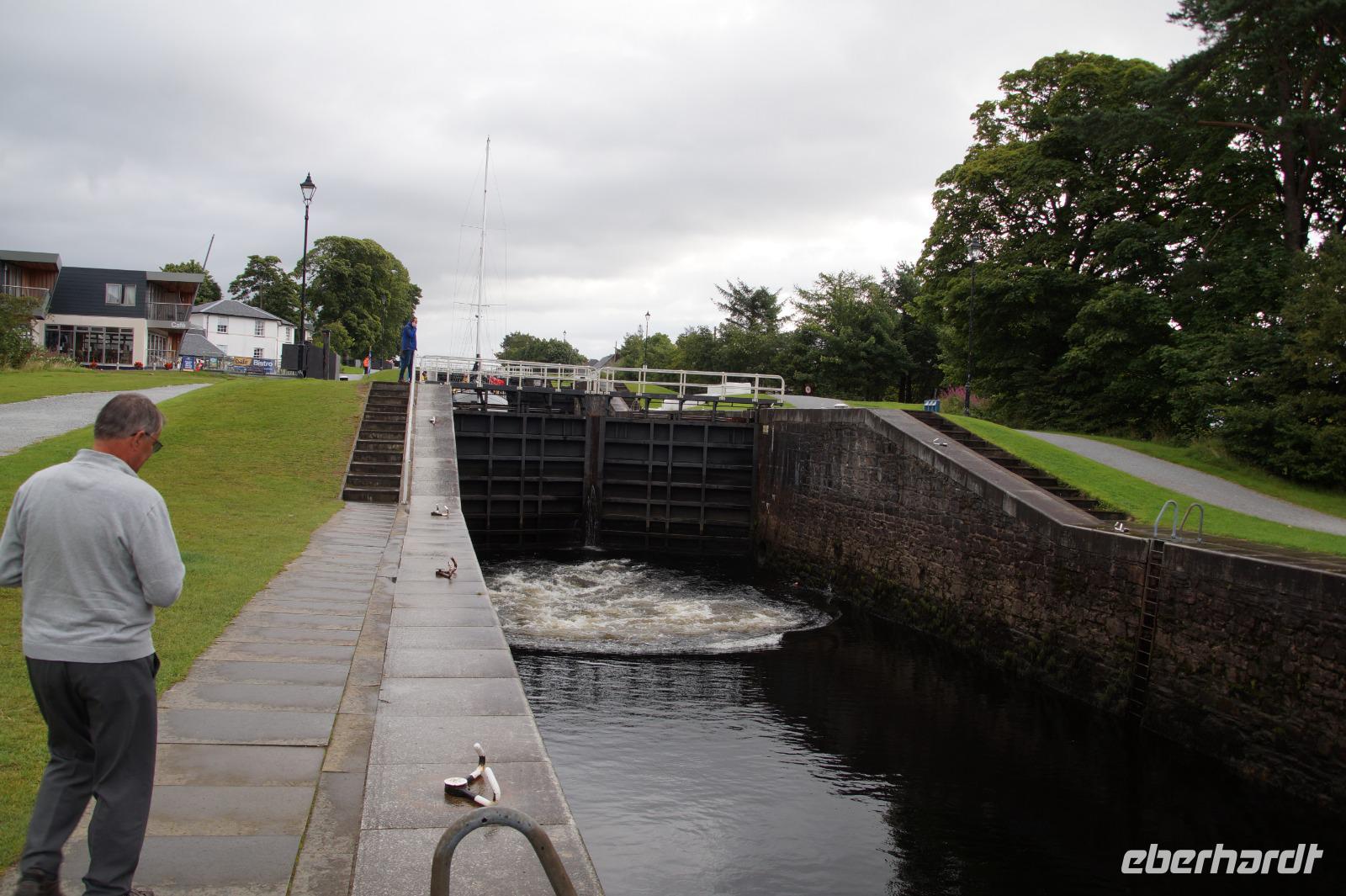 Wir begannen den Morgen mit einem Besuch bei Neptun's Staircase (offizieller Name Banavie Locks), einer Schleusentreppe, welche die Schiffe zwischen Loch Lochy und Loch Linnhe auf Seen- bzw. umgekehrt wieder auf Meeresspiegelniveau herabbringt. Dort begegneten wir - ganz zufällig - einer anderen Eberhardt-Gruppe vom Reiseleiterkollegen Konrad Füssel. Während diese in Richtung der Hebriden weiterfuhr, folgten wir der oben beschriebenen tektonischen Verwerfung in Richtung Loch Ness und Urquhardt Castle.