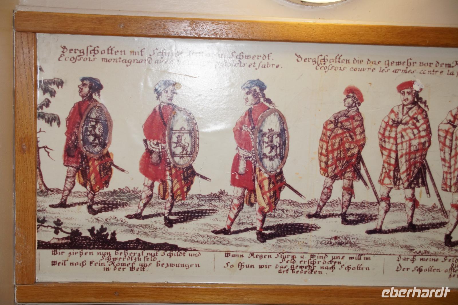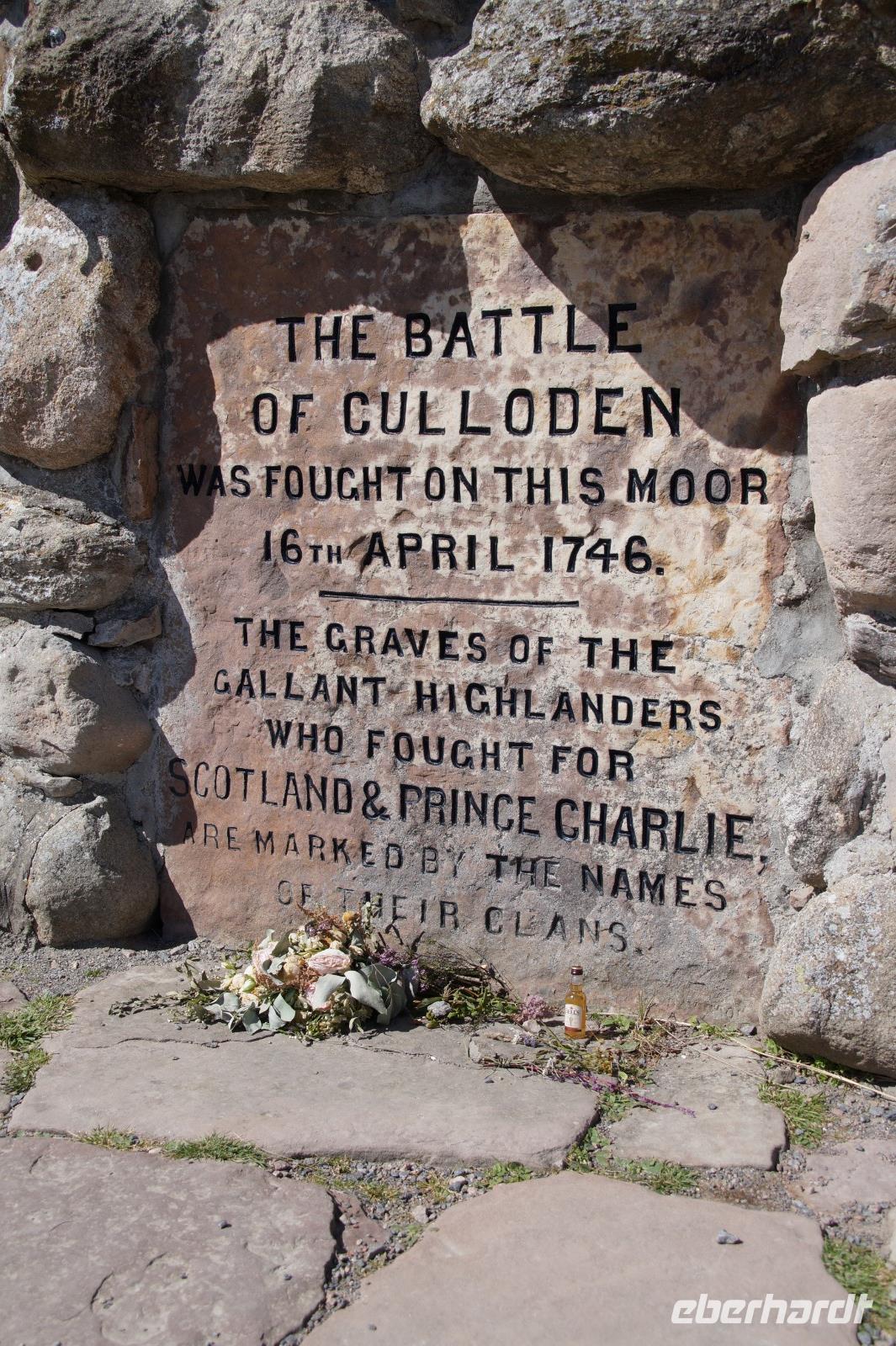 Das Schlachtfeld von Culodden ("Klodden") war unser nächster Haltepunkt. Hier erlebten die aus England zurückgekehrten, völlig übermüdeten und ausgehungerten Jakobiten eine verheerende Niederlage gegen Prinz Wilhelm von Hannover, für die einen als Sweet William (Süßer Wilhelm) für die anderen, gerade wegen seiner Härte bei Culodden und der nachfolgenden Hatz auf die überlebenden Jakobiten - ja selbst unbeteiligte Zuschauer am Schlachtfeldrand sollen niedergemetzelt worden sein - als Butcher (Metzger) of Cumberland bekannt. Mit dieser Niederlage war die jakobitische Sache in Schottland beendet.