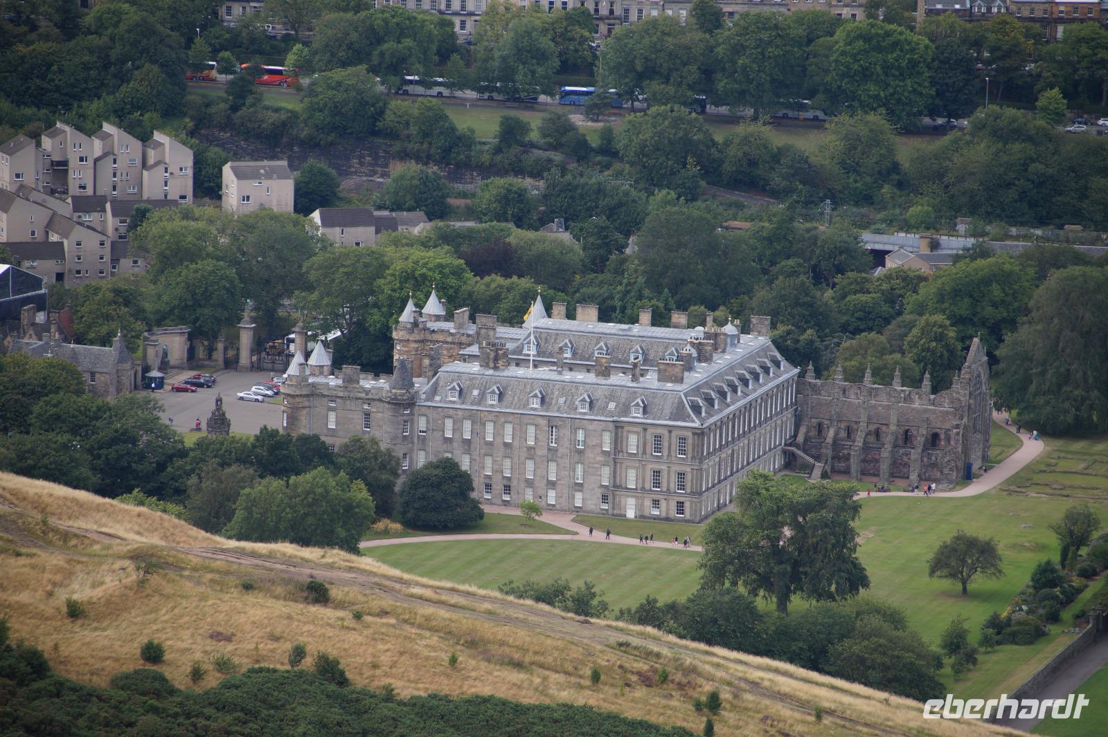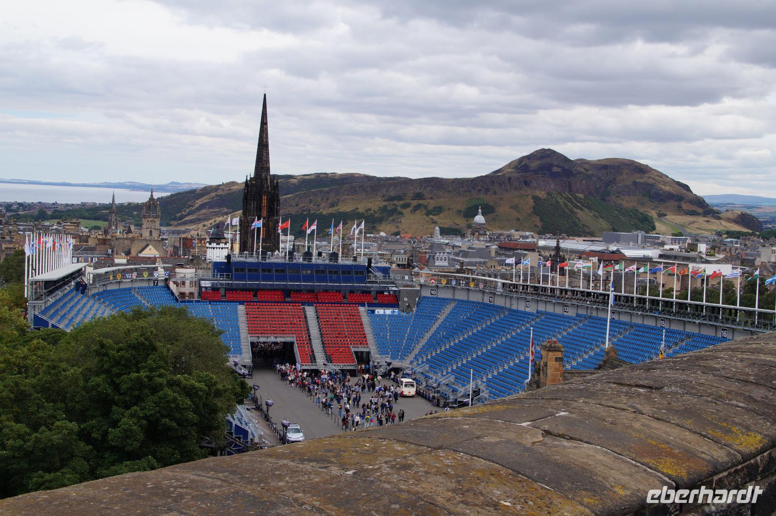 Von Arthur's Seat aus hatten wir einen tollen Blick auf die Stadt, dann mussten wir aber schleunigst zum Holyrood Palace, um dort unseren Bus und den Rest der Gruppe zu treffen, da wir ja am Abend noch eine Verabredung zum Royal Military Tattoo hatten.