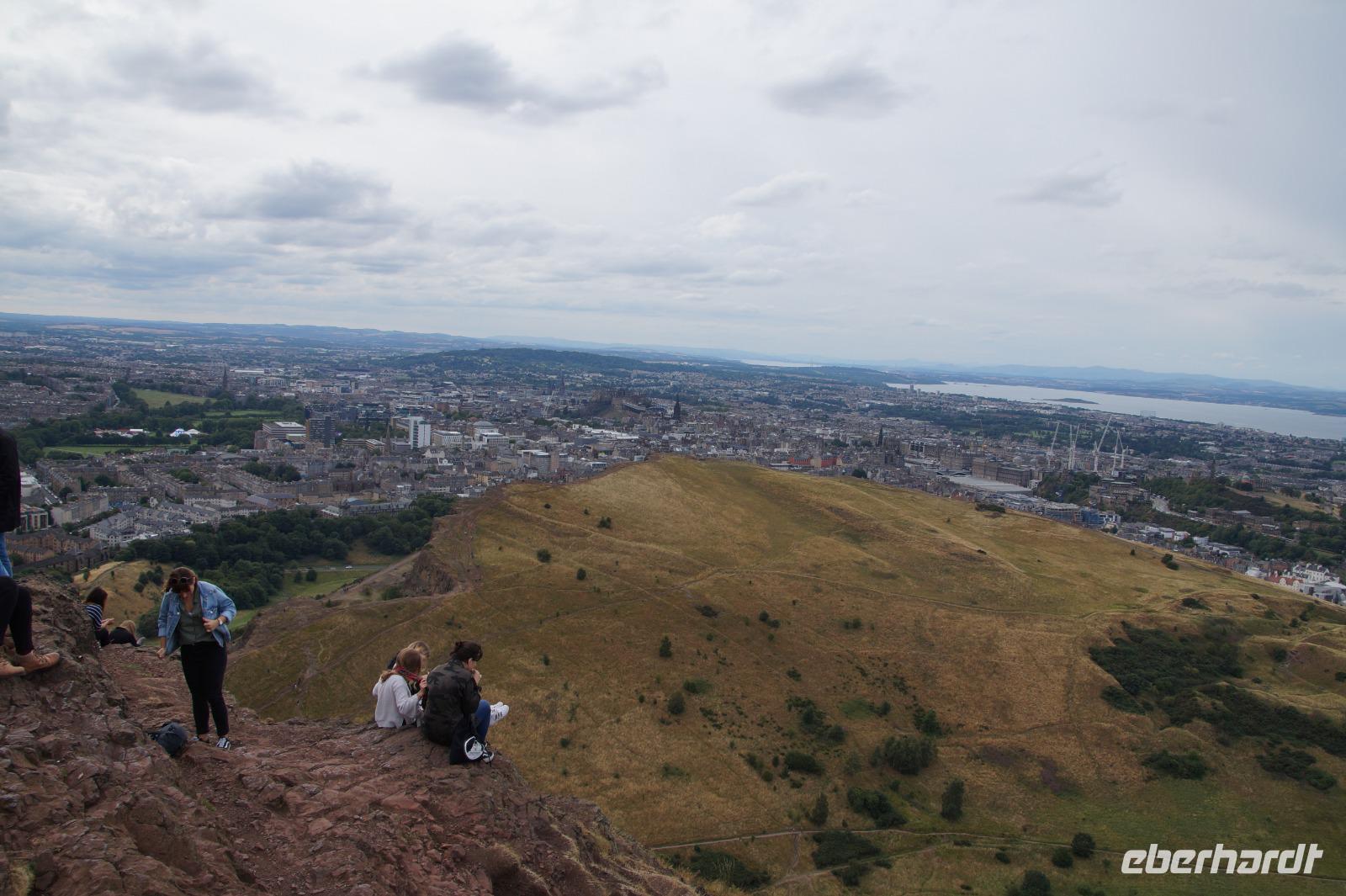 Nach einem Besuch beim Greyfriar's Bobby und auf dem Grassmarket, wo im Mittelalter (und auch noch später) die Hinrichtungen stattfanden, fanden wir gemeinsam den Weg in die Stadtburg, die wir auf eigene Faust erkundigten. Dann trafen sich die Wanderlustigen zu einem Marsch auf Edinburghs vulkanischen Stadtberg Arthur's Seat, während die Übrigen in Edinburgh Castle verweilten oder durch die Stadt spazierten, vielleicht, um sich ein paar Veranstaltungen beim Fringe Festival anzusehen.