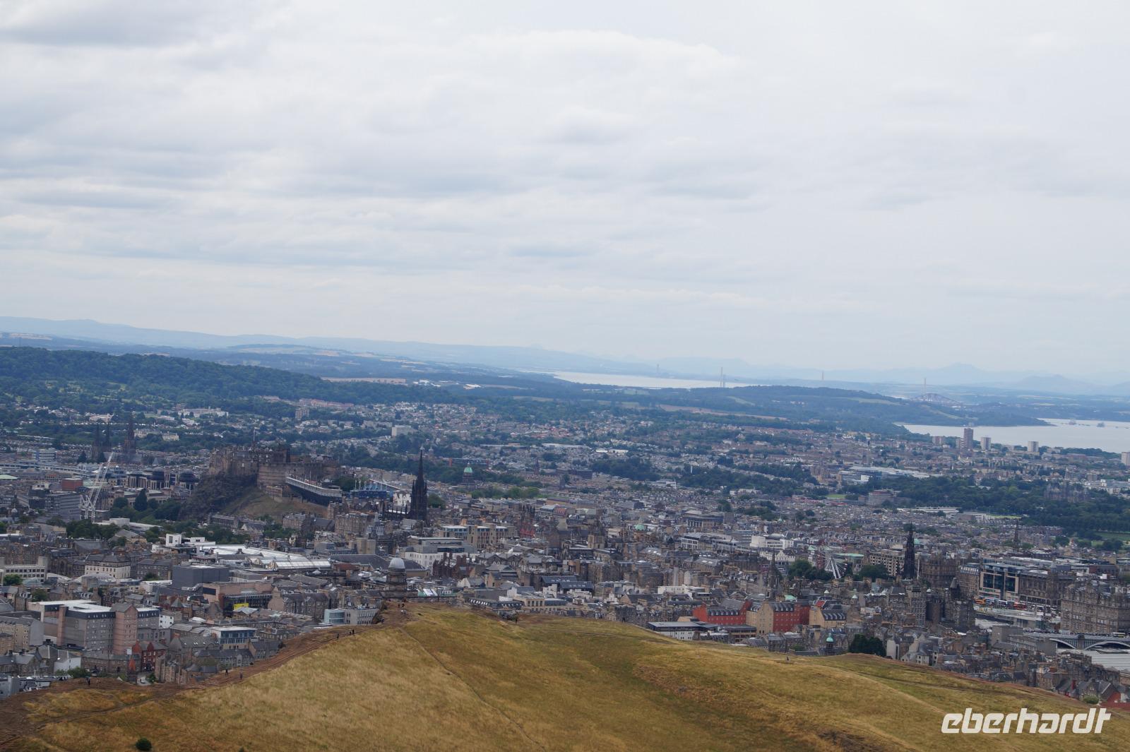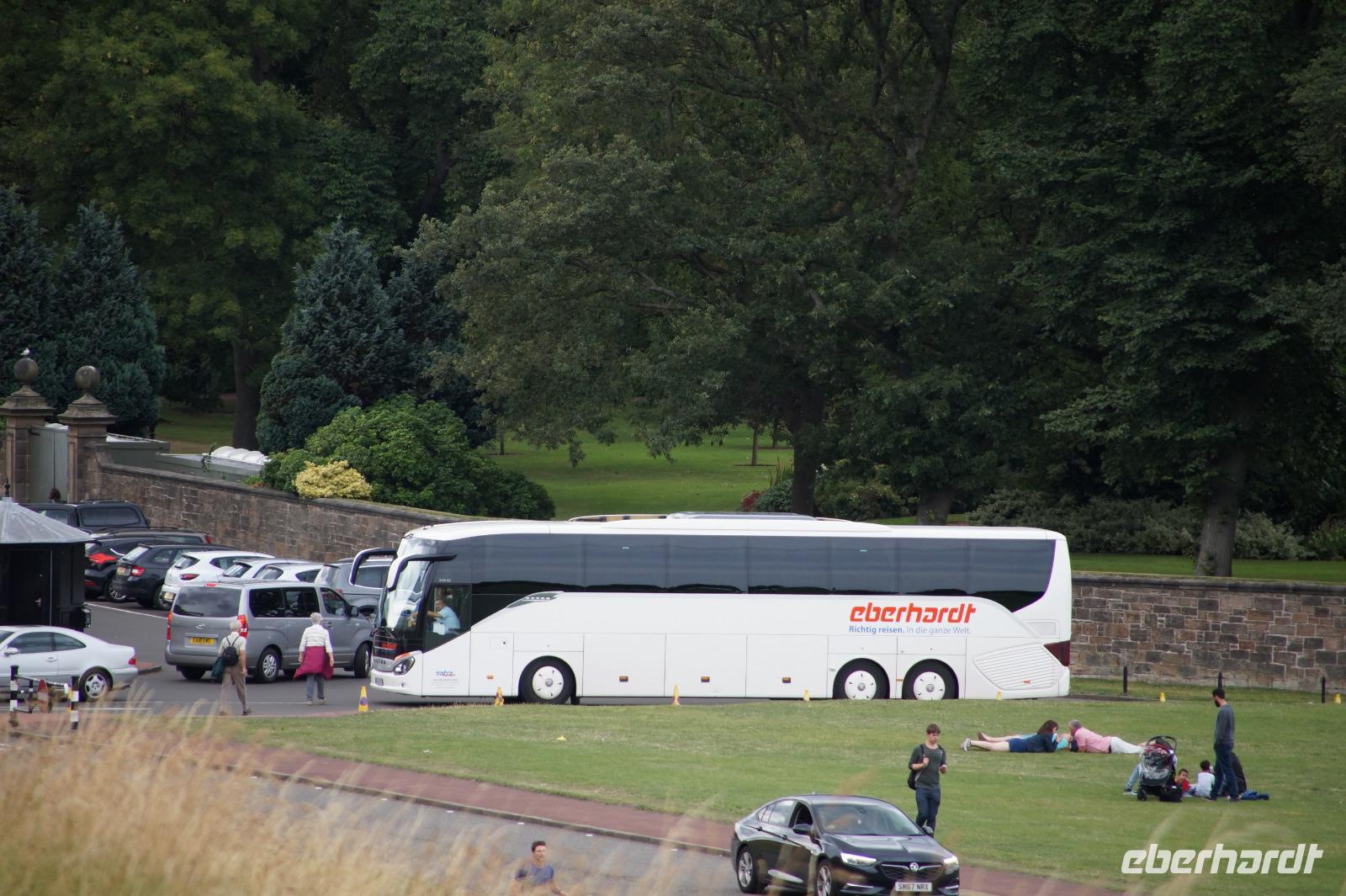 Zur Stadtführung durch Edinburgh wurden wir abgeholt. Zunächst ging es für uns durch die New Town mit dem Büro der Ministerpräsidentin zum Holyrood Palace (wenn auch anders geschrieben, bedeutet der Name dasselbe, wie bei der Holy Rude Kirk in Striling: Heilig Kreuz). Der Name des Palastes rührt von der gleichnamigen Abtei her, die dort liegt. Anschließend besuchten wir die Royal Yacht Britannia in Leith (['Li:th]), dann den Calton Hill, von dem aus wir das Stadtpanorama genossen.