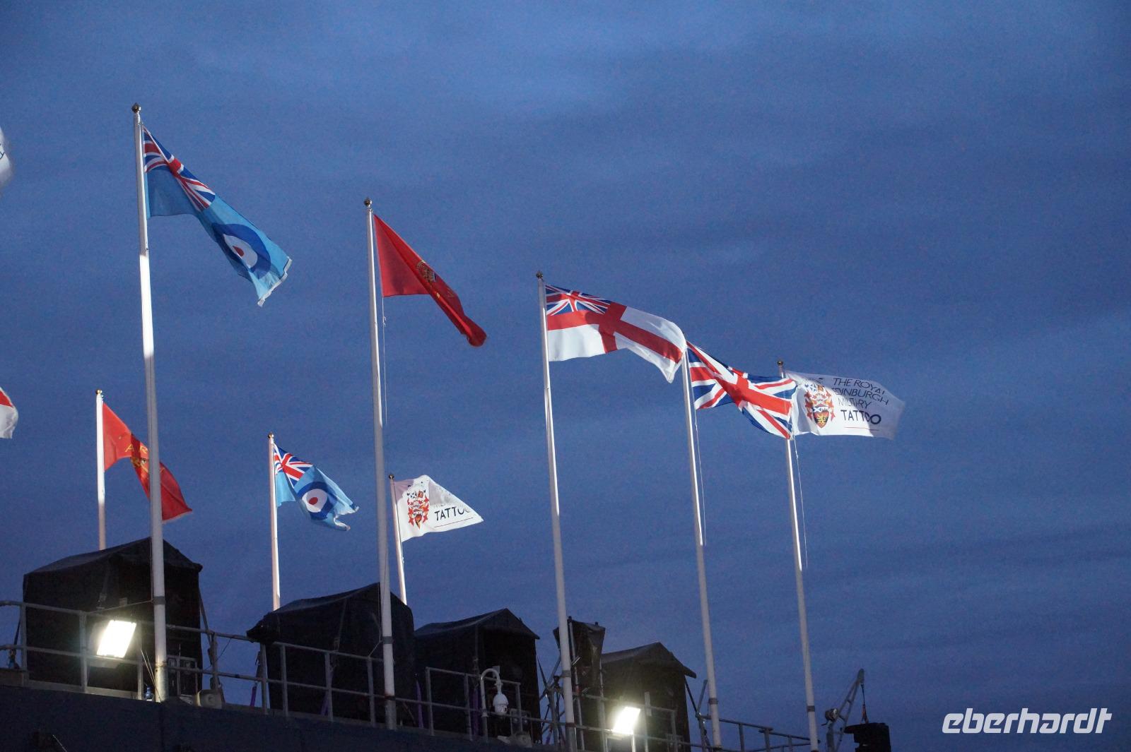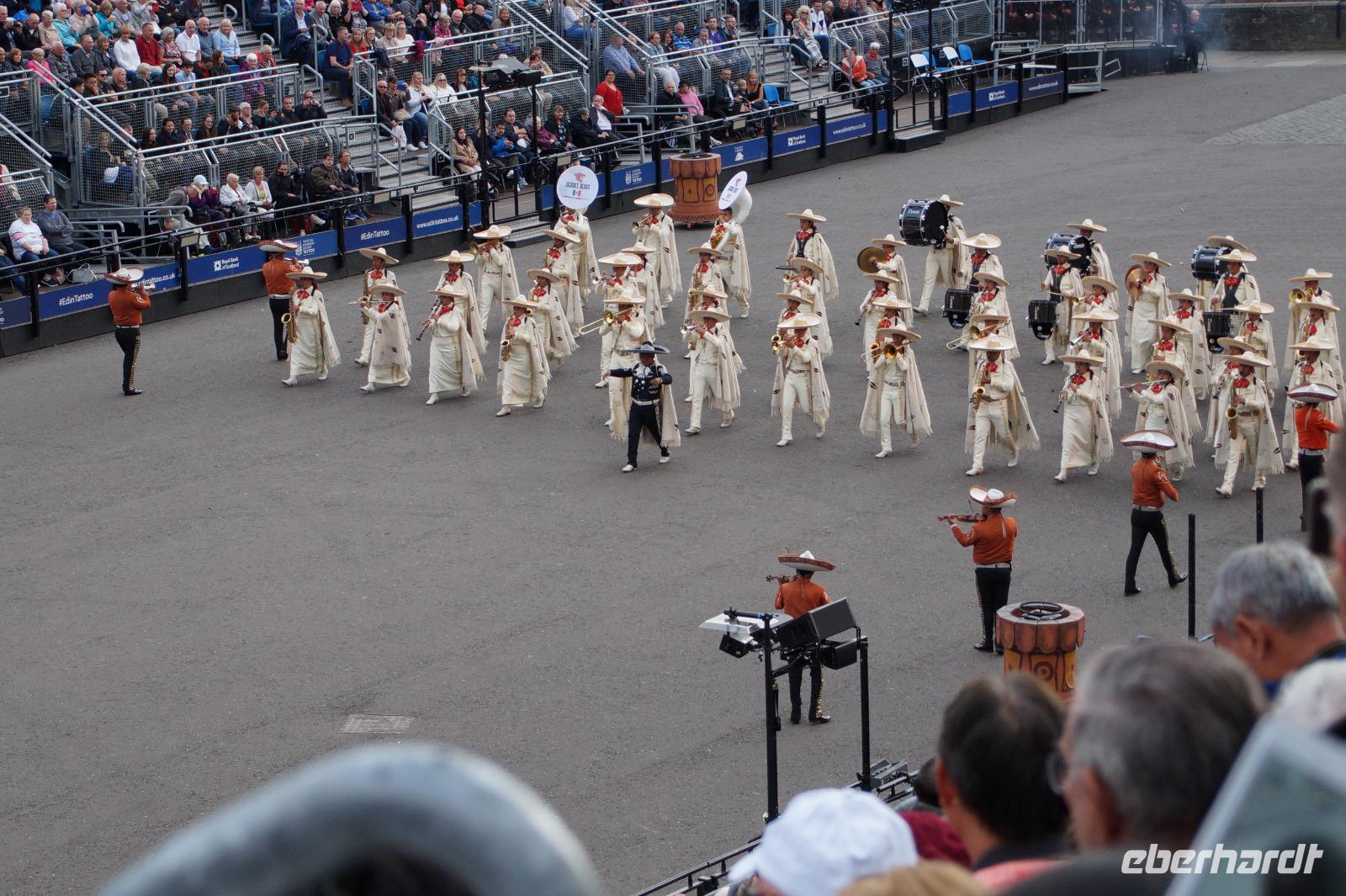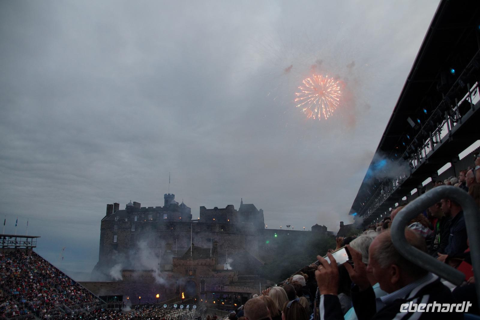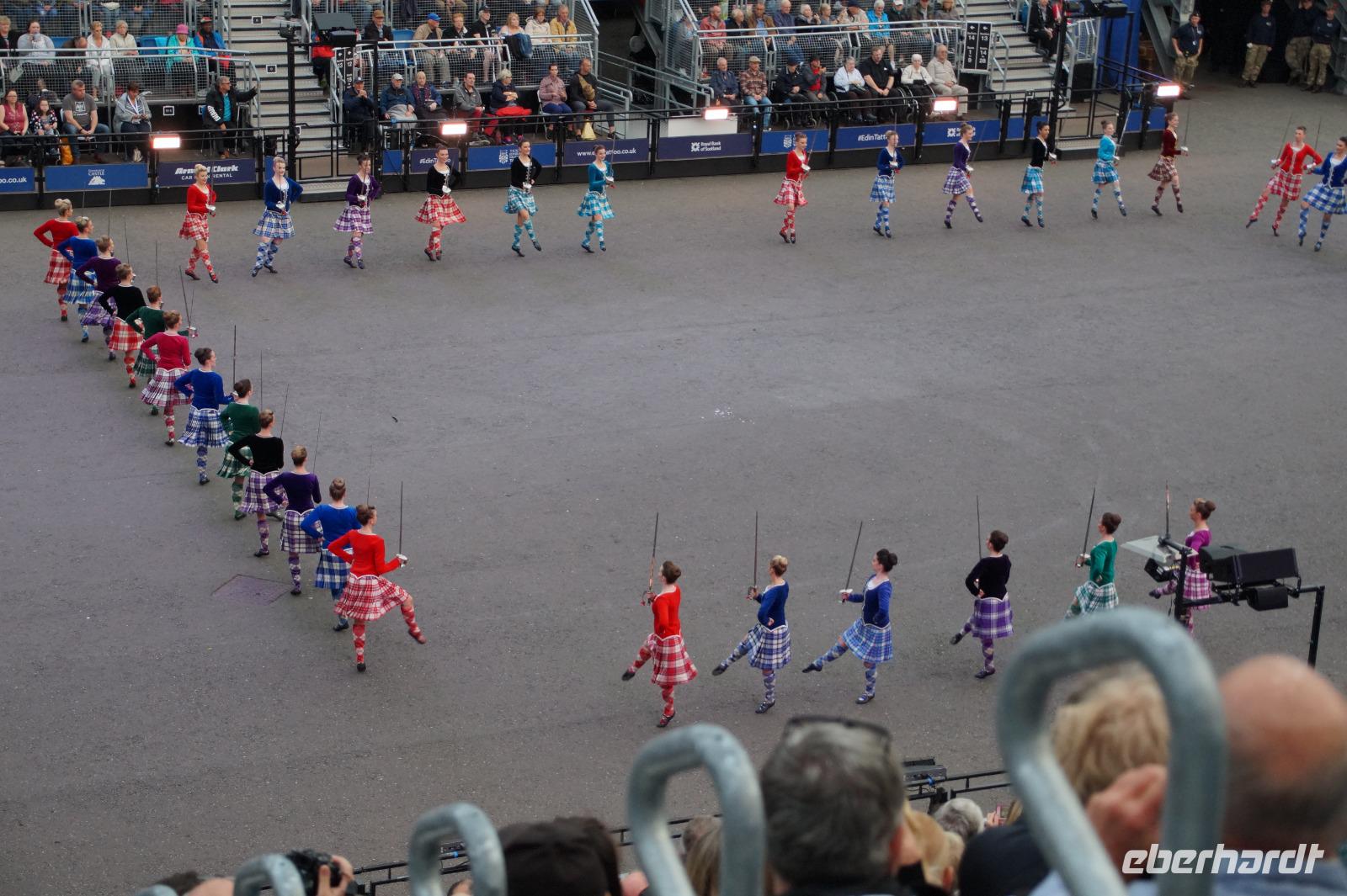 Das Royal Military Tattoo stand in diesem Jahr ganz im Zeichen des einhundertjährigen Bestehens der Royal Air Force und es kann und will seinen militärischen Charakter nicht verhehlen, wenn auch heute durchaus im Rahmen der Völkerverständigung. So waren neben einer malawischen Jugendgruppe, einem Freiwilligenregiment aus Middlesex County (Middlesex County Volunteers Fifes and Drums) auch wieder die Schweizer vom Top Secret Drum Corps dort, eine Militärkapelle aus dem Oman und aztekische Adlerkrieger verbreiteten mit ihrem Sturm auf das Exerzitiengelände Angst und Schrecken, bevor eine Mariachi-Band und eine Blaskapelle die Spannung mit Despacito auflösten. Äußerste Disziplin zeigte das Wachregiment der amerikanischen Luftwaffe. Am meisten Eindruck machten natürlich die verschiedenen Highlandregimenter mit ihren Bagpipes und Dudelsäcken, wegen denen kommt man in erster Linie zum Royal Military Tattoo nach Edinburgh. In der Endvorstellung tanzten schottische Tänzerinnen mit tschechischen, mexikanischen und malawischen Tänzerinnen und Tänzern zum Abschlussfeuerwerk. Danach zogen alle Mitwirkenden gemeinsam aus.