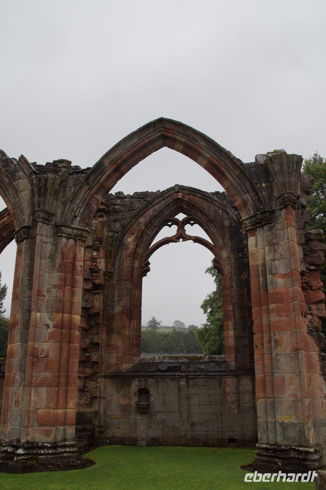 Auf dem Weg zurück nach England, zur Fähre nach Newcstle, besuchten wir noch das Herz von Robert the Brus (Bruce). Dieses ist in Melrose Abbey bestattet worden, wo genau ist unbekannt, jedoch hat man vor einigen Jahren bei archäologischen Grabungen eine Bleidose mit einem Herzen gefunden, welches man Robert the Brus zuordnet. Robert the Brus hatte 1314 die Engländer unter Edward II. aus Schottland hinausgeworfen und sich gegenüber seinen Konkurrenten, nicht immer mit friedlichen Mitteln, als König durchgesetzt. Sein Herz sollte nach seinem Tod 1329 eigentlich nach Jerusalem gebracht werden, jedoch scheiterte Roberts Vertrauter James Douglas in Andalusien, als er dem kastilischen König bei einer Belagerung zur Seite stand. Die schottische Delegation verlor bei einer Schlacht gegen ein maurisches Heer aus Málaga ihr Leben und das Herz des Königs wurde zurück nach Schottland gesandt. Ob das Herz, welches man bei Grabungen in Melrose Abbey fand, das von Robert the Brus ist, ist unsicher, da man es nicht in der Kirche gefunden hat. Aber vielleicht haben die Mönche des Klosters es vor dem presbyterianischen Sturm auf die katholischen Kirchen in Sicherheit bringen wollen und es in sein als vorübergehend geplantes Ausweichquartier verbracht, wo es dann aufgrund der Zeitläufte verbleiben musste.