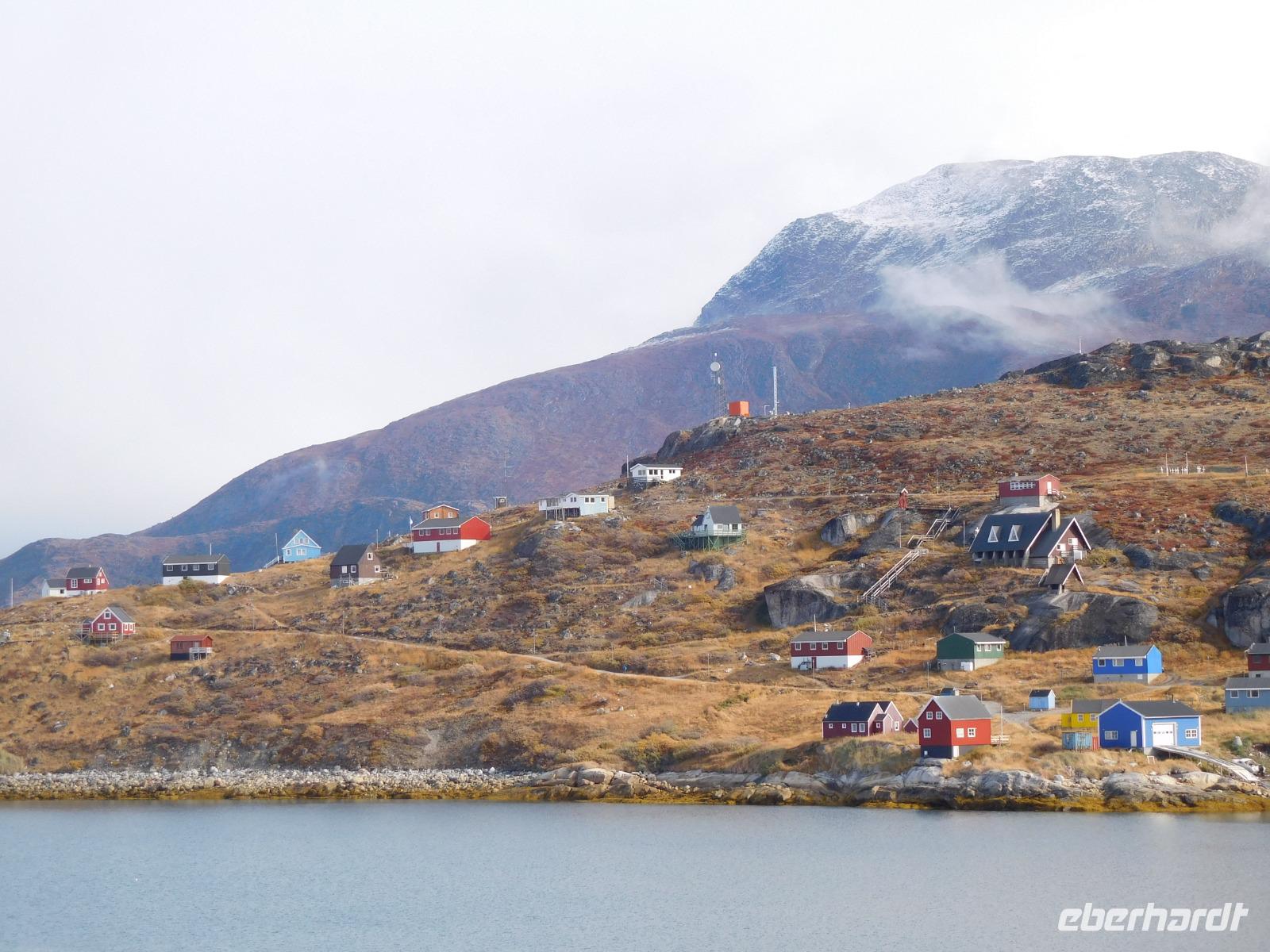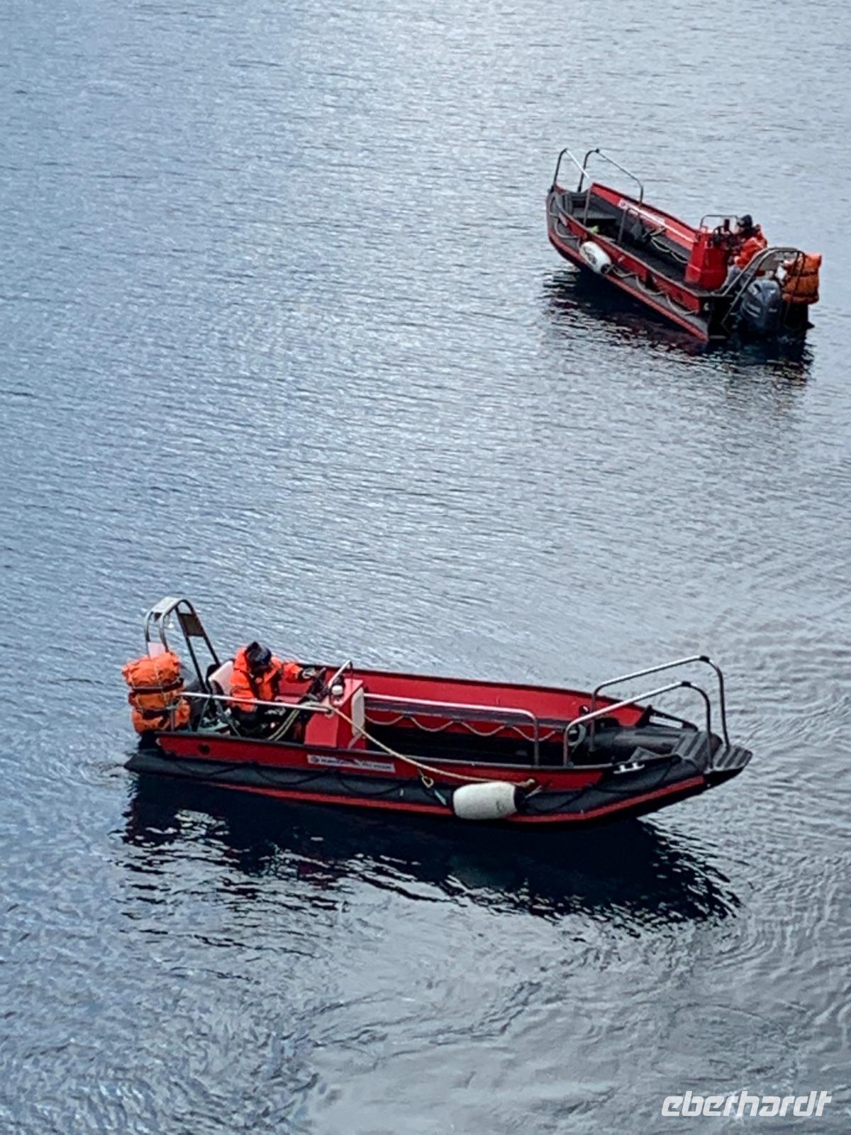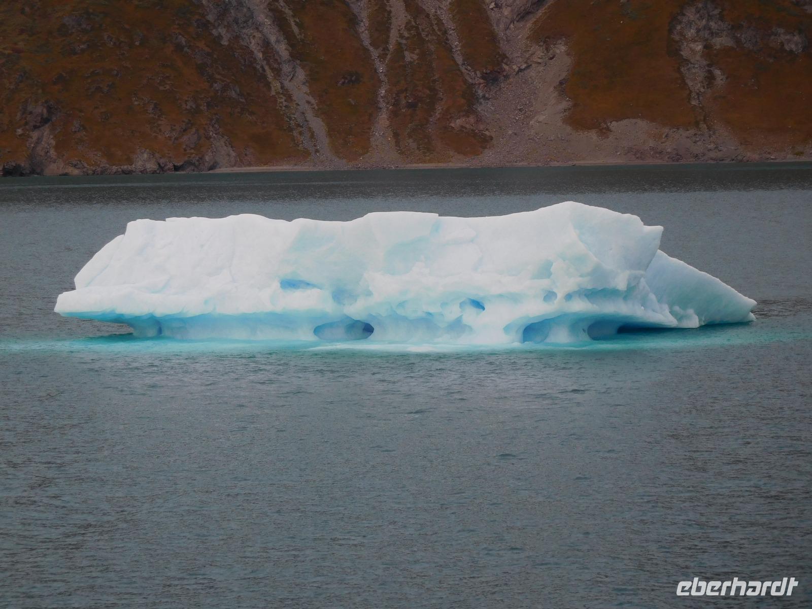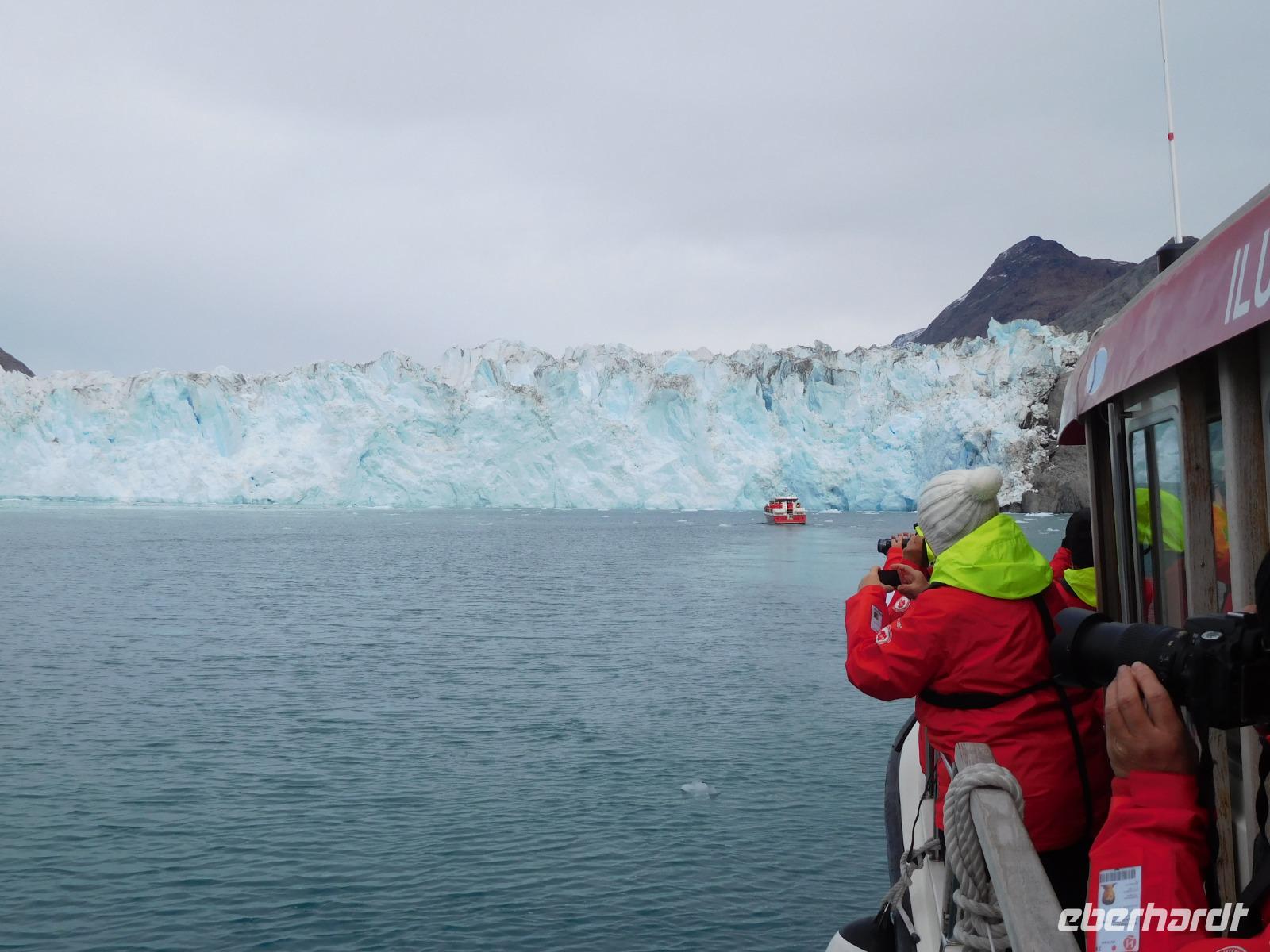 Wir liegen heute ganztags in Qassiarsuk auf Reede und beginnen darum früh mit unserem Programm. Zeitiges Aufstehen, zeitiges Frühstück, die Gäste, die Kajak fahren wollen fertig zum Briefing, Klamotten raussuchen, sortieren, anziehen... STOPP! Eine Borddurchsage: Leider ist unsere geplante Anlandung in Qassiarsuk NICHT möglich. Aufgrund des starken Windes und der Wellen ist es nicht möglich sicher an Land zu gelangen. Wir melden uns später wieder mit Informationen zum Programmablauf. Na super, wir hatten doch unseren Tag durchgetaktet... Okay dann warten wir auf weitere Informationen. Kajak fällt aus. Später erfahren wir, dass die komplette Anlandung in Qassiarsuk ausfallen muss und somit auch diverse Wanderungen und auch der Besuch der Weltkulturerbestätte Brattahlid, die Siedlungsstelle Erik des Roten. Hier kann man die Ruinen der ersten Kirche auf grönländischem Boden besichtigen, ebenso wie die Ruinen eines nordmännischen Langhauses. Auch der erste Thingplatz befindet sich hier. Aber um dies zu sehen, müssen wir nochmal wiederkommen. Der Schiffsbesatzung gelingt es - nachdem sich auch der Wind etwas gebessert hat - auf der gegenüberliegenden Seite, im nicht unbedeutenden Ort Narsarsuaq eine Anlandung zu organisieren. Da sich das Wetter tatsächlich etwas bessert, kann nun auch die Freude auf ein Highlight der Reise steigen, die Fahrt in den Qootoq Eisfjord. Wir liegen den ganzen Tag vor Ort und je nach Abfahrtszeit für das Boot zum Fjord, bleibt auch Zeit den kleinen Ort zu erkunden. Ein 30 minütiger Fußweg führt vom Hafen nach Narsarsuaq, welches tatsächlich einen internationalen Flughafen besitzt. Da sich hier von 1941-1958 eine Air Base der US Army befand, wurde der vorhandene Flughafen danach von Dänemark übernommen und bietet heute auch Verbindungen nach Kopenhagen und Reykjavik. Auch während wir da sind landen bzw. starten 4 Maschinen, allerdings alle kleineren Formats. Der Ort verfügt neben dem Flughafen über ein recht großes Hotel, eine Tankstelle, mehrere Cafés und ein tolles kleines Museum. Dieses besuchen wir auch und bewundern die zweigeteilte Ausstellung. Zum einen geht es um die Siedlungsgeschichte der Nordmänner, die allgegenwärtig ist. Zum anderen gibt es eine Ausstellung über die Zeit Narsarsuaqs als Militärbasis mit Hospital. Nun sind wir aber alle ganz gespannt auf unseren Ausflug in den Eisfjord. Mit kleinen Booten für bis zu 12 Gästen rasen wir mit den einheimischen Kapitänen in Richtung Fjord und bereits am Eingang können wir die ersten Eisberge sehen. In 1000 Formen und fast immer zumindest mit einem blauen Schimmer werden es immer mehr und unsere Bootsfahrer müssen genau darauf achten, wo sie lang fahren. Ganz erfahren bringen sie uns aber problemlos bis in die Nähe der Gletscherzunge des Qootoq-Gletschers. Dort werden die Motoren ausgestellt damit wir die Ruhe am Eis genießen können. Und tatsächlich hören wir es mehrfach im Inneren des gewaltigen Gletschers krachen. Wir lassen uns entlang der Gletschermauer treiben und genießen dabei einen leckeren Weißwein inklusive echtem Gletschereis. Ein wirklich beeindruckendes Erlebnis, so nah an der Gletscherwand zu sein. Anschließend geht es rasant durch die Eisberge und -schollen zurück mit ein paar gigantischen Eisbergen am Schluss der Tour. Ich denke alle sind von der Gewaltigkeit des Eises positiv überwältigt. Es bleibt noch Zeit in Narsarsuaq für diejenigen, die den Ort noch nicht besucht haben. Zum Abendessen sind dann alle zurück an Bord und es heißt Leinen los! Für die nächsten Tage hoffen wir alle auf gutes Wetter, denn die Überfahrt auf den Spuren von Leifur Eriksson nach Neufundland steht an...