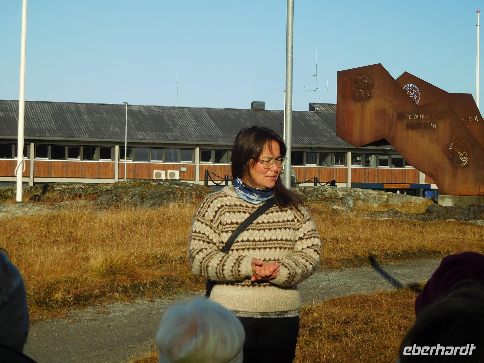 Sabine wurde an Bord als Lektor für geschichtliche Themen vorgestellt. Sie war Leiterin des Goethe-Zentrums in Reykjavik und ist die Autorin des Dumont-Reiseführers für Grönland.