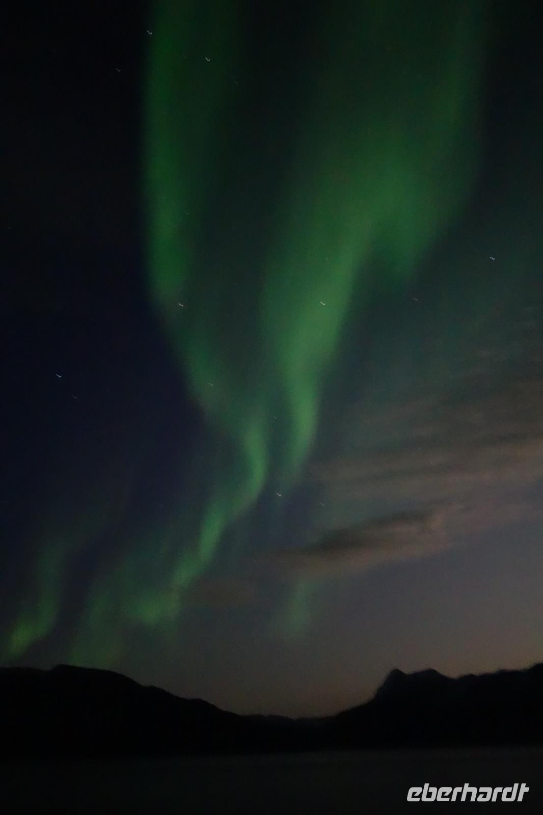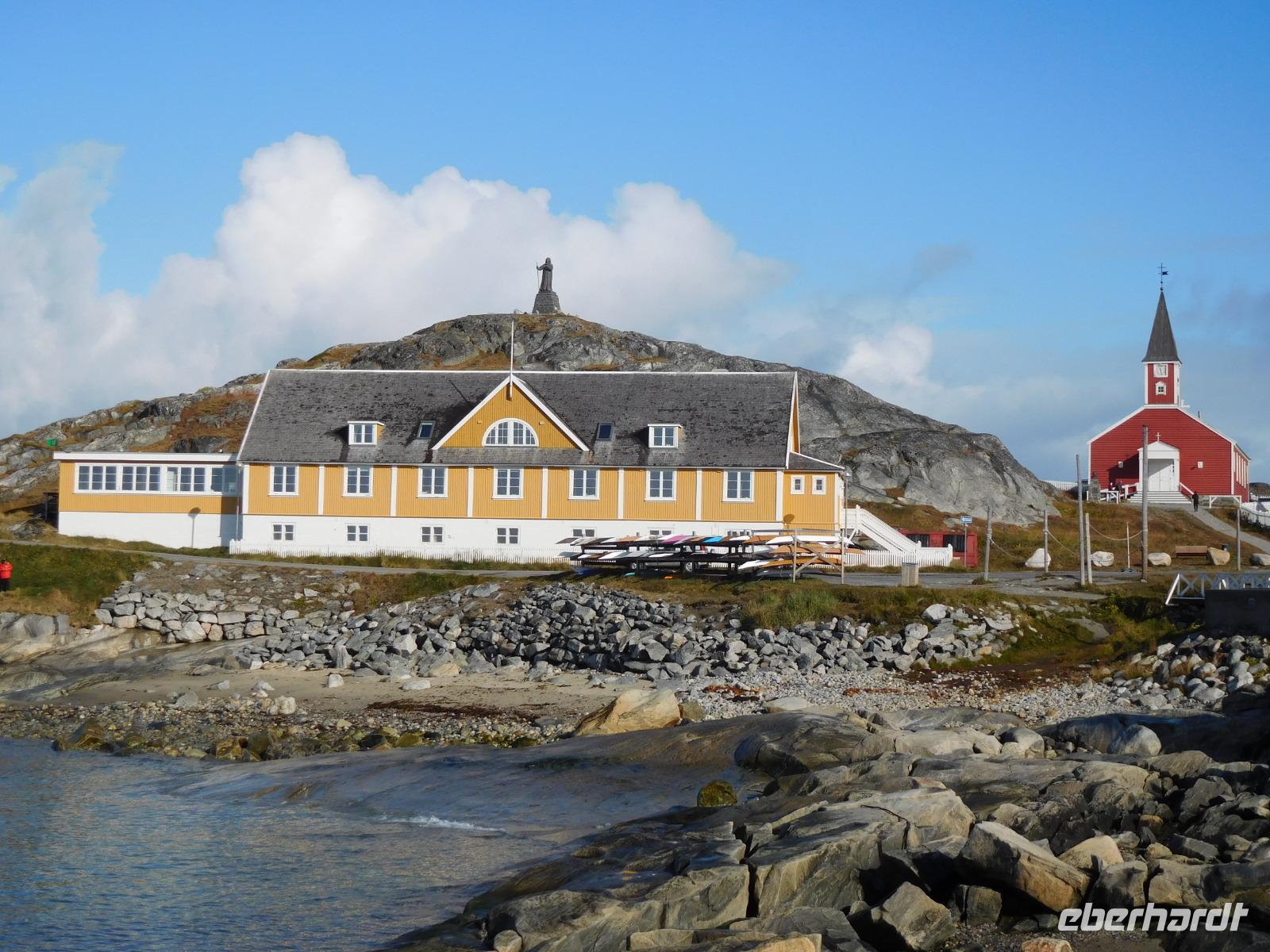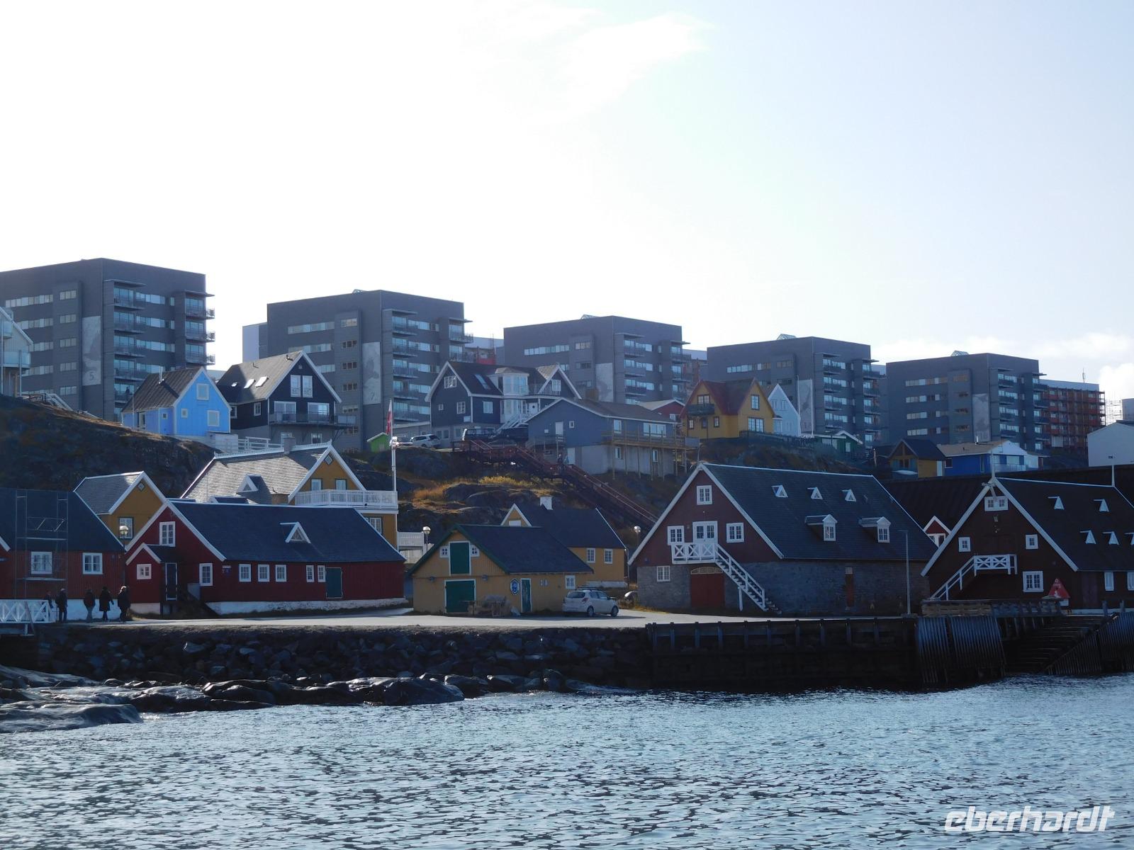 Heute steht die grönländische Hauptstadt Nuuk auf unserem Entdecker-Programm. Bereits gegen 6 Uhr legen wir an, das erfolgt diesmal direkt an der Pier. Je nachdem welcher Ausflug gebucht wurde, haben wir unterschiedliche Startzeiten und jeder geht nach dem Frühstück selbständig von Bord. Zuerst starten die Gäste für eine Stadtrundfahrt und die Wanderer auf die Lilli-Marlen-Wanderung. Im Anschluss geht es auf den kulturhistorischen Stadtspaziergang, an dem heute die Mehrheit unserer Gruppe teilnimmt. Zuerst werden wir mit dem heutigen, eigens für die Gäste von Hurtigruten eingerichteten, Shuttleservice eine Station im Linienbus vom Hafen in Nuuk ins Stadtzentrum transferiert. Dort steigen wir aus und unsere Stadtführerin Aka, eine waschechte Grönländerin, übernimmt die Gruppe. Unsere Führung findet auf Englisch statt und es ist mindestens schade, dass es Hurtigruten nicht schafft, für die vielen deutschsprachigen Gäste eine Übersetzung zu organisieren bzw. zu erlauben, zumal unser Simultan-Dolmetscher vom Schiff, Hannes, auch auf unserem Rundgang dabei ist. Klar, es soll der Redefluss nicht immer unterbrochen werden, aber da 30% der Gäste sehr wenig Englisch verstehen, sinkt für diese Gäste die Qualität der Führung stark. Aka gibt sich allerdings alle Mühe, um uns über alle wichtigen Themen zu informieren. Sie spricht natürlich über Nuuk und dessen Entwicklung, aber auch über Geschichte, Sagen, Politik und die Spannungen zwischen Tradition und Moderne in Grönland. Wir sehen auf unserem Rundgang natürlich auch die wichtigen Sehenswürdigkeiten der größten Stadt Grönlands mit knapp 18.000 Einwohnern - das Parlamentsgebäude, die Erlöserkirche oder eine Vielzahl der Statuen, die überall in der Stadt verteilt sind. Wir erfahren Wissenswertes über Hans Egede, den ersten Missionar auf Grönland und vor allem auch über die Inuitkultur und die aktuelle Suche der Grönlander nach Ihrer Rolle in der Welt - mehr Unabhängigkeit von Dänemark und Öffnung in andere Richtungen oder weitere Entwicklung MIT Dänemark und Europa... Unsere Stadtführung endet dann am Nationalmuseum Grönlands und wir haben nun noch freie Zeit. Der Eintritt zum Museum ist sonntags für alle kostenfrei und ein MUSS. Es handelt sich um ein tolles Museum mit sehr attraktiv gestalteten Ausstellungsräumen und einigen Gebäuden umher, die man wie bei einem Freilichtmuseum besuchen kann. Die Ausstellungsräume beheimaten unheimlich viele Exponate aus allen bekannten Epochen der grönländischen Besiedlung. Das unbestrittene Highlight der Ausstellung sind die Mumien von Qilakitsoq - eine Familie die im 15. Jahrhundert mumifiziert wurde und 1972 entdeckt. Nach dem Museum haben wir erstmal Appetit auf einen Kaffee und in einem kleinen, schicken Café im ehemaligen Kolonialhafen werden wir fündig. Anschließend geht es individuell zurück zum Schiff, entweder mit dem Shuttle oder zu Fuß. Vorbei an der Erlöserkirche spazieren wir auf den Hügel, wo es eine Statue zu Ehren Hans Egedes gibt und man einen sensationellen Blick über die Stadt und die Umgebung genießen kann. Dazu passt auch das wunderbare Sonnenwetter. Wir schlendern durch die Stadt zurück und sind nachmittags an Bord zurück - natürlich nicht ohne doch noch einen Regenguss abzubekommen. Die Gäste der Wanderung sind auch hellauf begeistert, wenn auch geschafft. Nun lauschen wir noch einem Vortrag des Bord-Geologen und dann gibt es heute erstmals ein serviertes Abendessen. 5 Gänge mit französischem Grundtenor werden serviert und anschließend zieht es die meisten auf die Kabinen. Doch STOPP - kurz nach halb 10 ertönt erneut NORDLICHT-ALARM. Auch heute, bei klarem Himmel in den Abendstunden waren wir schon gut auf die Situation vorbereitet, bewundern wir wieder das einzigartige Schaupiel der Aurora Borealis. Wieder abwechslungsreich, dieses Mal aber teilweise noch farbintensiver und vor allem mit ständig neuen Formen, kommen wir aus dem Bilder machen nicht heraus. Es gibt heute sogar Minuten, wo man die grüne Färbung deutlich mit dem bloßen AUge erkennen kann. Ein wahres Spektakel und so sind wir fast eine Stunde an Deck zur Beobachtung.