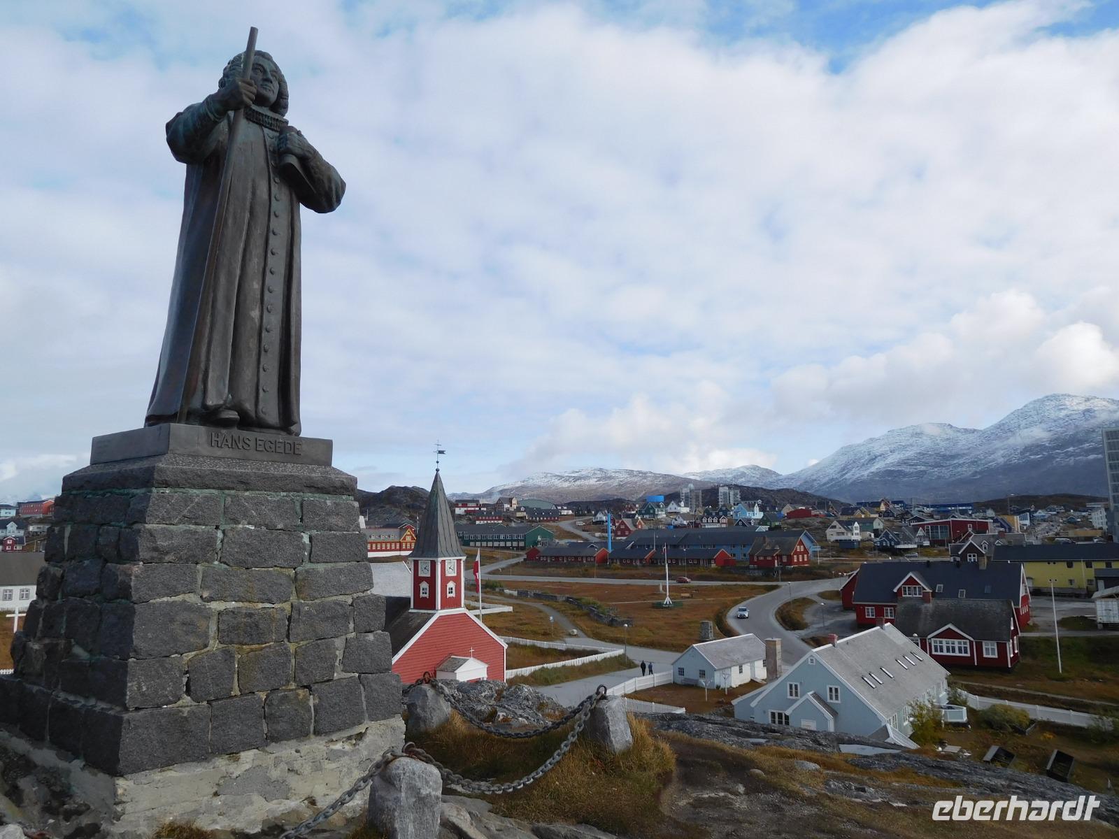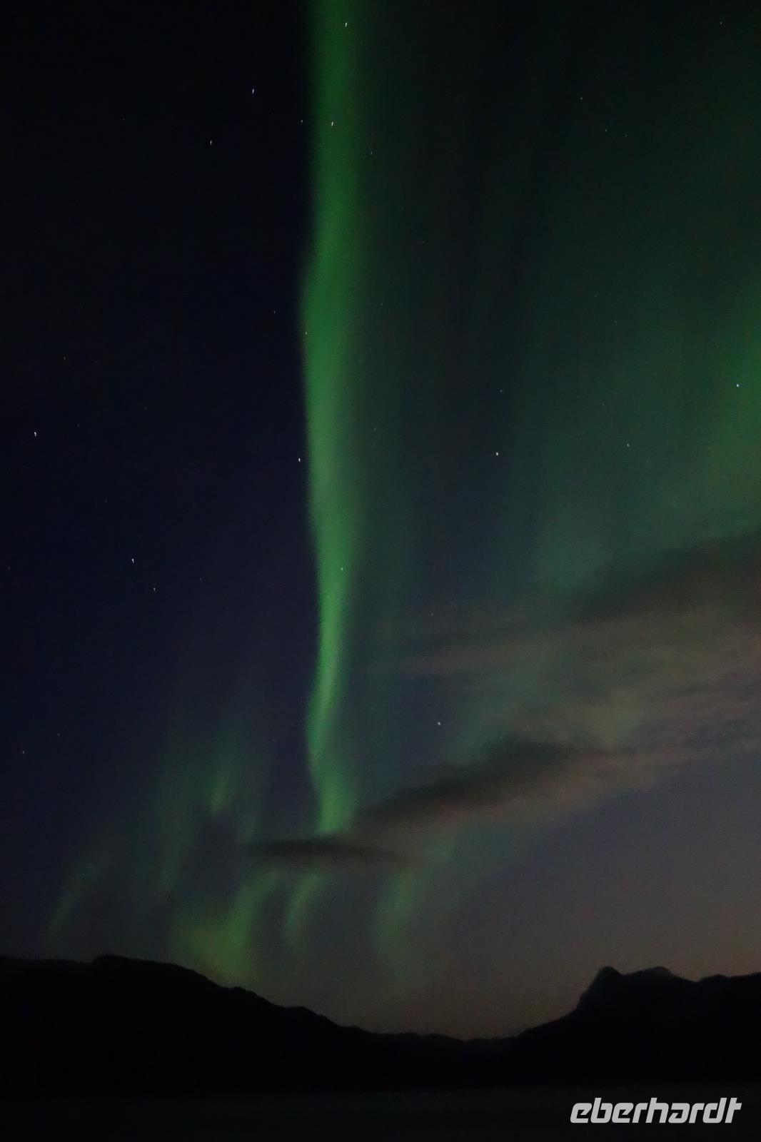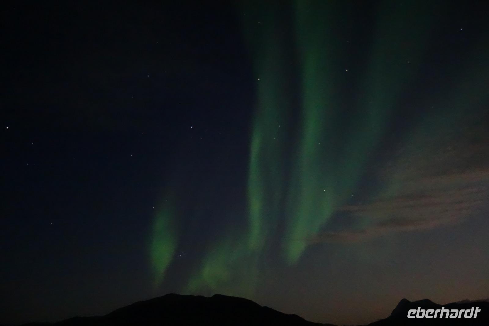 Heute steht die grönländische Hauptstadt Nuuk auf unserem Entdecker-Programm. Bereits gegen 6 Uhr legen wir an, das erfolgt diesmal direkt an der Pier. Je nachdem welcher Ausflug gebucht wurde, haben wir unterschiedliche Startzeiten und jeder geht nach dem Frühstück selbständig von Bord. Zuerst starten die Gäste für eine Stadtrundfahrt und die Wanderer auf die Lilli-Marlen-Wanderung. Im Anschluss geht es auf den kulturhistorischen Stadtspaziergang, an dem heute die Mehrheit unserer Gruppe teilnimmt. Zuerst werden wir mit dem heutigen, eigens für die Gäste von Hurtigruten eingerichteten, Shuttleservice eine Station im Linienbus vom Hafen in Nuuk ins Stadtzentrum transferiert. Dort steigen wir aus und unsere Stadtführerin Aka, eine waschechte Grönländerin, übernimmt die Gruppe. Unsere Führung findet auf Englisch statt und es ist mindestens schade, dass es Hurtigruten nicht schafft, für die vielen deutschsprachigen Gäste eine Übersetzung zu organisieren bzw. zu erlauben, zumal unser Simultan-Dolmetscher vom Schiff, Hannes, auch auf unserem Rundgang dabei ist. Klar, es soll der Redefluss nicht immer unterbrochen werden, aber da 30% der Gäste sehr wenig Englisch verstehen, sinkt für diese Gäste die Qualität der Führung stark. Aka gibt sich allerdings alle Mühe, um uns über alle wichtigen Themen zu informieren. Sie spricht natürlich über Nuuk und dessen Entwicklung, aber auch über Geschichte, Sagen, Politik und die Spannungen zwischen Tradition und Moderne in Grönland. Wir sehen auf unserem Rundgang natürlich auch die wichtigen Sehenswürdigkeiten der größten Stadt Grönlands mit knapp 18.000 Einwohnern - das Parlamentsgebäude, die Erlöserkirche oder eine Vielzahl der Statuen, die überall in der Stadt verteilt sind. Wir erfahren Wissenswertes über Hans Egede, den ersten Missionar auf Grönland und vor allem auch über die Inuitkultur und die aktuelle Suche der Grönlander nach Ihrer Rolle in der Welt - mehr Unabhängigkeit von Dänemark und Öffnung in andere Richtungen oder weitere Entwicklung MIT Dänemark und Europa... Unsere Stadtführung endet dann am Nationalmuseum Grönlands und wir haben nun noch freie Zeit. Der Eintritt zum Museum ist sonntags für alle kostenfrei und ein MUSS. Es handelt sich um ein tolles Museum mit sehr attraktiv gestalteten Ausstellungsräumen und einigen Gebäuden umher, die man wie bei einem Freilichtmuseum besuchen kann. Die Ausstellungsräume beheimaten unheimlich viele Exponate aus allen bekannten Epochen der grönländischen Besiedlung. Das unbestrittene Highlight der Ausstellung sind die Mumien von Qilakitsoq - eine Familie die im 15. Jahrhundert mumifiziert wurde und 1972 entdeckt. Nach dem Museum haben wir erstmal Appetit auf einen Kaffee und in einem kleinen, schicken Café im ehemaligen Kolonialhafen werden wir fündig. Anschließend geht es individuell zurück zum Schiff, entweder mit dem Shuttle oder zu Fuß. Vorbei an der Erlöserkirche spazieren wir auf den Hügel, wo es eine Statue zu Ehren Hans Egedes gibt und man einen sensationellen Blick über die Stadt und die Umgebung genießen kann. Dazu passt auch das wunderbare Sonnenwetter. Wir schlendern durch die Stadt zurück und sind nachmittags an Bord zurück - natürlich nicht ohne doch noch einen Regenguss abzubekommen. Die Gäste der Wanderung sind auch hellauf begeistert, wenn auch geschafft. Nun lauschen wir noch einem Vortrag des Bord-Geologen und dann gibt es heute erstmals ein serviertes Abendessen. 5 Gänge mit französischem Grundtenor werden serviert und anschließend zieht es die meisten auf die Kabinen. Doch STOPP - kurz nach halb 10 ertönt erneut NORDLICHT-ALARM. Auch heute, bei klarem Himmel in den Abendstunden waren wir schon gut auf die Situation vorbereitet, bewundern wir wieder das einzigartige Schaupiel der Aurora Borealis. Wieder abwechslungsreich, dieses Mal aber teilweise noch farbintensiver und vor allem mit ständig neuen Formen, kommen wir aus dem Bilder machen nicht heraus. Es gibt heute sogar Minuten, wo man die grüne Färbung deutlich mit dem bloßen AUge erkennen kann. Ein wahres Spektakel und so sind wir fast eine Stunde an Deck zur Beobachtung.