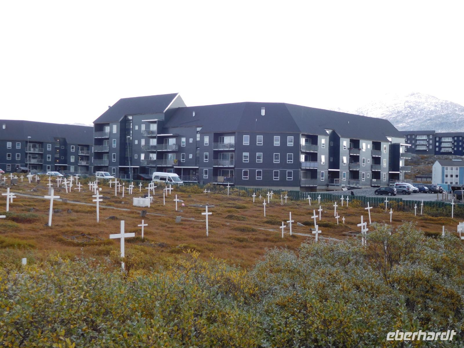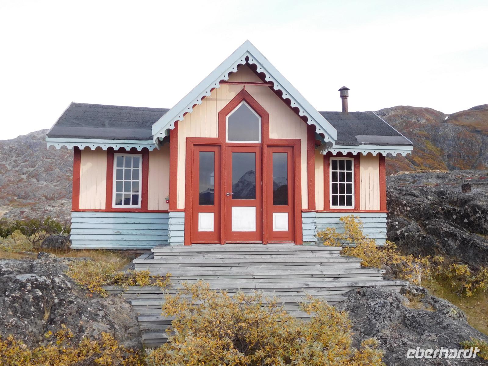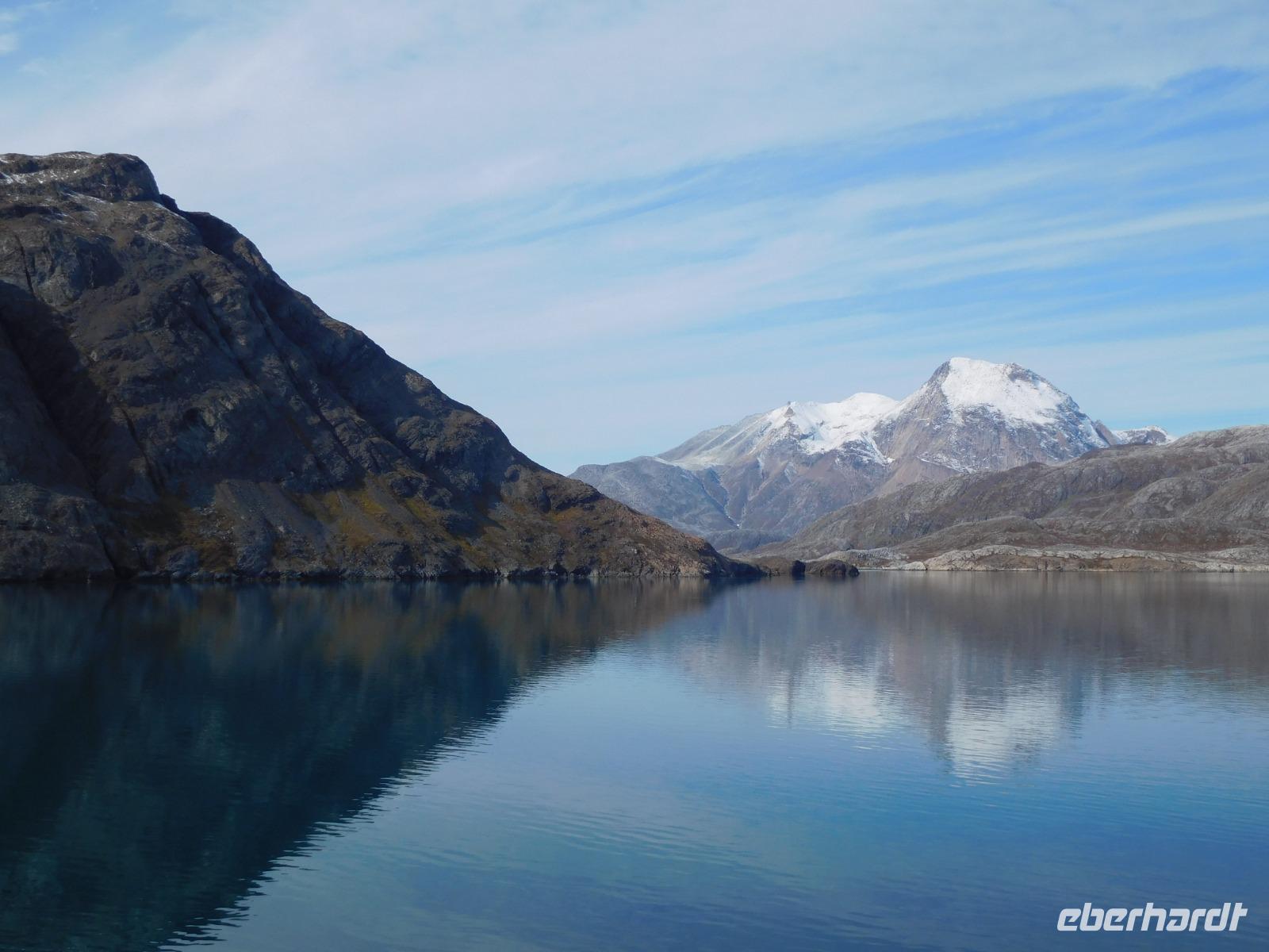 Heute bewegen wir uns entlang der Westküste weiter in Richtung Süden. Wie jeden Morgen werden wir zuerst über Schiffsposition, Wettervorhersage und das angetsrebte Programm informiert. Danach bleibt Zeit für interessante Vorträge. Sabine klärt uns über die moderne Geschichte Grönlands auf und die Schiffs-Ornithologin Holly erklärt uns, worauf man bei der Beobachtung von Seevögeln achten muss. Wir fahren heute ganz gemächlich in den Arsuk-Fjord ein und da wir trockenes sonniges Wetter haben, wird die Befahrung des Fjords zu einem wirklichen Erlebnis. Immer wieder ragen Felsketten aus dem Wasser mit fast alpinen Zügen. Hinter jeder Biegung bietet sich ein neuerliches Naturspektakel und vor allem die Spiegelungen entzücken die Fotografen regelrecht. Während des Mittagessens erreichen wir dann Ivittuut und nach unserer Stärkung beginnen wir die Anlandung. Es heißt also rein in die geliehenen Gummistiefel und wetterfeste Kleidung und dann wird in vorgegebenen Gruppen ganz entspannt und sortiert in den Polarcirkel-Booten nach Ivittuut getendert. Die heutige Geisterstadt war früher ein wichtiges Wirtschaftszentrum für Grönland. Hier wurden Anfang des 19. Jahrhunderts Kryolith-Vorkommen entdeckt und sobald man die technischen Möglichkeiten hatte, wurde der wertvolle Stoff abgebaut. 1987 war die Mine endgültig erschöpft und wurde geschlossen. Seit dieser Zeit verfällt der ehemalgie Hauptort der Region. Heutzutage kann man den Ort und seine Gebäude besichtigen, auch wenn man die Gebäude nicht mehr betreten darf. Der ehemalige Kryolith-Bruch ist heute als 80 Meter tiefe, Wasser gefüllte Grube zu sehen. Beim Spaziergang zwischen den Häusern und dem Blick hinein, fühlt man sich 40 Jahre zurückversetzt und kann sich gut vorstellen wie das Leden dort lief. Nben der Siedlung ist Ivittuut auch dafür bekannt, dass sich Moschusochsen aus dem nahen Grönnedal in der Nähe herumtreiben. Auch wir haben mehr oder weniger Glück. Nachdem unser Expeditions-Team die Umgebung erkundet hat und die Außengrenzen mit Gewehren bewaffnet absichert, könnne wir uns ohne Gefahr bewegen. Die äußerst wuchtigen Tiere können auch für den Menschen gefährlich werden und so ist es gut, dass wir ein paar Exemplare vom Schiff aus gesehen und auch an Land mit dem Feldstecher bewaffnet, 2 Tiere beobachten können, die gemütlich liegend auf einer Wiese grasen. Nach ca. 3 Stunden Aufenthalt haben dann auch die letzten Gäste das Schiff wieder erreicht und wir können auslaufen. Das Abendbuffet hat heute "Einen Touch von Asia". Nech dem Essen stimmt uns Sabine auf den nächsten Tag ein und anschließend gibt es eine Präsentation des Küchen- und Service-Teams in der Panorama-Lounge. Neben dem Schnitzen einer Eisskulptur und der fachmännischen Vorführung zur Frucht- und Gemüsegestaltung können wir ebenso beim Entstehen einer Torte zuschauen und wie aus Textilservietten zauberhafte Kunstwerke entstehen. Da es heute wegen Wolkendecke keine Nordlichter gibt, entschließen wir uns alle, heute früher als sonst zu Bett zu gehen.
