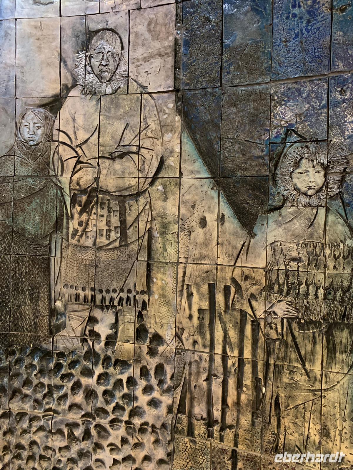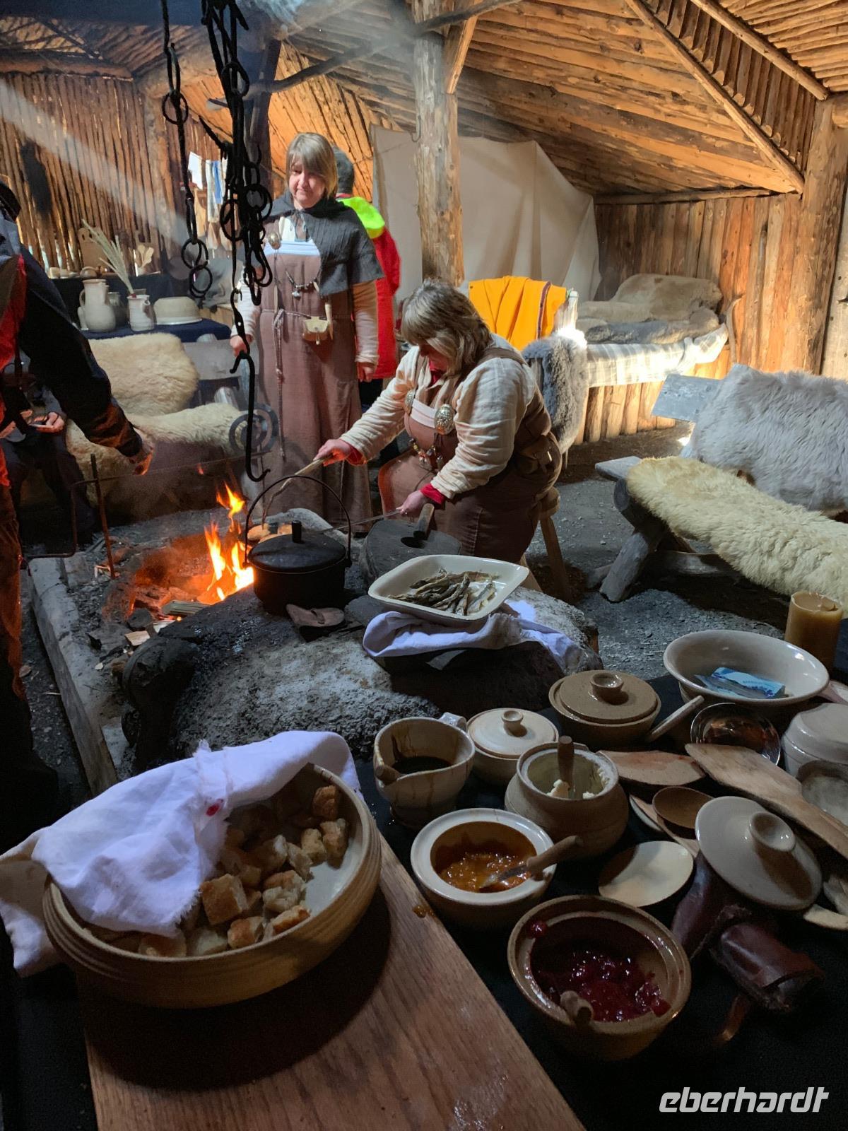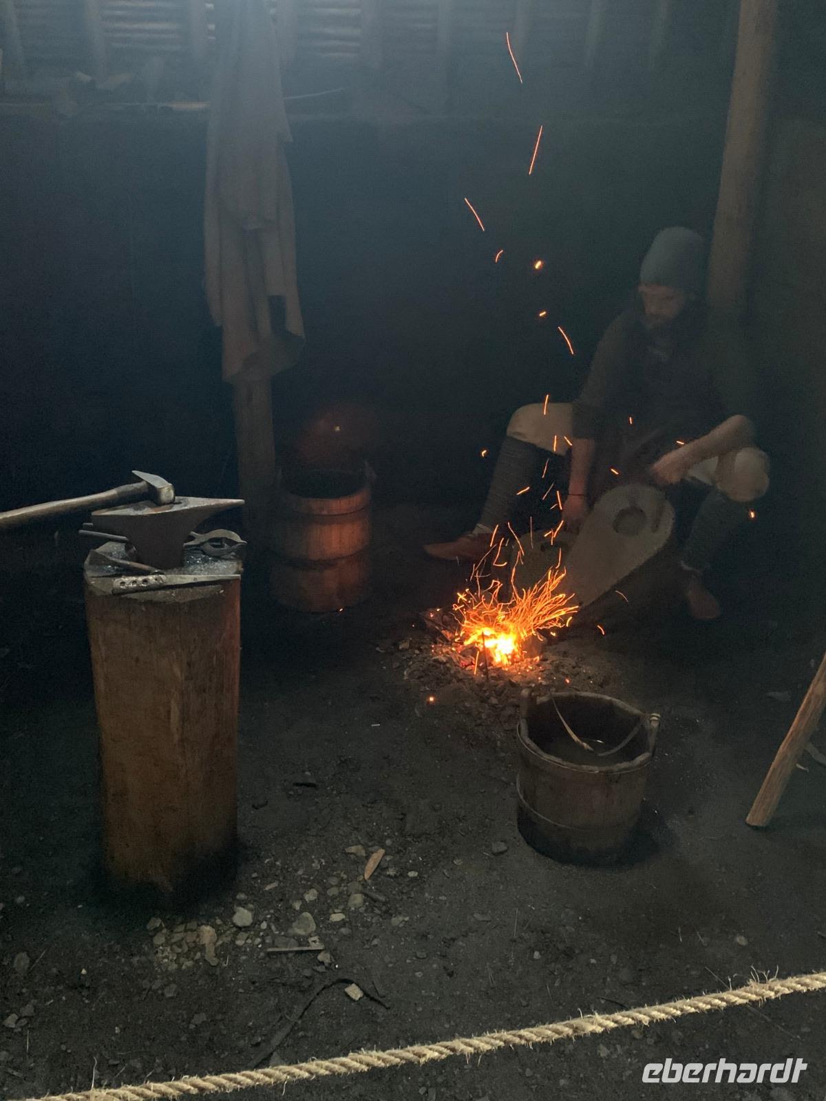 Am Morgen erreichen wir St. Anthony in Neufundland und somit reisen wir heute nach Kanada ein. Da wir nach zweit Seetagen endlich wieder an Land wollen, müssen allerdings auch die entsprechenden Einreiseformalitäten eingehalten werden. Während des Frühstücks kommt also der Zoll an Bord, um die von uns ausgefüllten Einreisekarten und die an der Rezeption hinterlegten Reisepässe zu kontrollieren. Das Schiff wird dann frei gegeben und wir können zu unserem Ausflug starten. Alle, die keinen Ausflug gebucht haben, können die 2.200 Einwohner zählende Metropole auf eigene Faust erkunden. Wir als Besucher vom Schiff werden von den Einheimischen äußerst gastfreundlich empfangen. Wir starten bei strahlendem Sonnenschein und blauem Himmel in Schulbussen - unserer ist Baujahr 2001 - zu unserem Ausflug nach Norden, in das Weltkulturerbe-Zentrum L'ans aux Meadows . Die Fahrt dauert ca. 45 Minuten und wir erkunden die erste nachweisbare Siedlung Leifur Eriksons mit unserer Führerin Dale und Sabines Übersetzungen. Das Gelände der Ausgrabungen ist sehr weitläufig und am Anfang vermittelt ein sehr schönes, interaktives Museum viel Wissenswertes zum Leben der Nordmänner und zu den Ausgrabungen vor Ort. Es gibt vor Ort die Nachbildung einer Schmiede und eines Langhauses, in welchem Schauspieler Einblick in das früherer Leben geben. Nach diesem Besuch fahren wir weiter nach Norstead - hier befinden sich die Replika der Häuser aus der Zeit Leifur Eriksons. Ein Langhaus, eine Kirche und die Nordmänner-Knoerre Snorri kann man besichtigen. Auch hier lernt man über nordische Kulinarik, die Arbeit der Frauen und das Schmiedewesen mit lebenden Museumsmitarbeitern. Leider neigt sich der Ausflug schon dem Ende zu und mitten durch ein Elch-Jagd-Gebiet kehren wir zurück zum Schiff. Da wir heute am Pier anlegen, kann jeder jederzeit raus. Wir nehmen ein leichtes Mittagessen ein und wollen dann mit dem von Hurtigruten eingerichteten Shuttle-Service die Stadt noch erkunden. Der Shuttle hält an verschiedenen Haltestellen, wir entscheiden uns nach kurzfristiger Überlegung, am entferntesten Punkt auszusteigen. Über gut ausgebaute Küstenwanderwege können wir einige Aussichtspunkte erklimmen und die Landschaft des Fishing Point Municipal Parks genießen. Anschließend laufen wir zurück in die Stadt und besichtigen noch das Hospital, welches durch den bekanntesten Gönner der Stadt, Sir Wilfred Grenfell, und seine Stiftung entstehen konnte. Im Foyer befindet sich ein wunderbares Relief. Mit dem Namen Sir Grenfells kommt man zwangsweise in der Stadt in Berührung, denn nach ihm sind einige Straßen, die Grundschule, das Hospital und noch vieles mehr benannt. Auch sein Wohnhaus steht noch und kann gern angeschaut werden. Es ist ein kleines Museum und rund um das Haus führt ein ca. 30-minütiger Wanderpfad mitten durch den Wald. Natürlich wandern wir den Weg auch noch ab, aber dann ist es wirklich auch Zeit auf den Bus zum Schiff zu warten. Wir stärken uns am Buffet und dann erzählt uns Rudolf noch schnell das Wichtigste zum Folgetag. Ganz so lange sitzen wir heute nicht an der Bar, denn wir gehören zu den ersten morgen, die das Schiff verlassen werden...