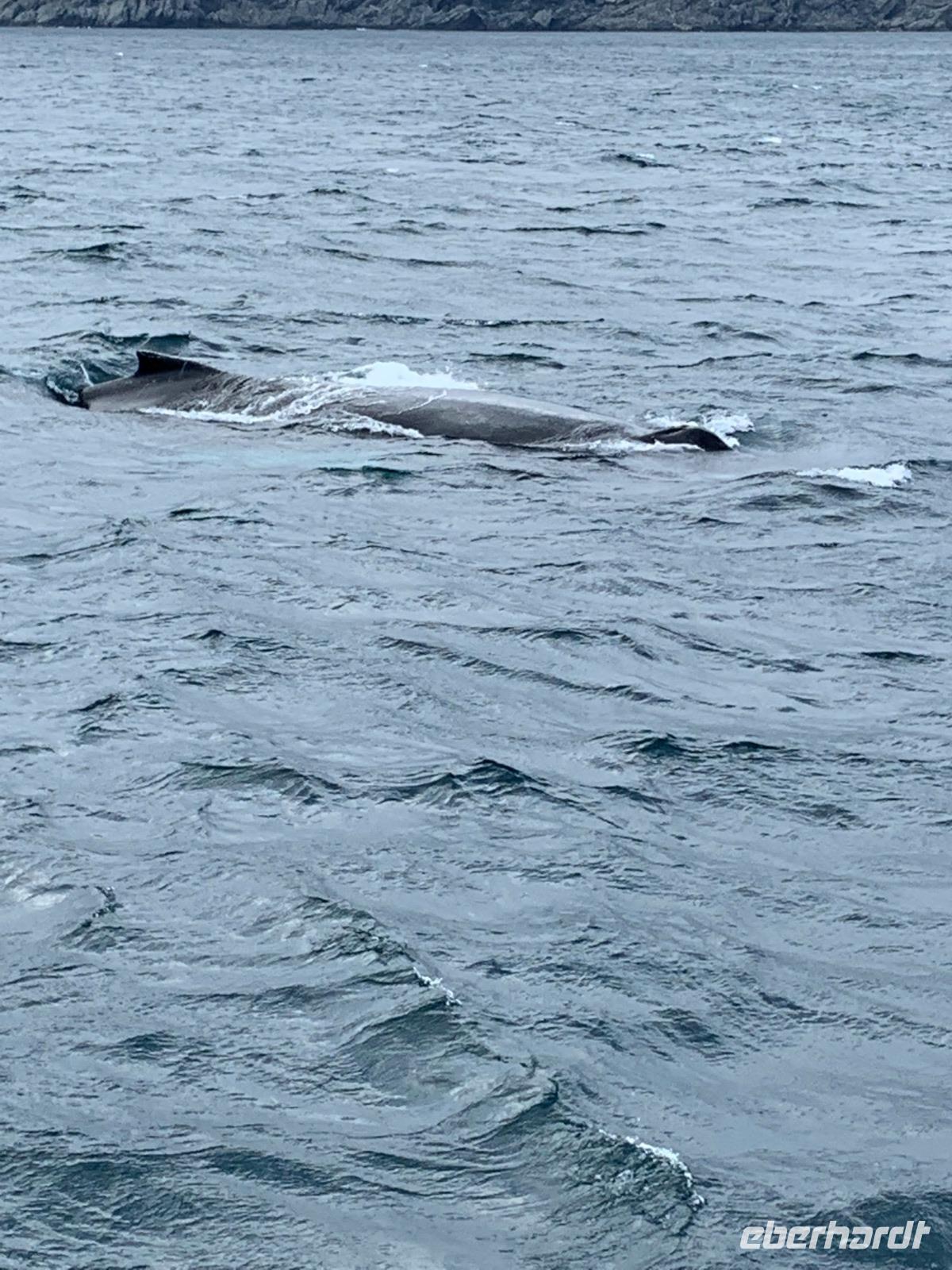 Der dritte Tag in St. Anthony beginnt, der dritte Tag mit denselbem Blick aus dem Fenster des Restaurants. Und heute regnet es auch noch. Es ist tatsächlich ungemütlich und langweilig, ein gewisser Schiffskoller stellt sich ein. Tapfer versuchen wir, uns durch Teilnahme an Vorträgen oder einer Runde Tischtennis dem entgegen zu stellen, aber so richtig mag es uns nicht gelingen. Zum Mittagessen gibt es zumindest aufheiternde Nachrichten. Ich habe einen örtlichen Anbieter für Whalewatchingtouren dazu bringen können, uns trotz Ende seiner Saison, nochmals zur Verfügung zu stehen.Und so geht ein Großteil unserer Gruppe auf eine Whalewatching-Tour aufs offene Meer. Unser Kapitän Terry und unser Guide Paul sehen schon bei Ausfahrt aus dem Hafenbecken Wale in großer Entfernung. Zielgerichtet fahren sie darauf zu und tatsächlich dauert es nicht lange und die gigantischen Meeressäuger tauchen neben dem Boot auf. Wir genießen die Nähe der Buckelwale in vollen Zügen. Unser Beobachtungsschiff schaukelt zwar ganz schön in den Wellen, aber das können wir ab. Die Tiere sind unglaublich und es werden gefühlt tausende Bilder geschossen. Auch die Fahrt über das windige Meer tut uns gut - einfach mal nicht auf dem Schiff auf Neuigkeiten warten... Die Neuigkeiten erwarten uns dann beim abendlichen Meeting und Vorschau auf den nächsten Tag - und es sind dieses Mal sehr traurige Neuigkeiten: Der Mechaniker ist noch nicht da und wird auch nicht vorm vorletzten Tag da sein! Der Notfallplan lautet also verfrühte Ausschiffung, Flug von St. Anthony nach St. John's, eine zusätzliche Nacht dort. Die Stimmung beim Abendessen kann man sich vorstellen... Ziemlich frustriert, nicht über die technischen Unzulänglichketen sondern eher über das Verhalten und den teilweise lapidaren Umgang mit den Gästen kann, spülen wir unseren Ärger in der Panoramlounge auf Deck 7 mit ein paar Getränken runter.