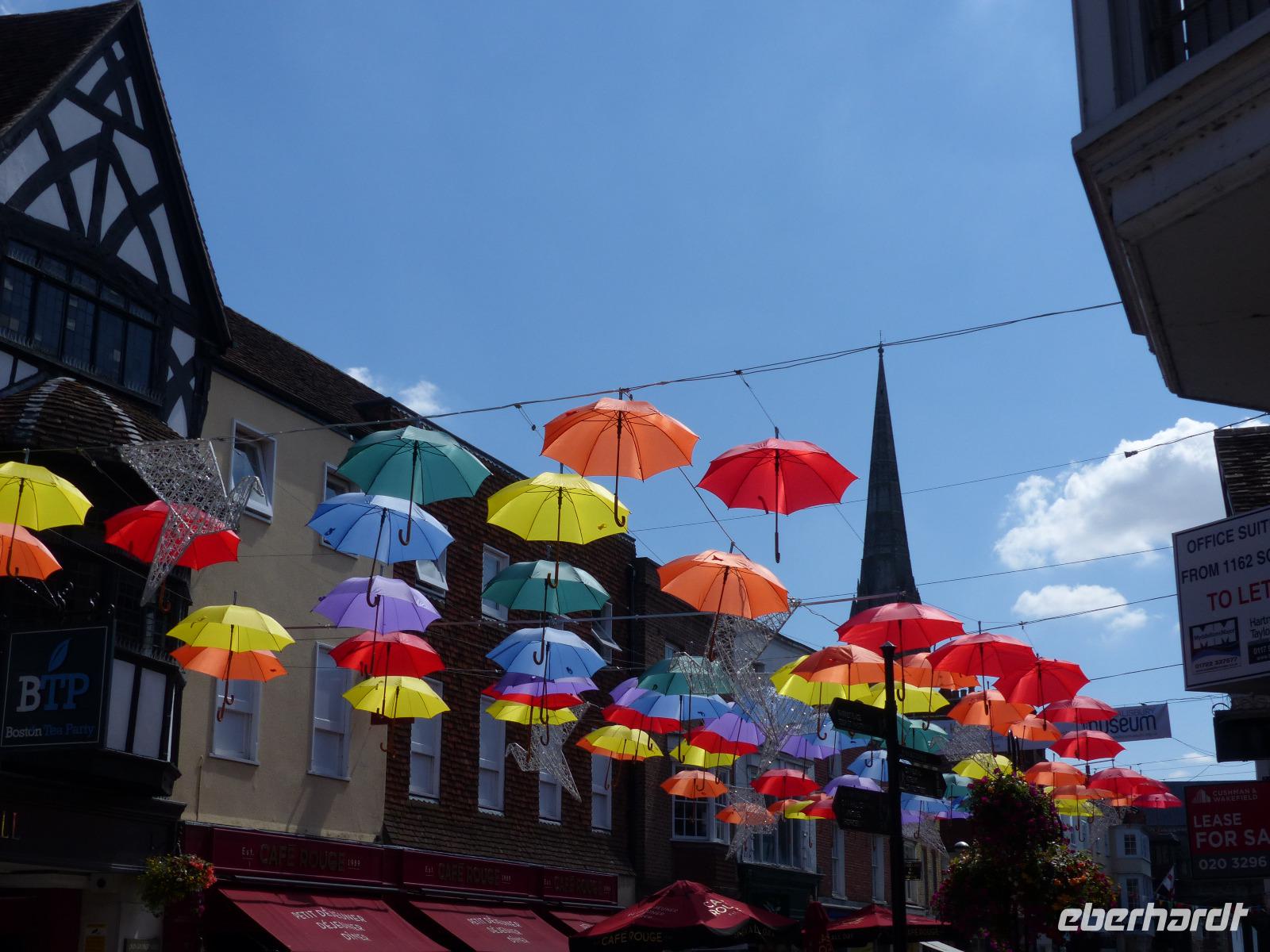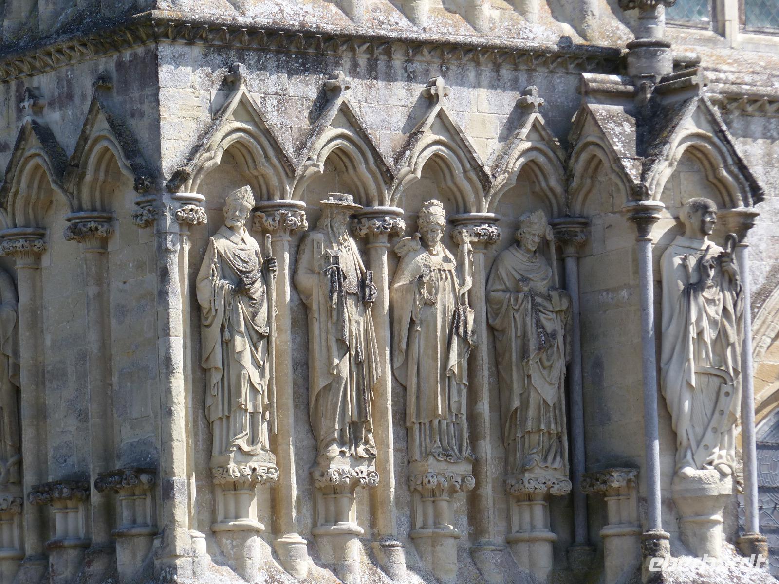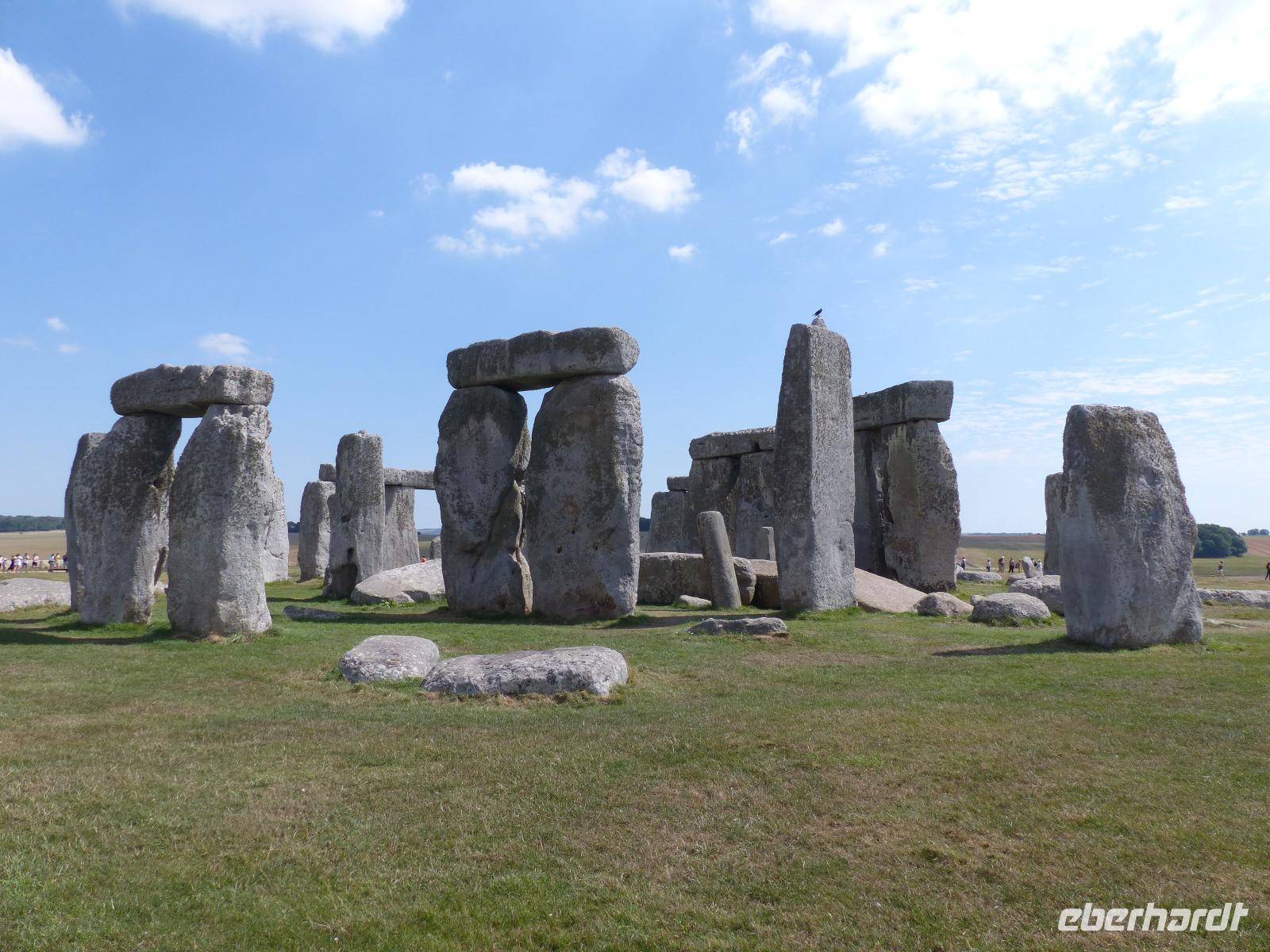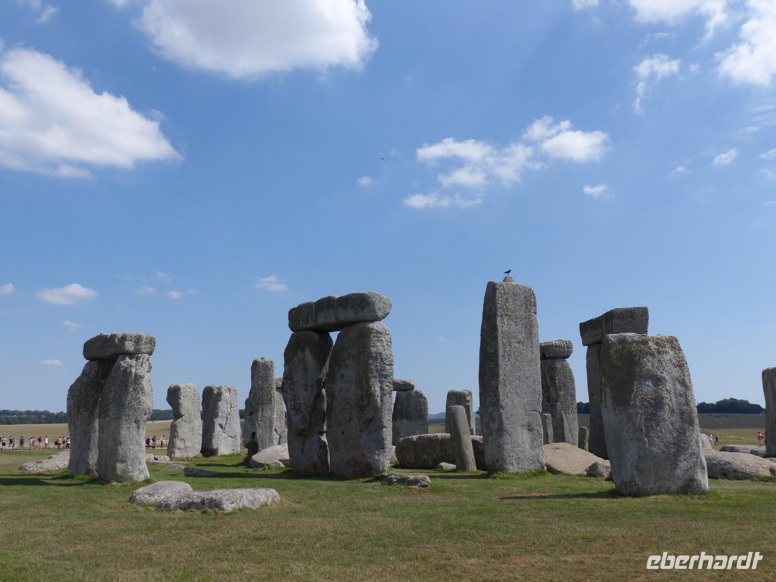 Ein herrlicher Sommertag erwartete uns. Es war warm, aber zum Glück nicht soo warm wie daheim. Tony I., der sich mal wieder eine etwas außergewöhnliche Fahrtroute ausgesucht hatte, brachte uns nach Stonehenge. Bei strahlendem Sonnenschein besichtigten wir die alte Kultstätte aus der Megalithkultur. Alleine waren wir dabei natürlich nicht, denn der alte Steinkreis zieht Menschen aus aller Welt in Scharen an. Auch das nahe gelegene Museum erweckte unser Interesse. Danach ging's weiter nach Salisbury zu einer längeren Pause. Jeder konnte diese Zeit so verbringen wie er es wünschte. Wir bummelten zunächst noch gemeinsam zum Close, der Domfreiheit, die die bekannte Kathedrale der Stadt umgibt. Auf dieser großen Wiese mit schattigen Bäumen trennten wir uns. Wer wollte konnte nach rund 50 Minuten, die für die Besichtigung der Kathedrale und Picknick auf der Wiese genutzt werden konnten, sich wieder mit mir treffen und an einem Spaziergang teilnehmen, der allerdings etwas umgeplant werden musste, denn das Avontal war wegen der Novitschockfunde nach wie vor gesperrt. Also spazierten wir an alten Wehren und am Geflügelmarktkreuz vorbei zum Marktplatz und machten uns dann auf den Weg zum Parkplatz. Alle hatten nun wieder Kraft getankt für die nun folgende Busfahrt nach Plymouth, das wir im strahlenden Abendlicht erreichten. Da Tony I. uns nun wieder einen Teil seiner Heimat zeigte, der eigentlich nicht auf unserem Programm stand und wir mehrheitlich direkte Anfahrten den verschlungenen vorzogen bemühte ich mich darum, einen Ersatz für ihn zu finden, was sich am übernächsten Tag auch einrichten ließ. Aber zuvor standen uns noch einige Abenteuer ins Haus. Den Abend verbrachten wir nach einem weiteren sehr leckeren Essen im neuen ebenfalls zentrumsnahen Hotel in Plymouth nun in dessen Altstadt, die uns auch sehr gut gefiel.