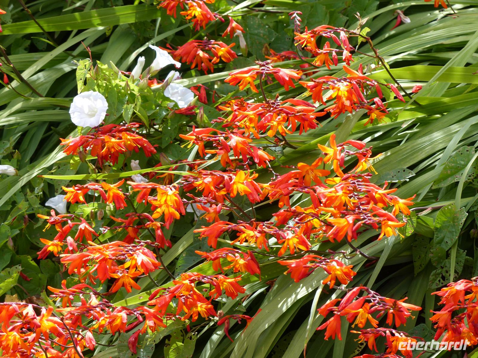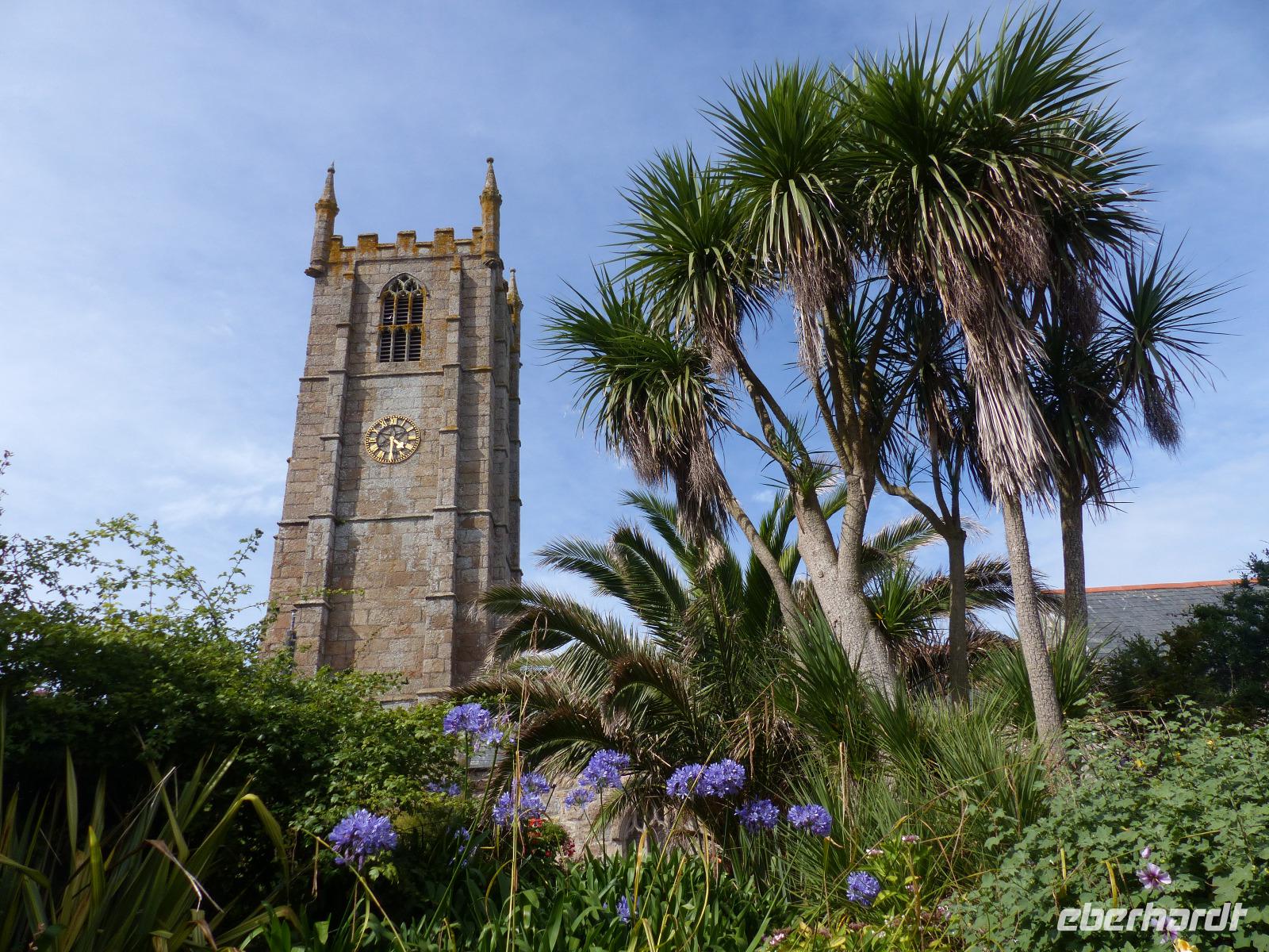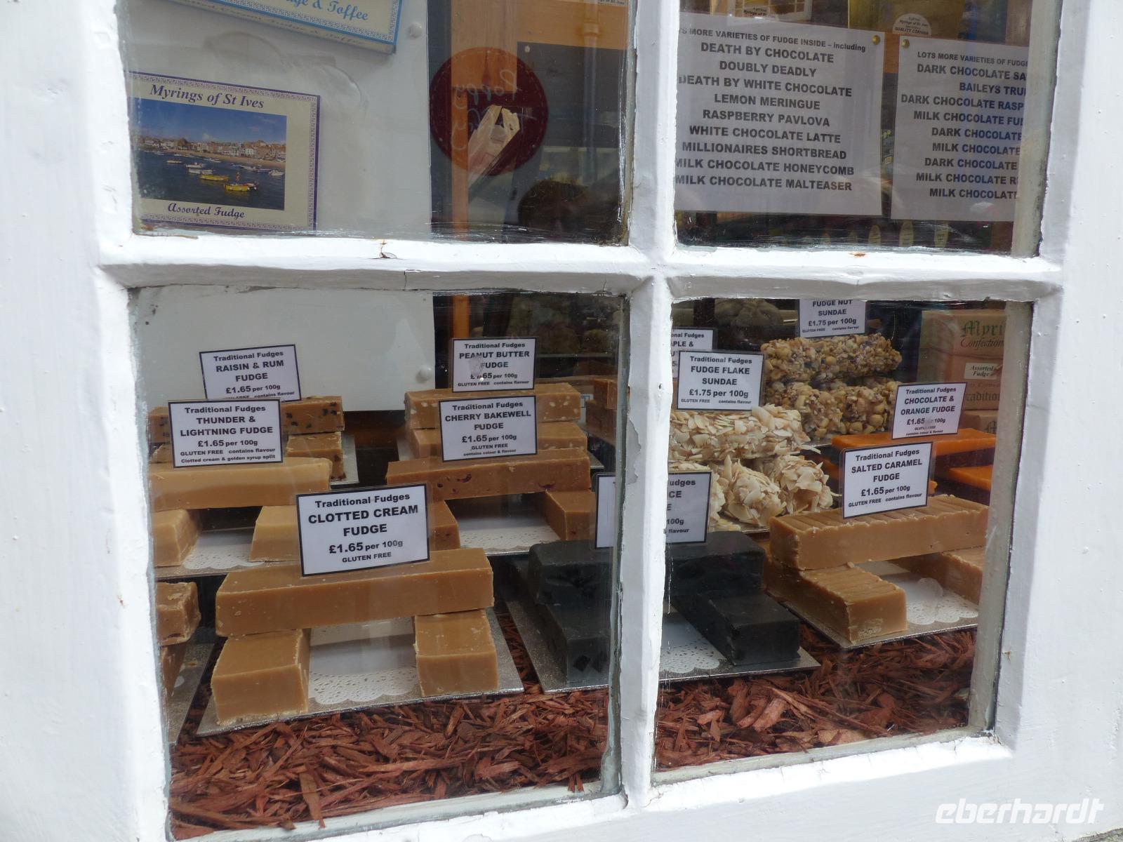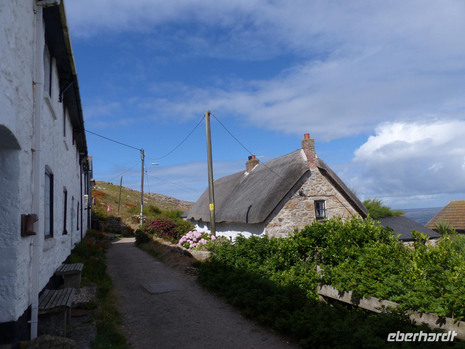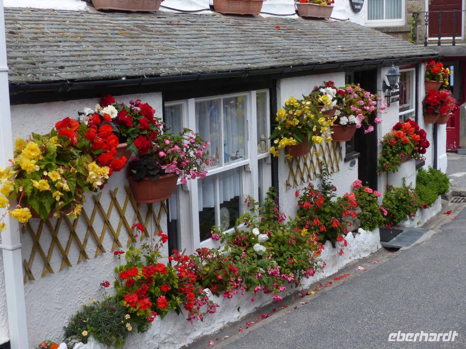 Nun also waren wir in Cornwall. Und wir machten uns sogleich auf den Weg zum äußersten westlichen Ende. Bei herrlichem Wetter durchwanderten wir Hänge voller Montbretien, einem rötlich blühenden Schwertliliengewächs, das die Hänge bei Sennen Cove überzog. Ein paar Gäste glaubten einen Wal gesehen zu haben, der sich dann aber bei näherer Betrachtung in ein Felsenriff verwandelte. Wir wanderten an Lands End vorüber zu einem malerischen Felsentor und genossen die wunderschöne Aussicht. Tony II. brachte uns anschließend zum Bahnhof St. Earth. Hier waren schon deutsche Filmteams gewesen, die Rosamunde Pilchers Bücher auf die Leinwand brachten. Uns interessierten derweil die Wolken, die sich bedenklich über uns zusammenschoben, viel mehr. Kaum waren wir im Zug, da schauerte es. Als wir aber die Eisenbahn in St. Ives wieder verließen, war der Regen bereits vorüber. Auch hier konnte jeder die Zeit so verbringen wie er es wünschte. Wir bummelten zunächst noch gemeinsam vom Bahnhof zum Aussichtspunkt Malakoff und weiter zum Hafen. Dann trennten wir uns. Wer wollte konnte in meiner Begleitung noch die Stadt besichtigen und bis aufs Kap oberhalb des Leuchtturms schlendern. Auf der Rückseite des Kaps kamen wir an der Tate Gallery vorbei. Schließlich landeten wir am Hafen und probierten Cornische Teigtaschen, was uns viel Aufmerksamkeit bei den Möwen einbrachte. Wir trafen uns am Ende des Nachmittags wieder am Bus und kehrten nach Newquay zurück zu einem weiteren leckeren Essen und einem Abend in geselliger Runde.