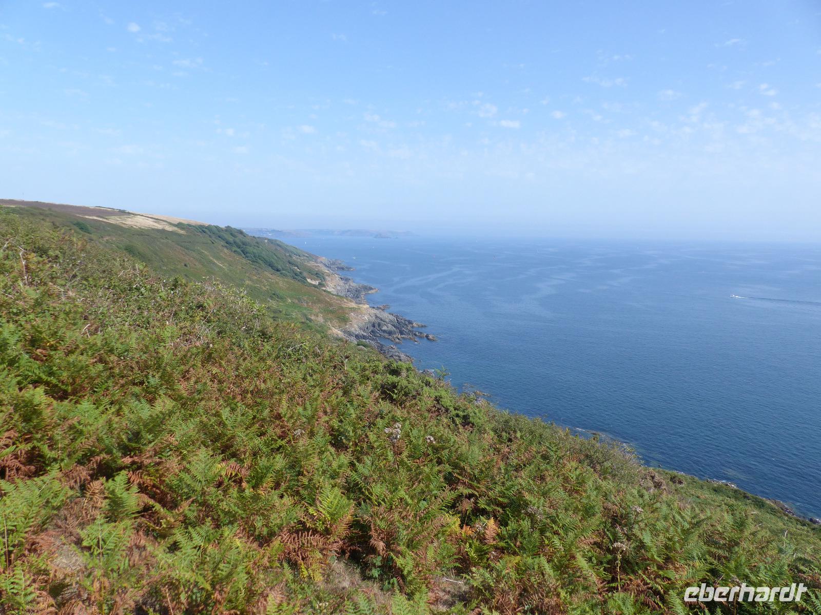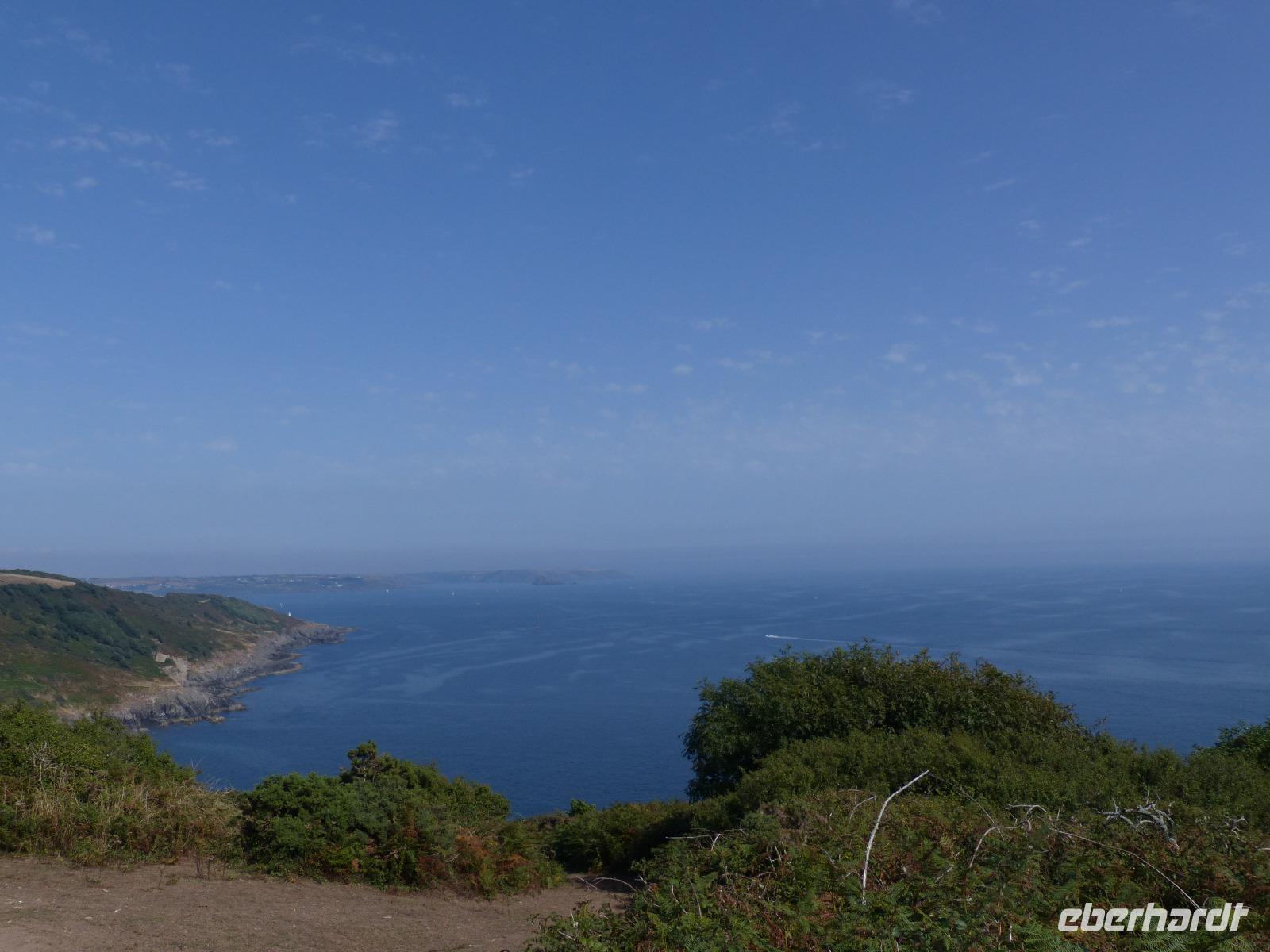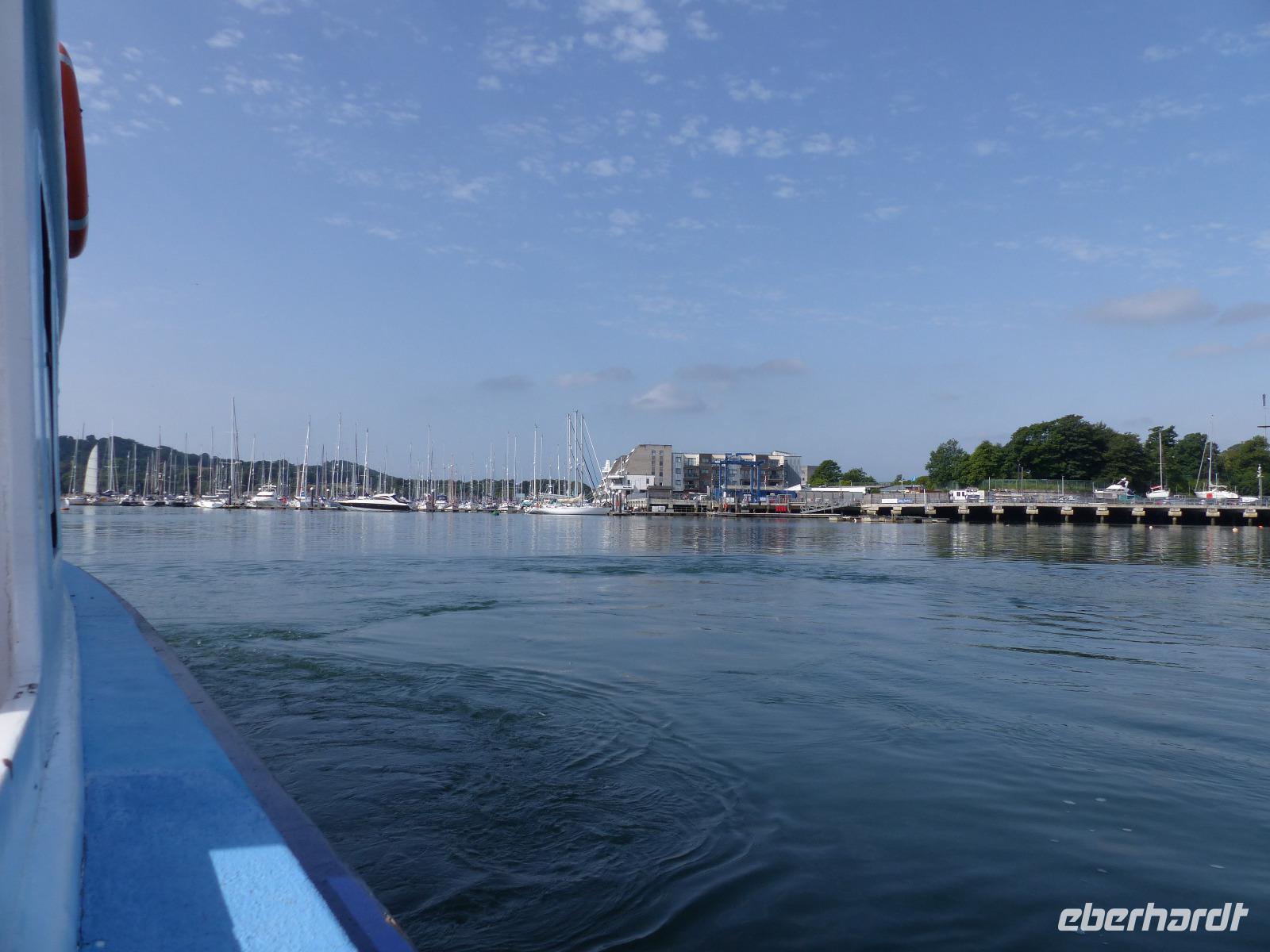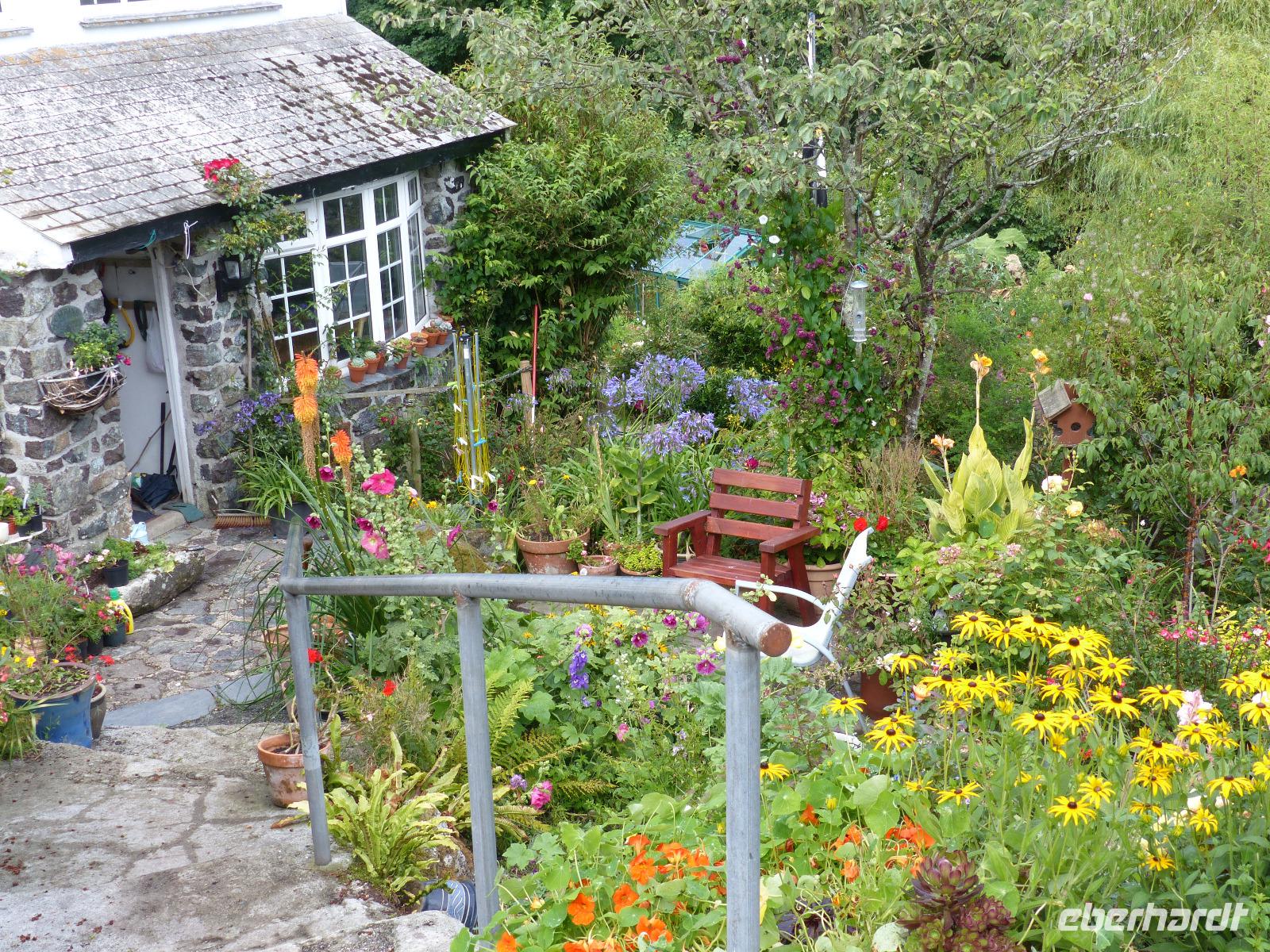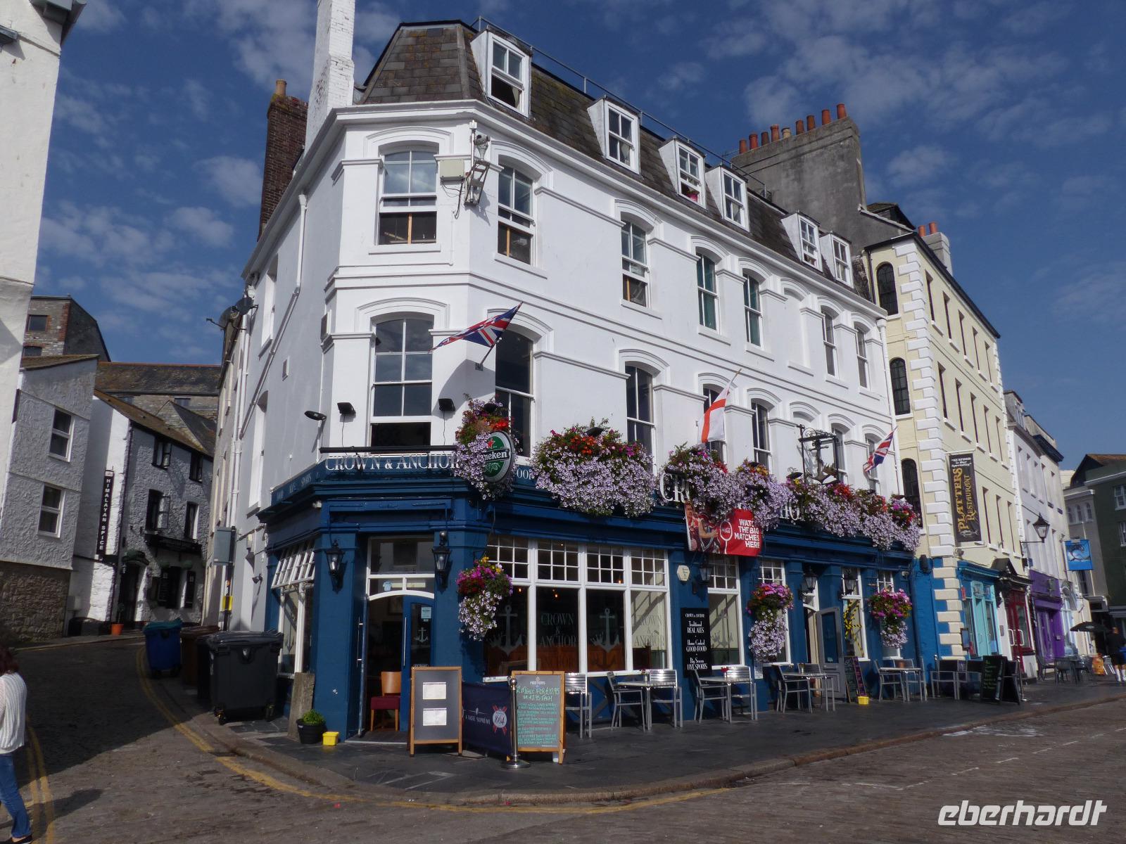 Bei strahlend blauem Himmel verließen wir nach einem leckeren Frühstück unser Hotel und spazierten zu den ruhigen Elizabethan Gardens, dann zu den Mayflower Steps am Sutton Pool, dem alten Hafen unweit der Mündung des River Plym gelegen. Weiter ging's an der Zitadelle vorbei über den Hügel The Hoe am Leuchtturm vorüber. Der Bus brachte uns wenig später am weniger reizvollen Industriehafen vorbei zum Bootssteg der Cremyll Fähre. Eine herrliche kleine Schiffsfahrt folgte. So erreichten wir den Park um das Herrenhaus Mount Edgcumbe, das die Gärten überragte. Wir ergründeten nun einige der herrlichen kleinen Gärten im Renaissance- und Barockstil, durchstrolchten den Neuseeländischen- den Rosen- und den englischen Landschaftsgarten und wanderten vorbei an einem Teich mit Tempelpavillons zur Folly. Folly, die Verrücktheit, ist eine aussichtsreich gelegene Ruine, die nicht verfallen ist im Laufe der Jahre, sondern schon als verfallendes Gebäude geplant und errichtet wurde. Vor uns lag das blaue Meer, das wir auf Schritt und Tritt vor Augen hatten. Wir wanderten durch Wälder hindurch weiter an der Küste entlang zu den Dörfern Kingsand und Cawsand, wo wir uns eine längere Pause gönnten. Nun hatten wir zu Fuß Cornwall erreicht, denn Plymouth liegt noch in Devon. Am Nachmittag ging es weiter zur künstlich angelegten Grotte, die Adelheid von Sachsen-Meiningen gewidmet ist. Sie war die Tante der Queen Victoria und angeheiratete britische Königin um 1830. Danach führten uns Klippenpfade weiter zur Michaelskapelle die auf der 90 m hohen Klippe von Rame liegt. Auf dem Parkplatz in Cawsand erwartete uns Tony I. mit dem Bus, der an jenem Nachmittag ganz besonders abenteuerlustig war. Wenn einer eine Reise tut, dann kann er was erzählen - wir hatten nun wirklich einiges zu erzählen, als wir am Abend wieder in Plymouth ankamen. Auch diesen Abend ließen die meisten von uns wieder in der Altstadt von Plymouth bei herrlichem nicht allzu heißem Sommerwetter am Wasser ausklingen, nachdem wir noch einmal ein sehr leckeres Abendessen bekommen hatten.