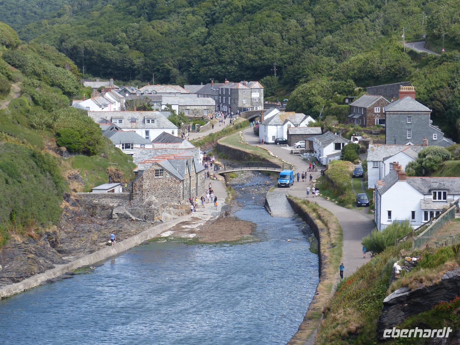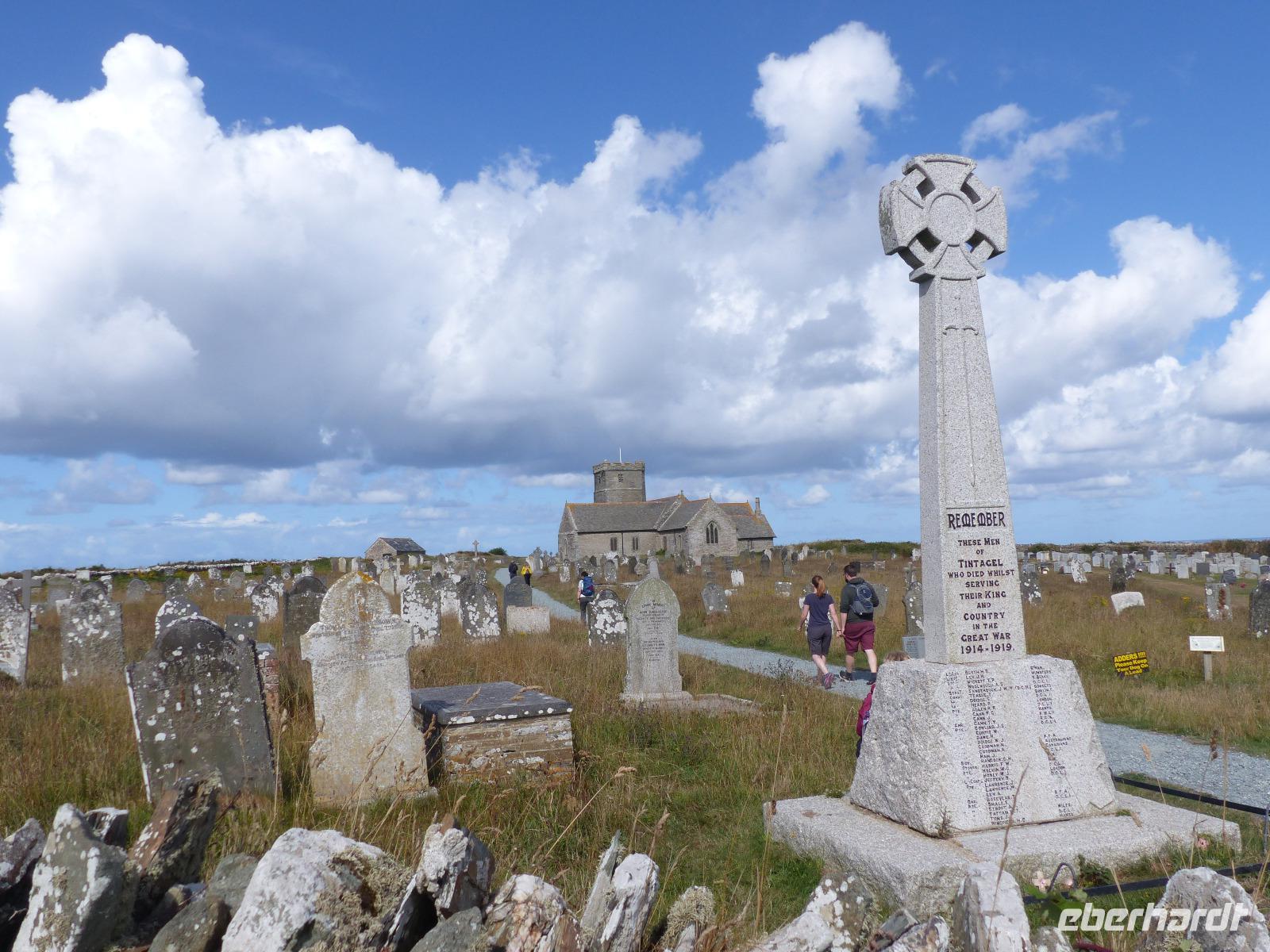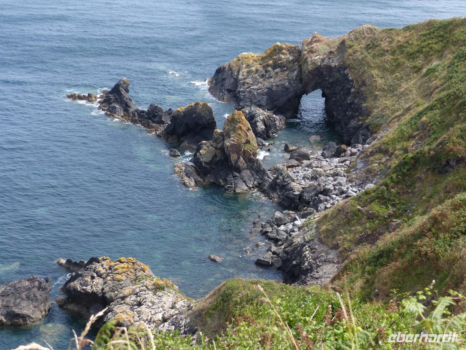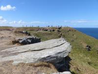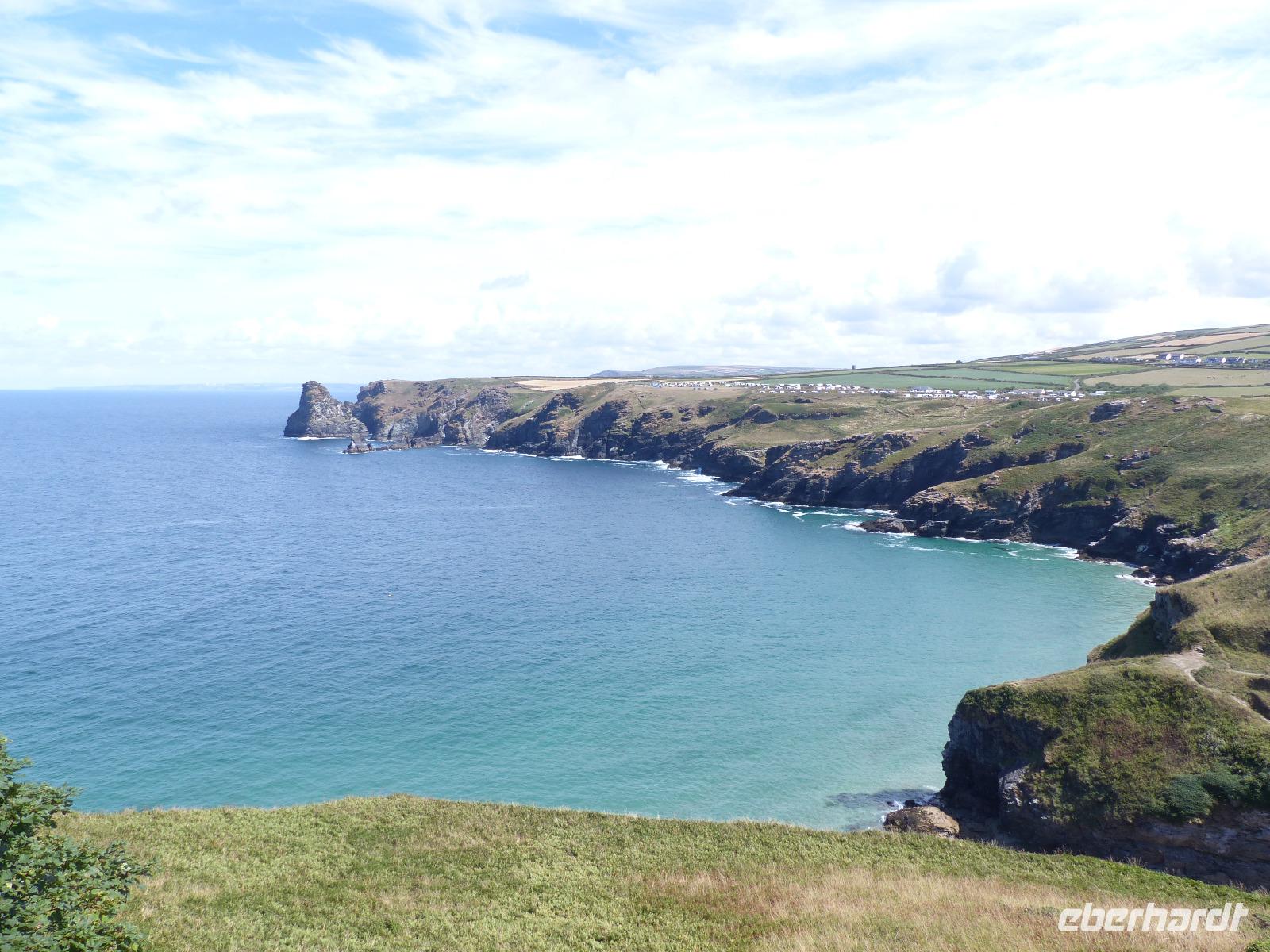 Und wieder ein strahlend blauer Sommertag! Nun stand die Burgruine, in der der legendäre König Artus gelebt haben soll, auf dem Programm. Wir zogen am historischen Postamt vorüber zu einer alten kleinen Landkirche hoch auf den Klippen gelegen, hinter der sich eine herrliche Aussicht auf die begehrte Halbinsel mit den Ruinenresten bot. Bald schon trafen wir auf unsere Artgenossen, und zwar in reichlicher Anzahl, was den Aufstieg zur Burg etwas beschwerlich machte. Danach starteten wir mit unserer Wanderung über den Klippenpfad an der Steilküste entlang. Vorbei an herrlichen Aussichtspunkten mit Blick auf vorgelagerte Inseln, wilde Schluchten und Felsentore wanderten wir auf Boscastle zu. Am Ladies Window, einem hoch über der Küste gelegenen Felsentor, rasteten wir dann alle zusammen und schlossen diese doch etwas anspruchsvollere Wanderung bei einem Eis am Hafen von Boscastle am Nachmittag ab.