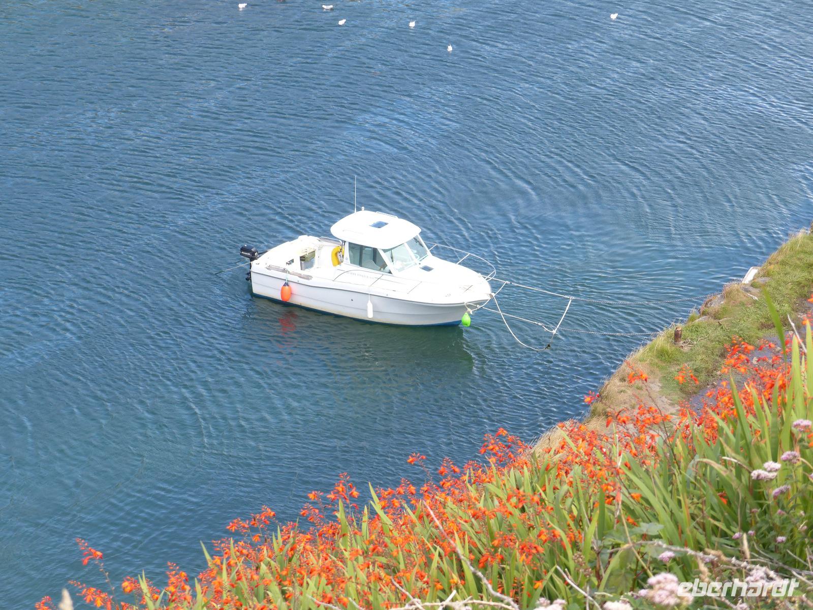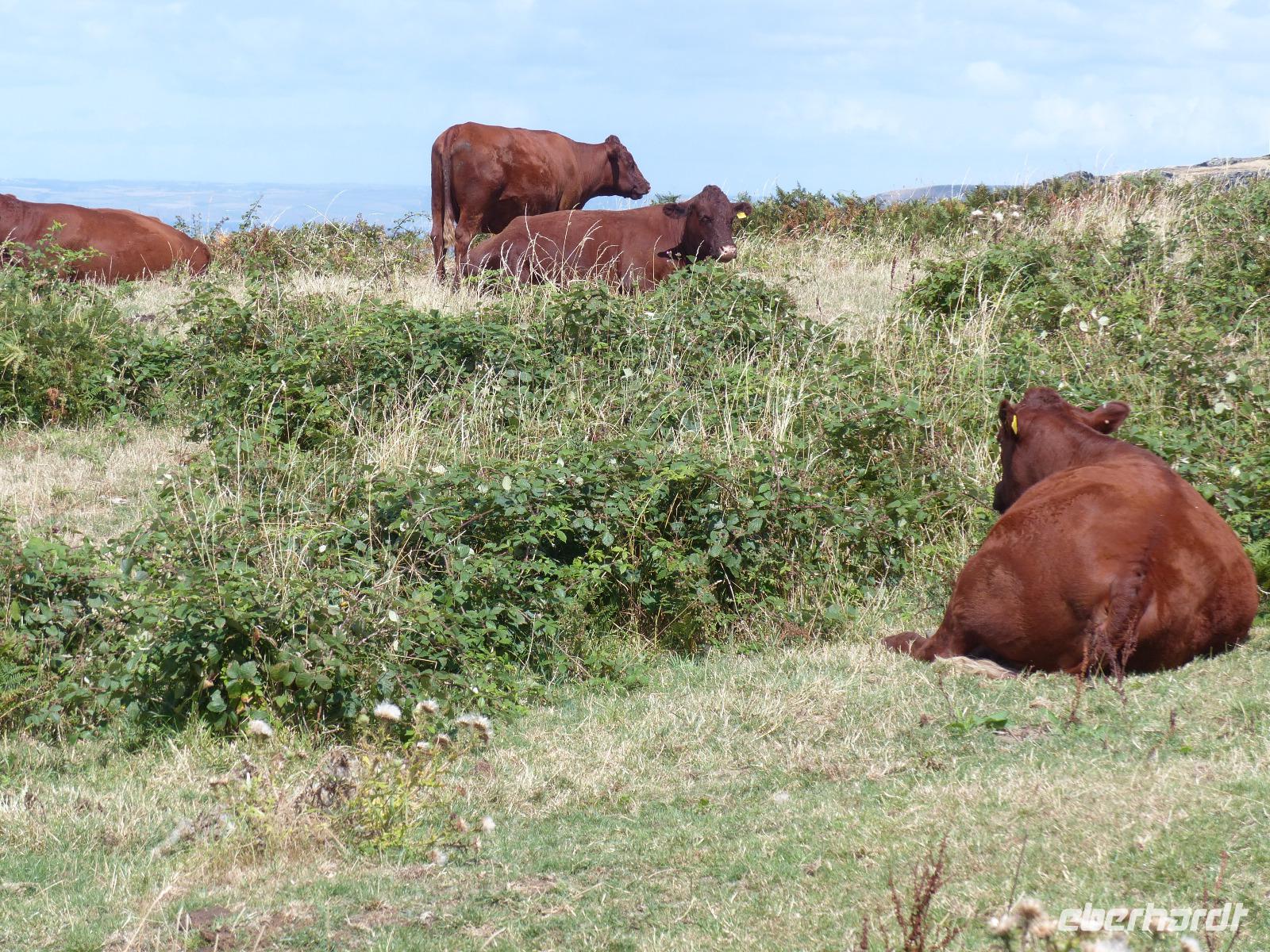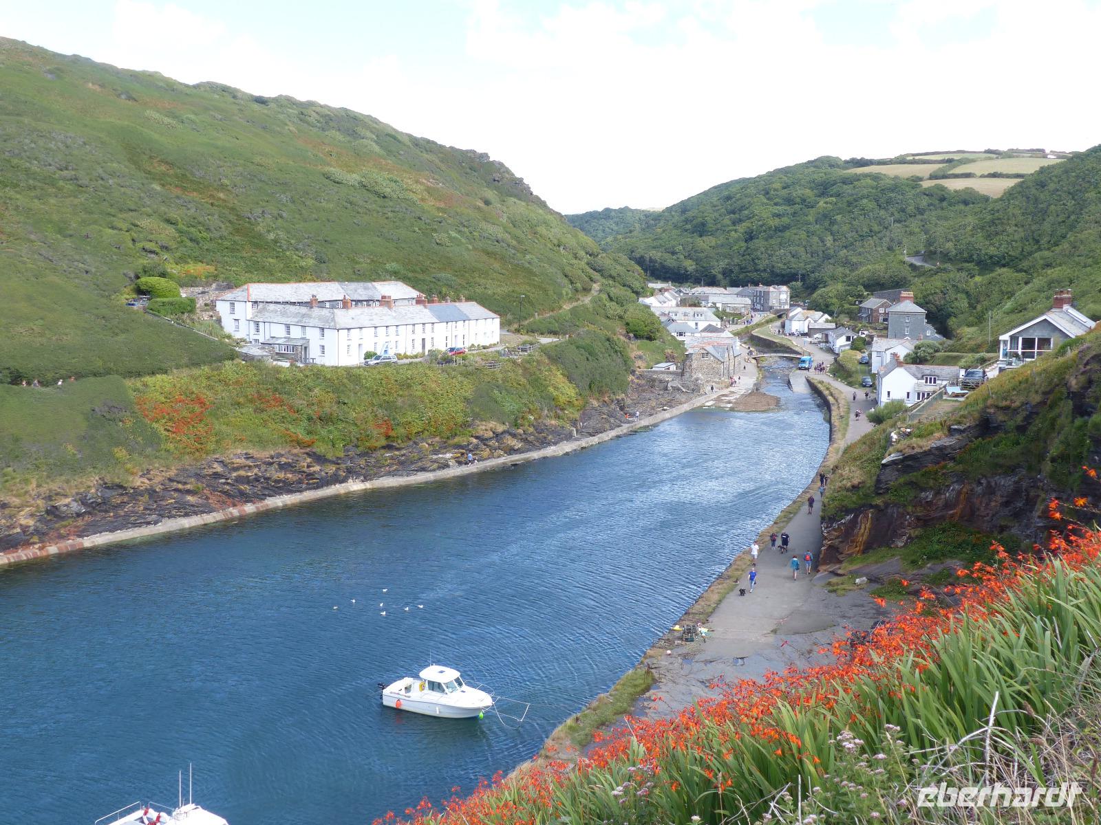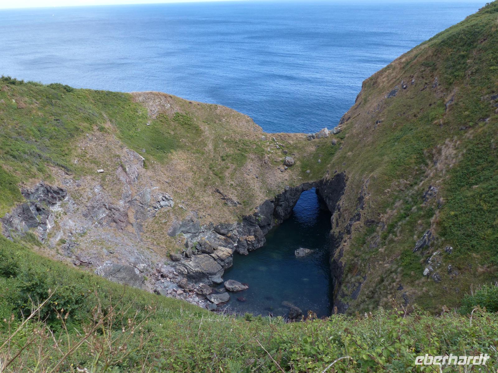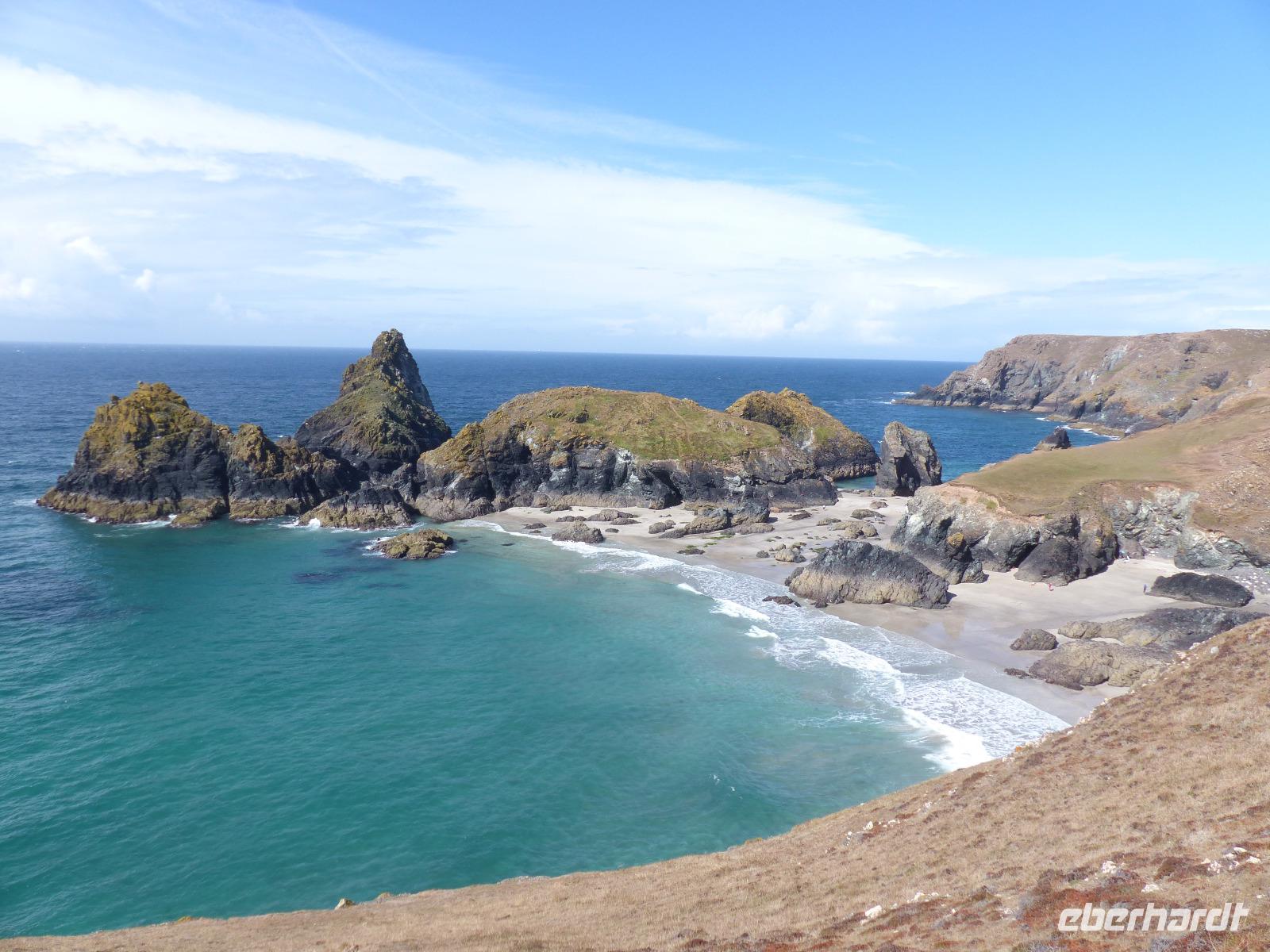 Und wieder ein strahlend blauer Sommertag! Nun stand die Burgruine, in der der legendäre König Artus gelebt haben soll, auf dem Programm. Wir zogen am historischen Postamt vorüber zu einer alten kleinen Landkirche hoch auf den Klippen gelegen, hinter der sich eine herrliche Aussicht auf die begehrte Halbinsel mit den Ruinenresten bot. Bald schon trafen wir auf unsere Artgenossen, und zwar in reichlicher Anzahl, was den Aufstieg zur Burg etwas beschwerlich machte. Danach starteten wir mit unserer Wanderung über den Klippenpfad an der Steilküste entlang. Vorbei an herrlichen Aussichtspunkten mit Blick auf vorgelagerte Inseln, wilde Schluchten und Felsentore wanderten wir auf Boscastle zu. Am Ladies Window, einem hoch über der Küste gelegenen Felsentor, rasteten wir dann alle zusammen und schlossen diese doch etwas anspruchsvollere Wanderung bei einem Eis am Hafen von Boscastle am Nachmittag ab.